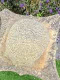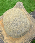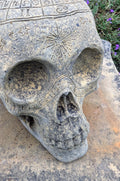 Crafted with meticulous attention to detail, this Medieval Style Zodiac Skull is a stunning piece that evokes the essence of spiritual artistry. The abstract design, is brought to life in durable English stone, complete with a natural patina finish that adds to its timeless appeal. This ornament is a substantial addition to any indoor or outdoor space.