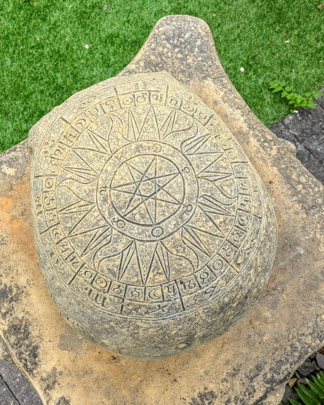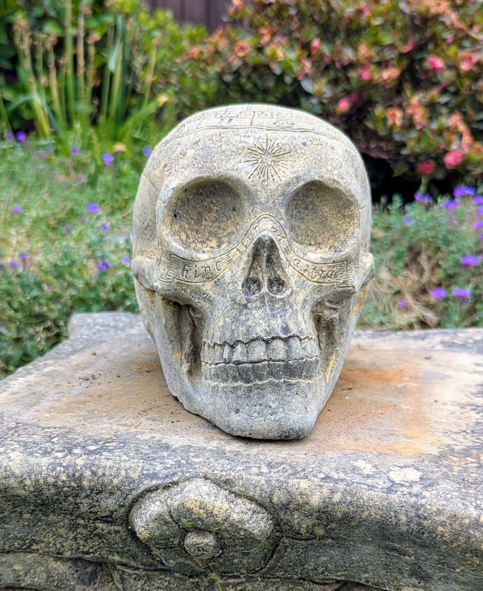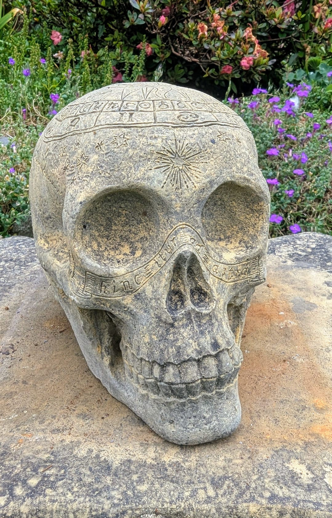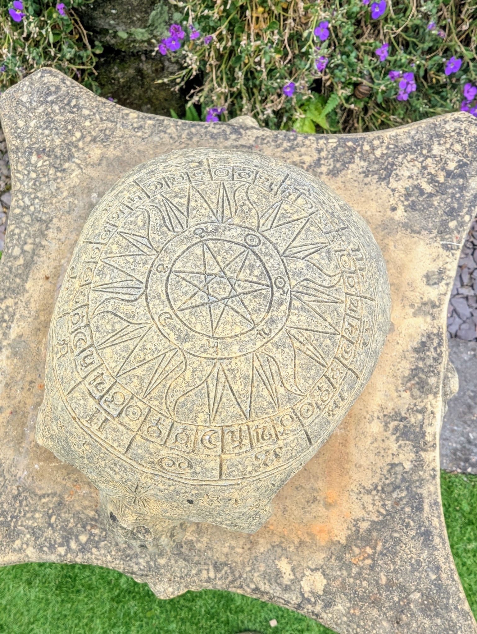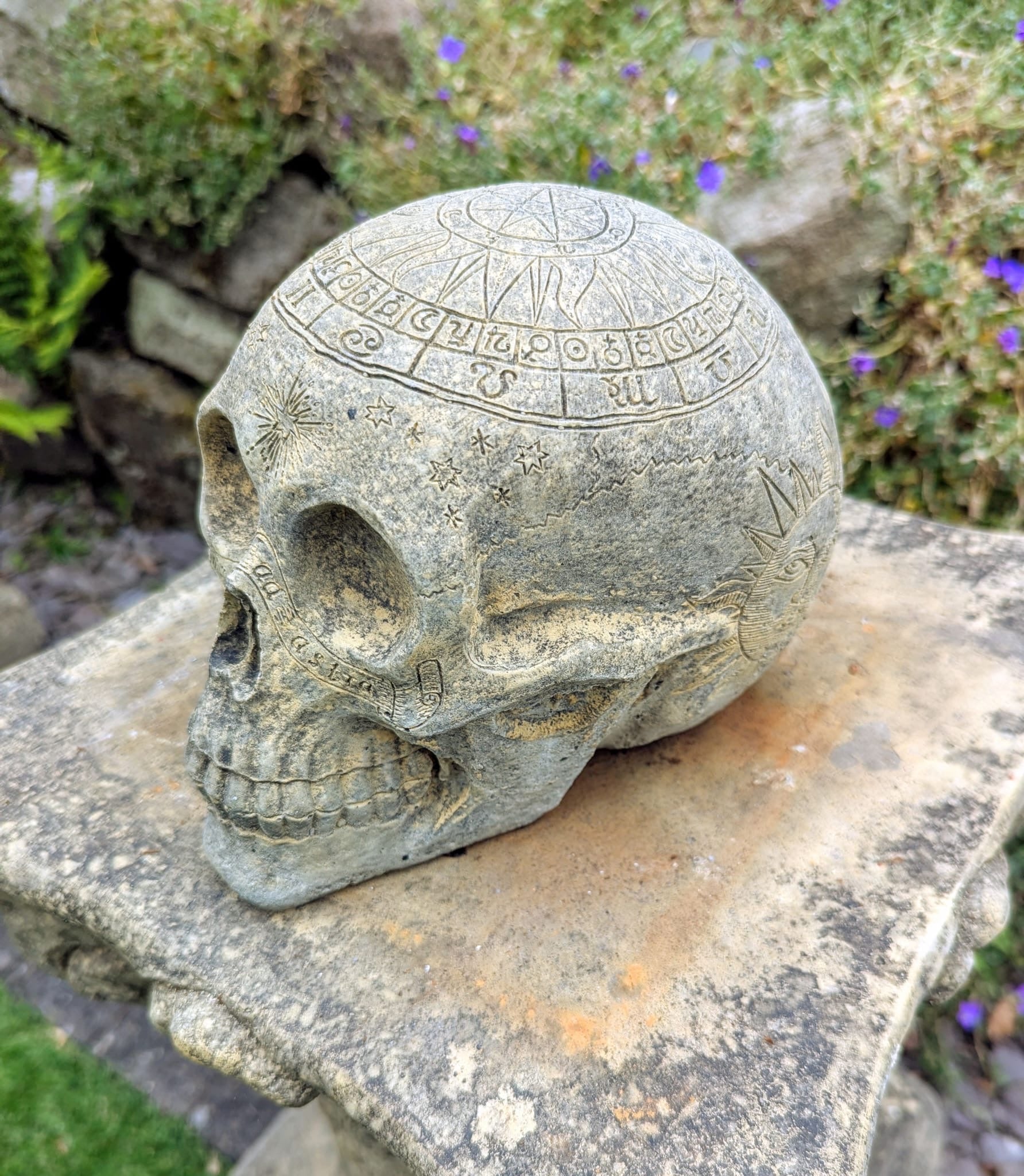 Vintage style Zodiac skull garden ornament - UK delivery included.