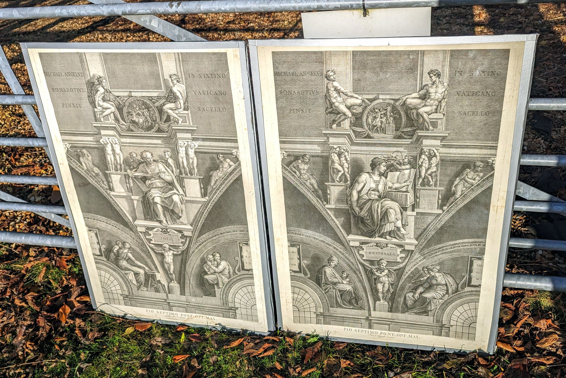 Antique pair 19th century Lithographs of Michael Angelo s Vatican works.