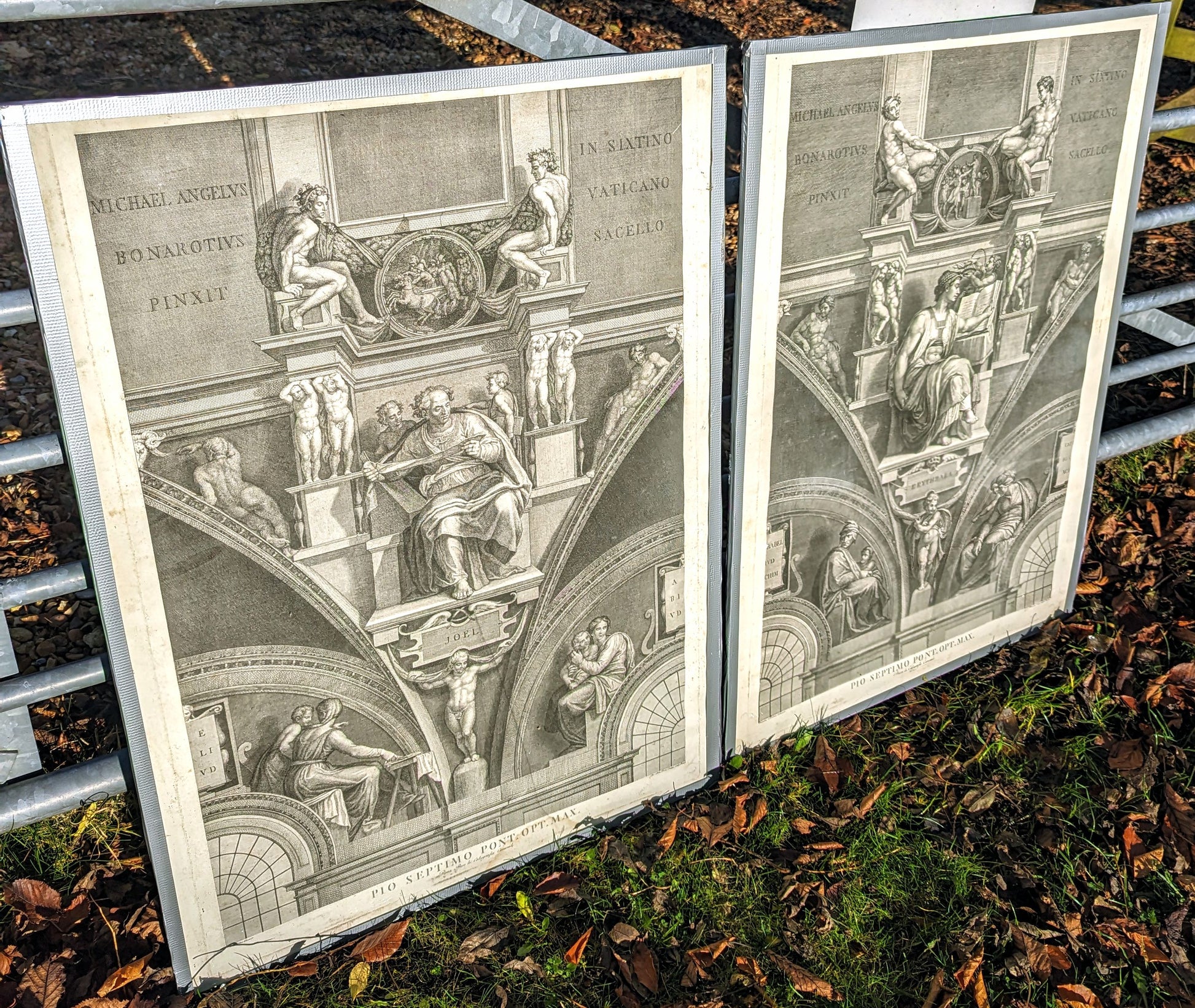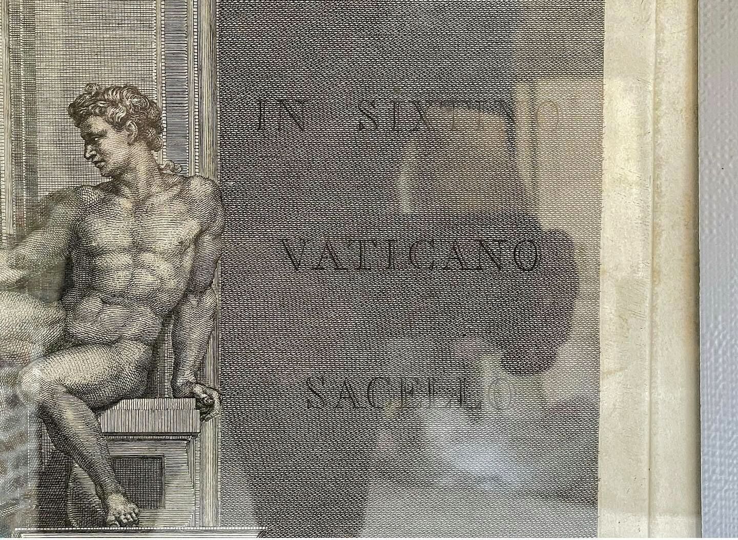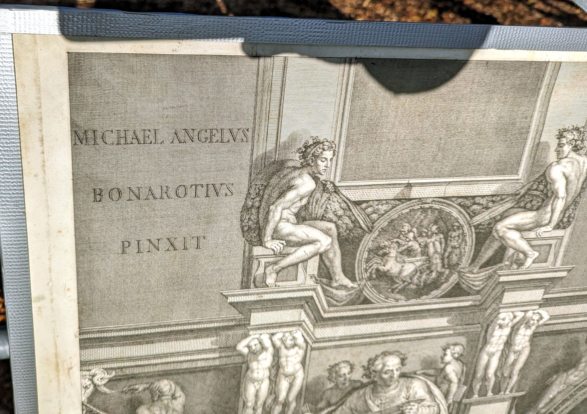 LARGE PAIR OF 19TH CENTURY LITHOGRAPHS OF MICHAELANGELOS WORK IN THE VATICAN.