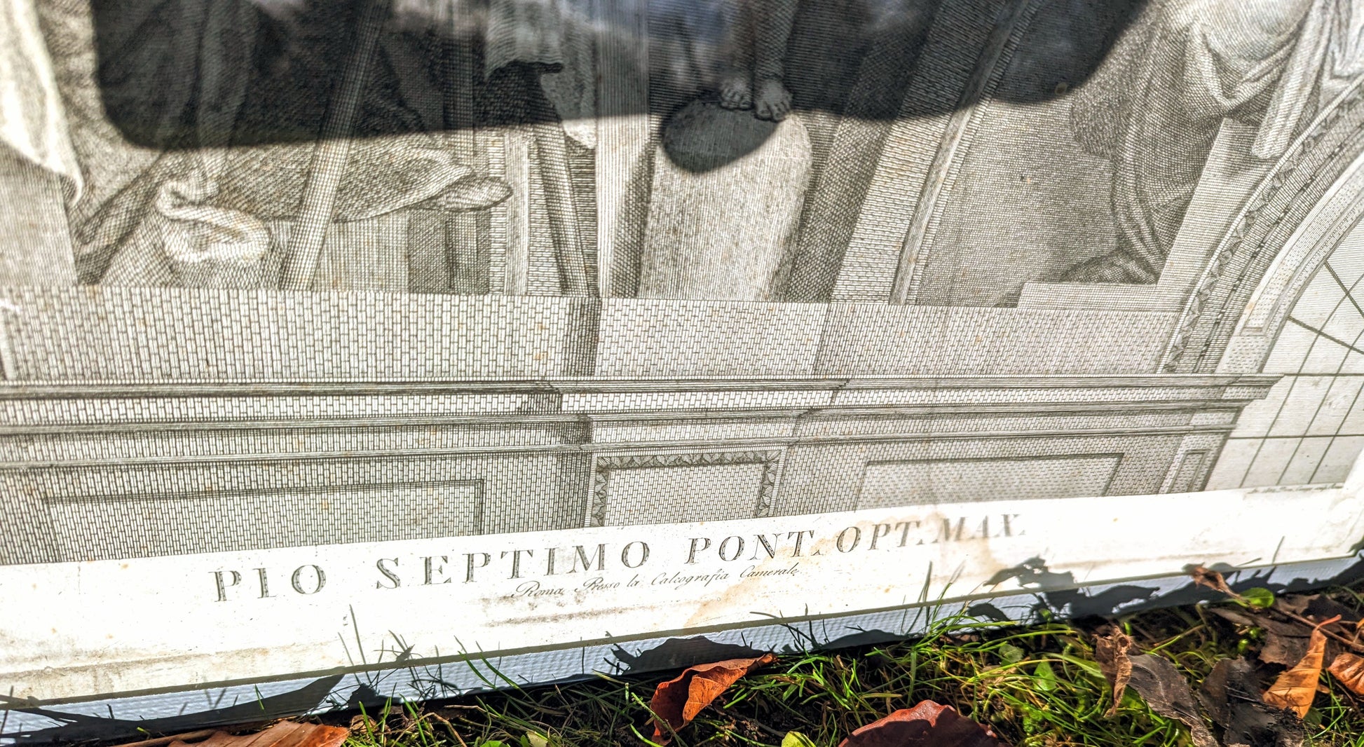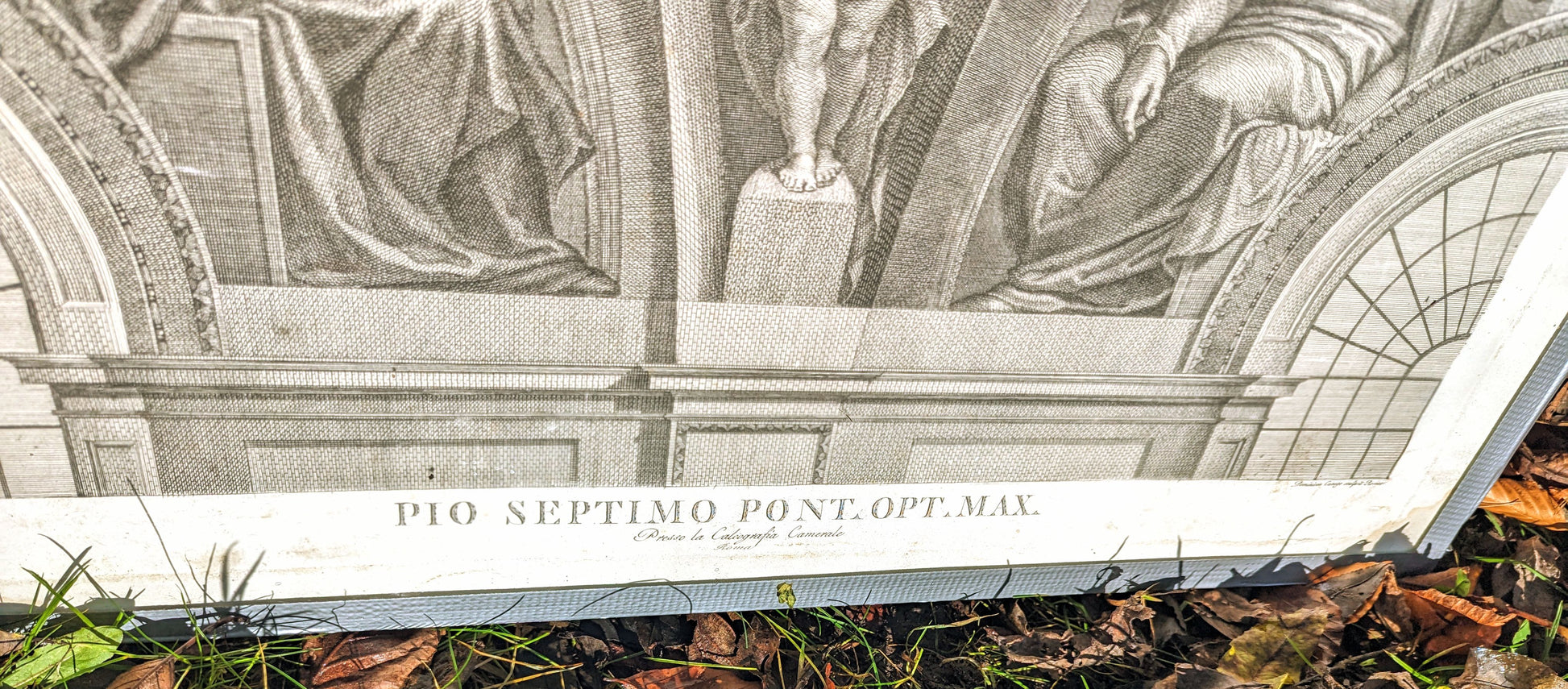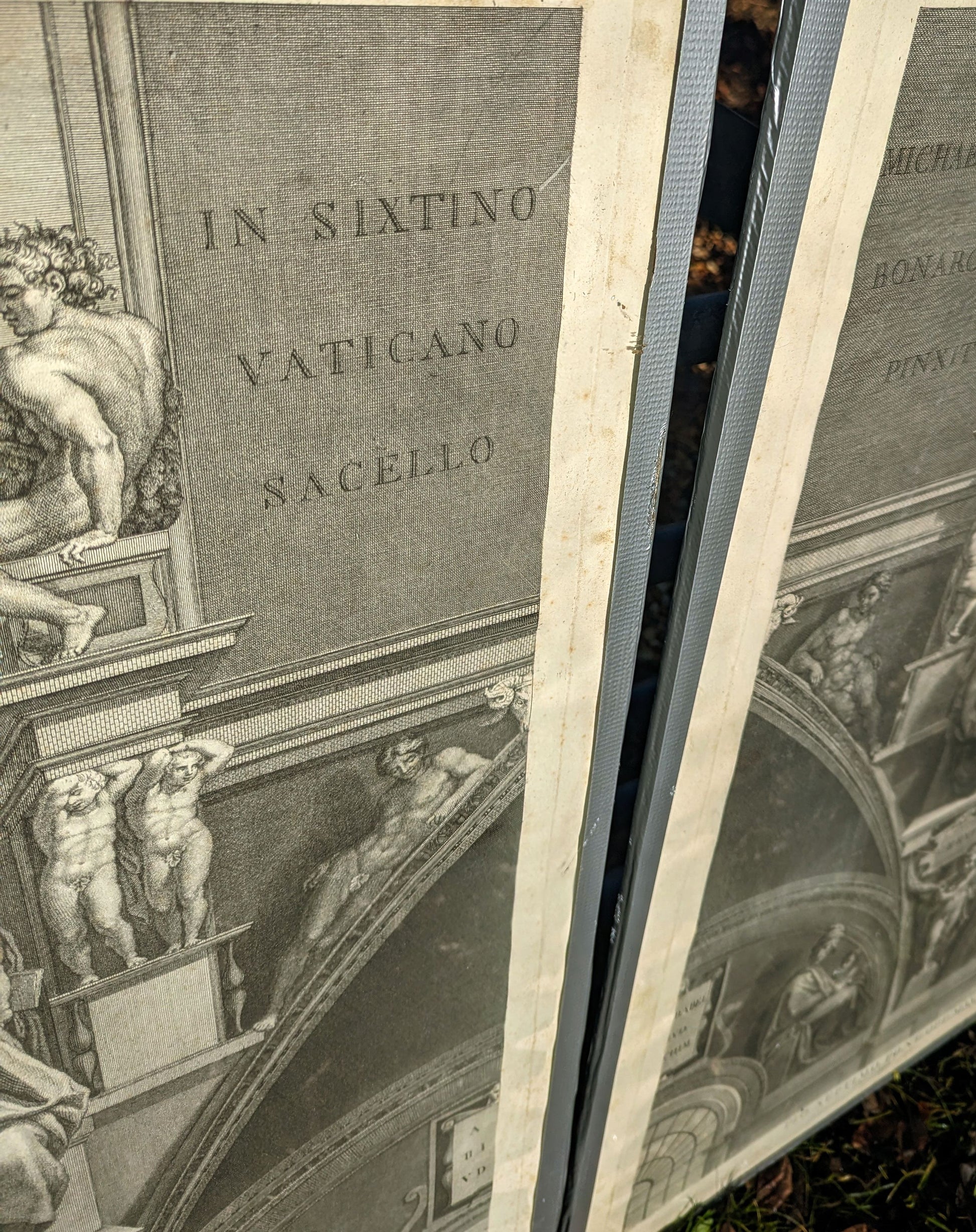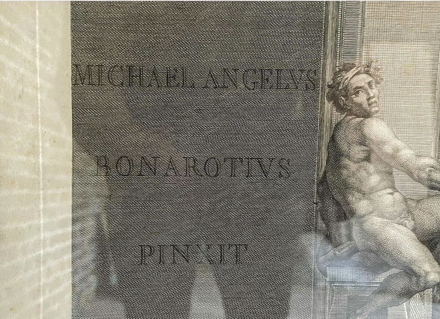 LARGE PAIR OF 19TH CENTURY LITHOGRAPHS OF MICHAELANGELOS WORK IN THE VATICAN.
