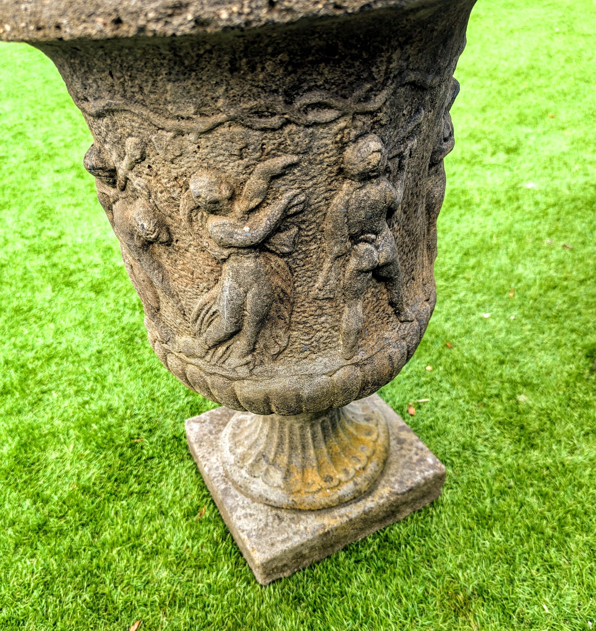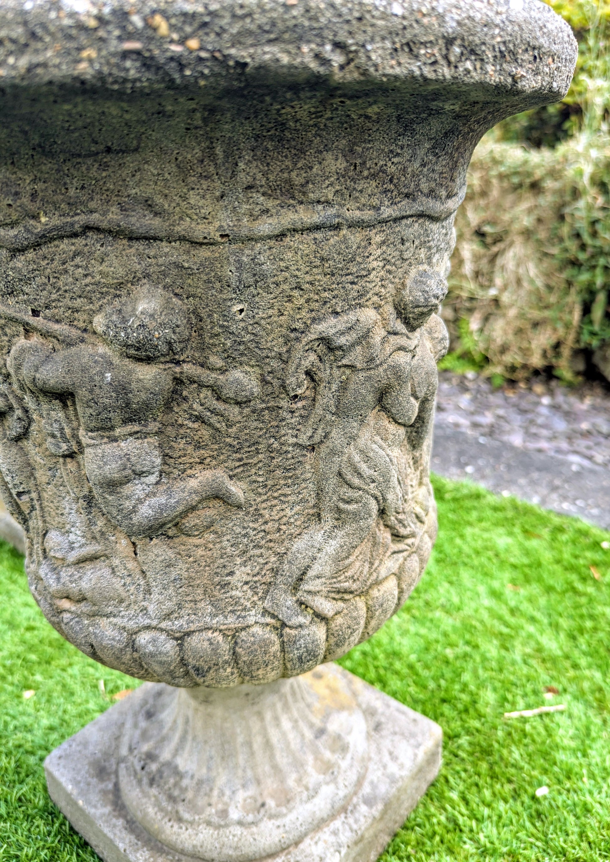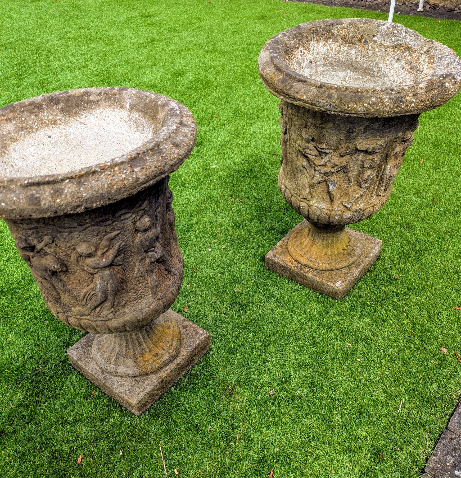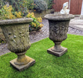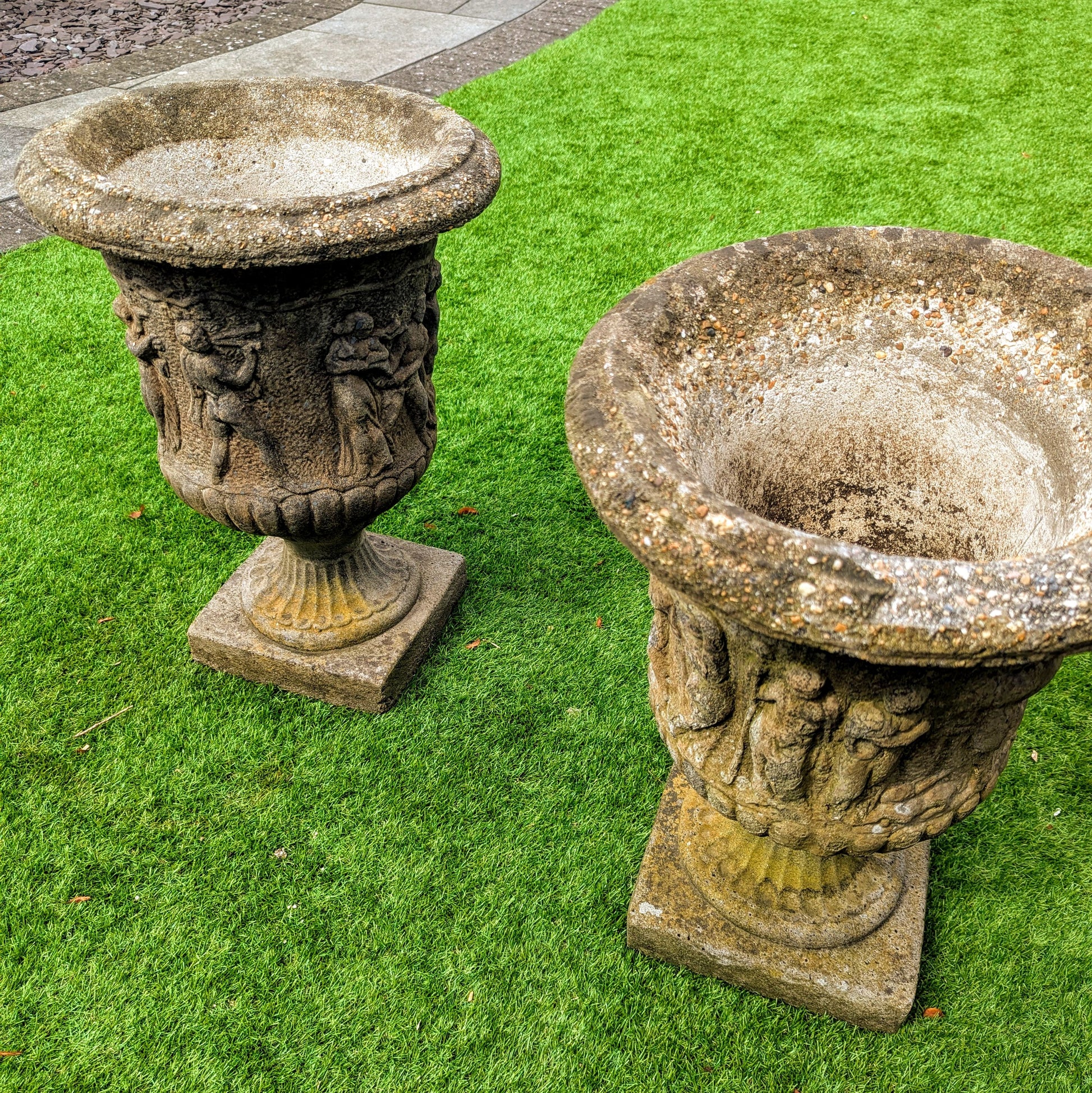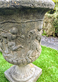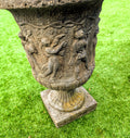 Pair 19th century Italian Composition Stone Urns Classical Figure Decor - Free UK Delivery