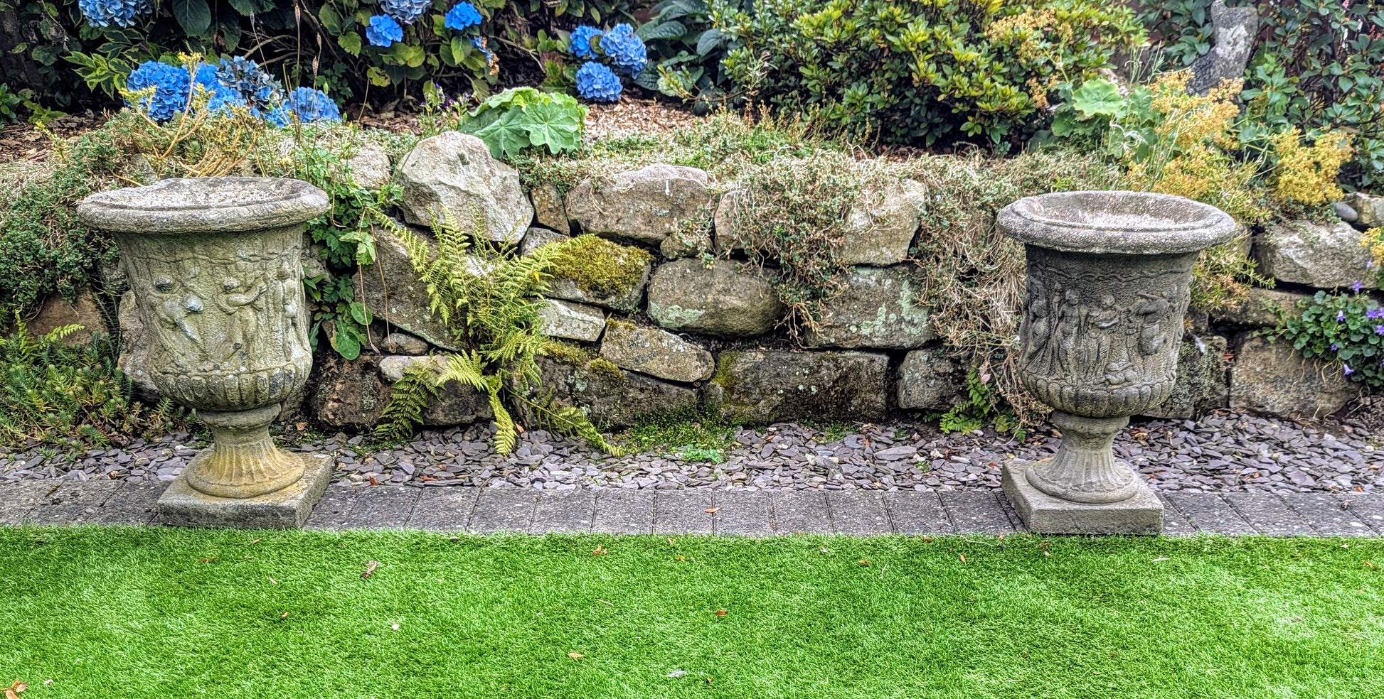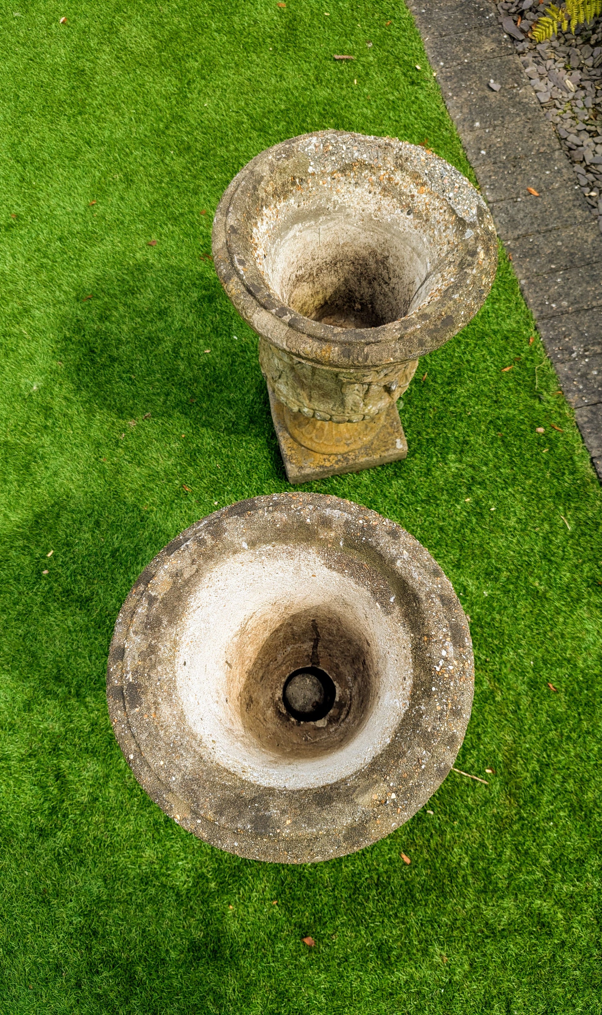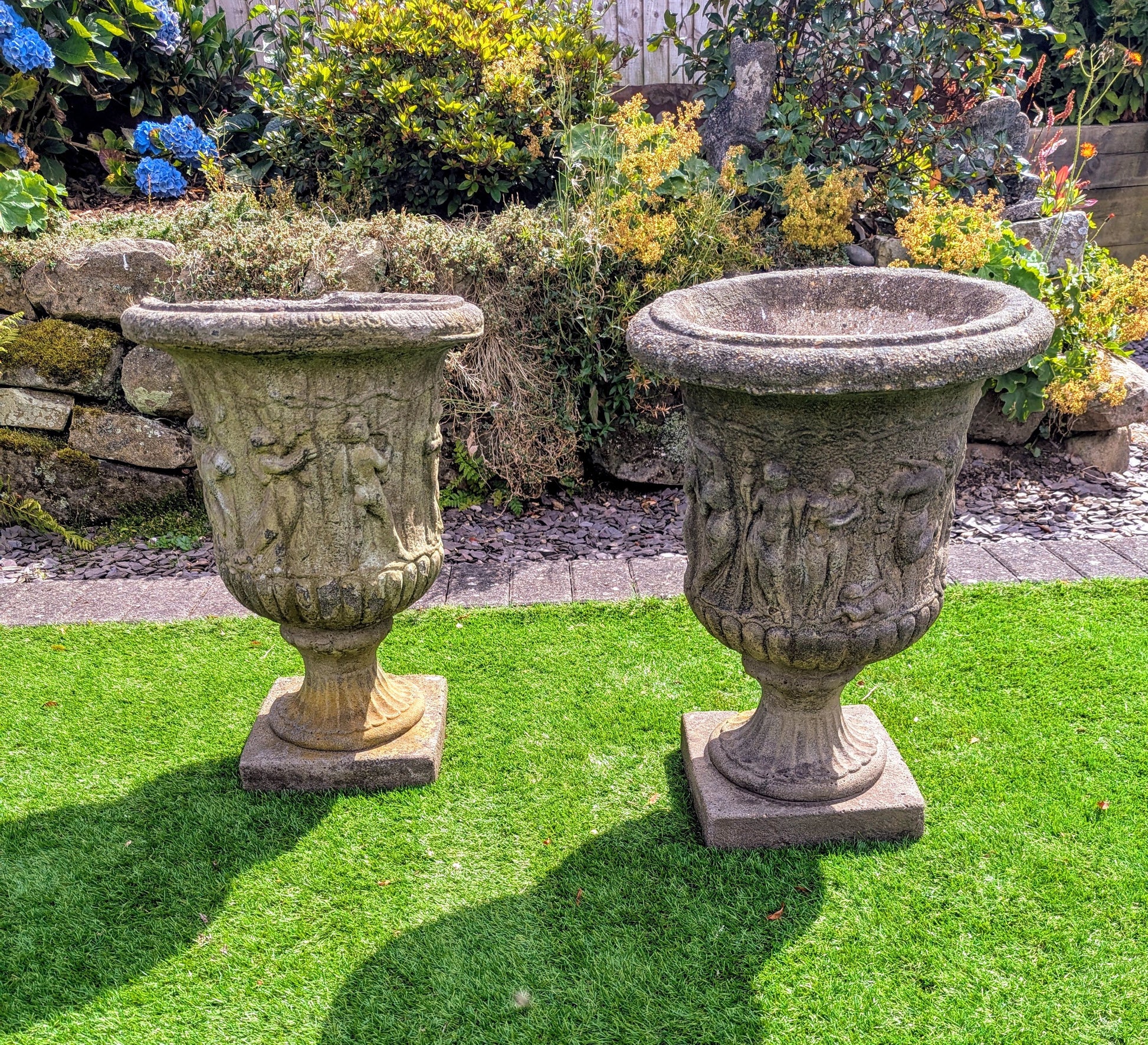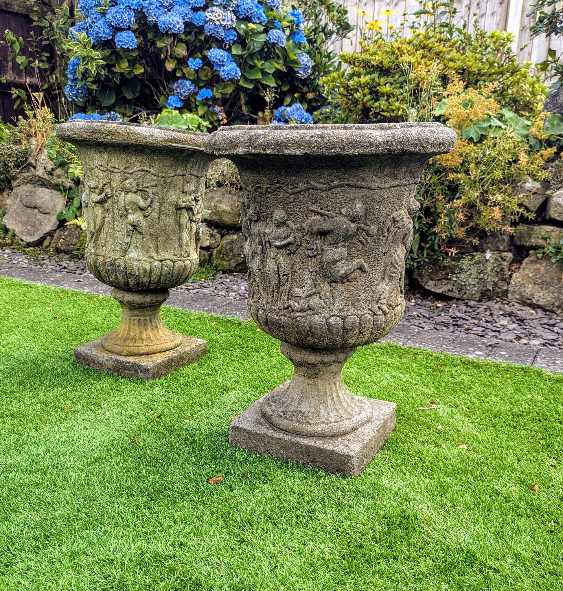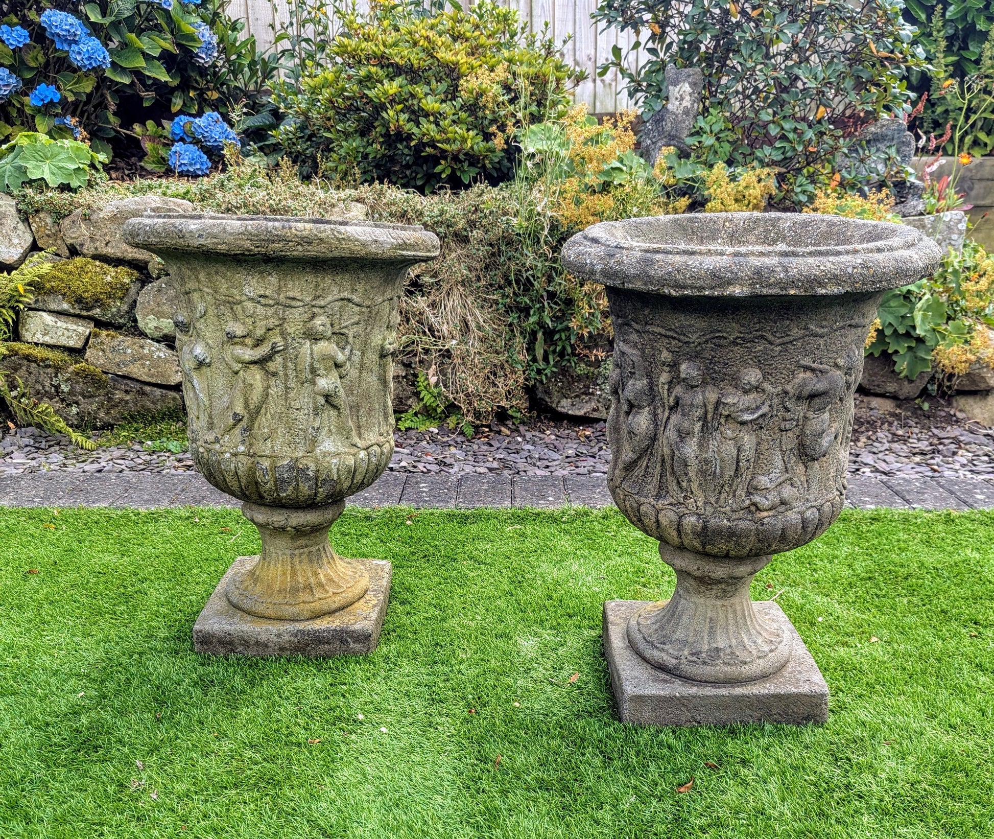 Pair 19th century Italian Composition Stone Urns Classical Figure Decor - Free UK Delivery