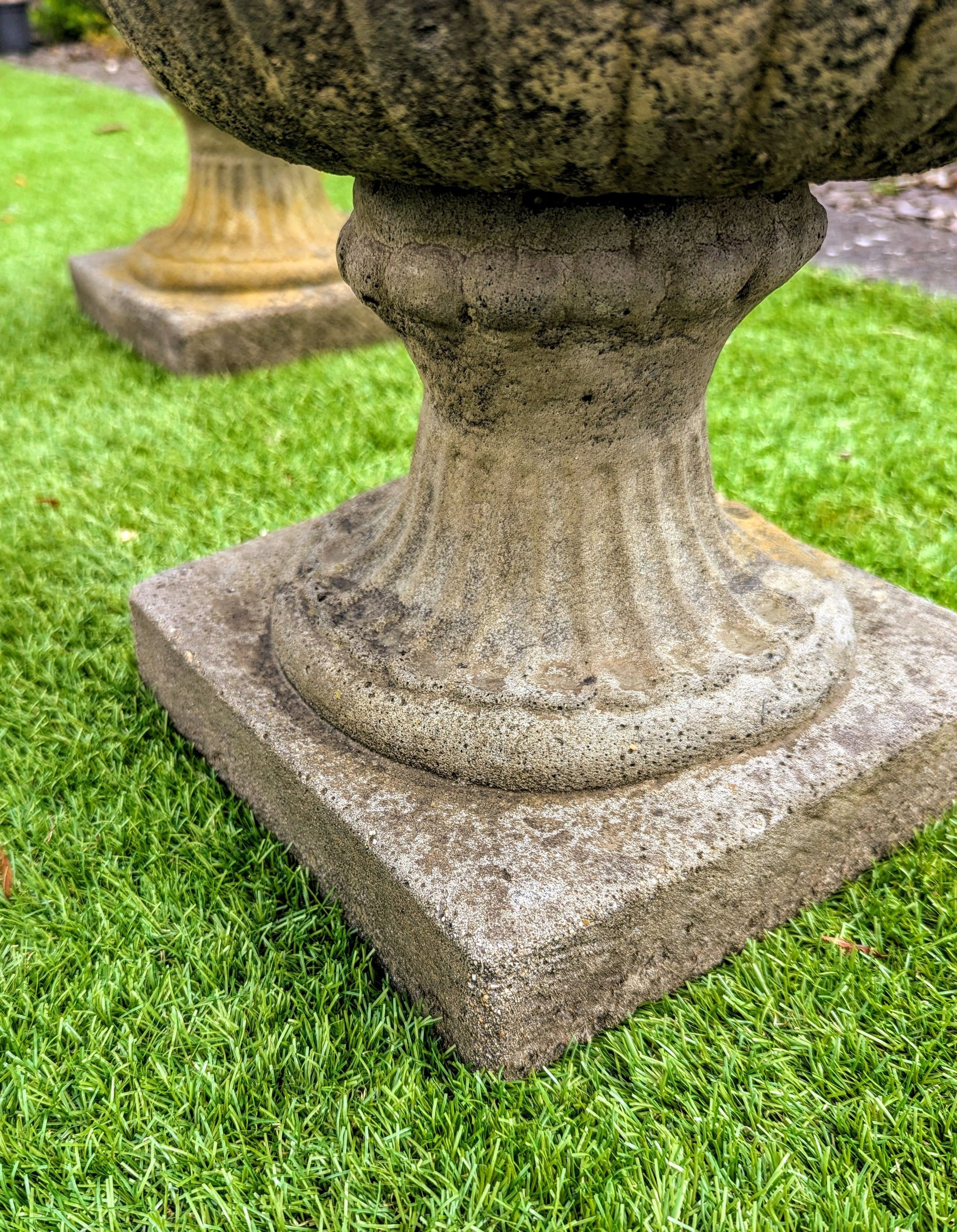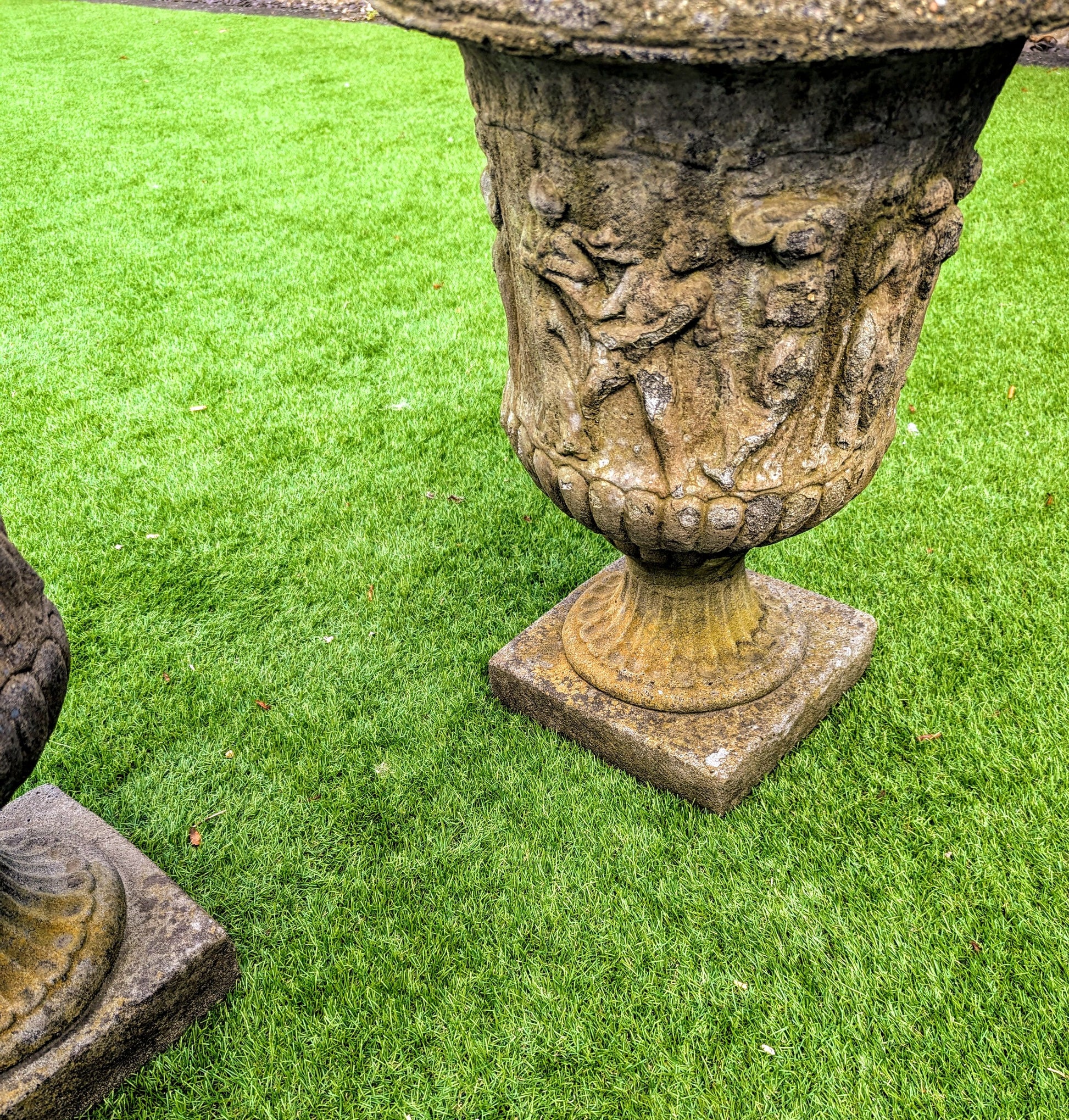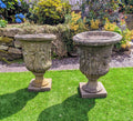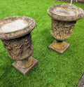 Add a touch of classic elegance to your garden or home decor with this exquisite pair of Italian composition stone urns.