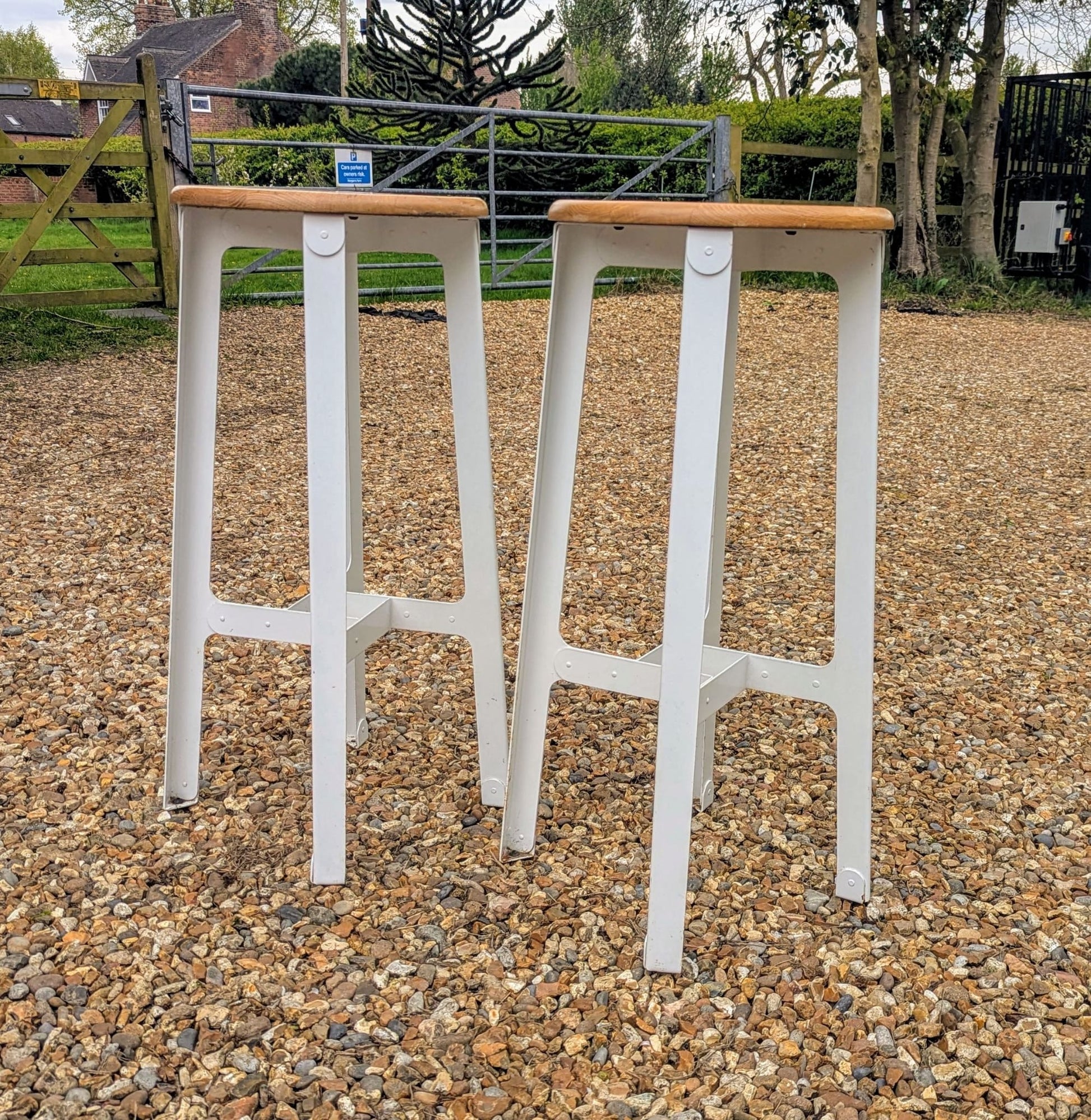 Add a touch of vintage charm to your home with these unique Herman Miller Construct' bar stools.