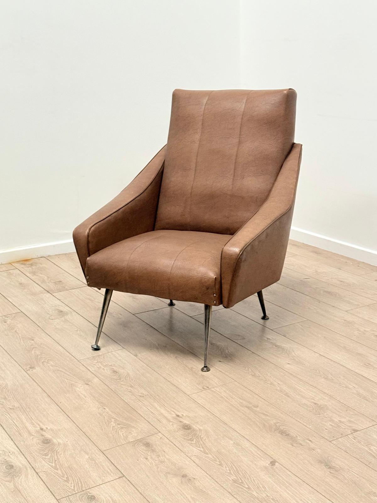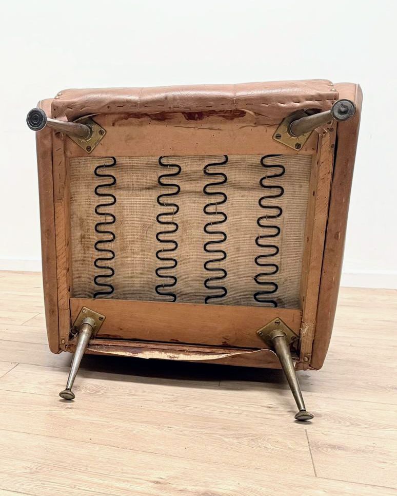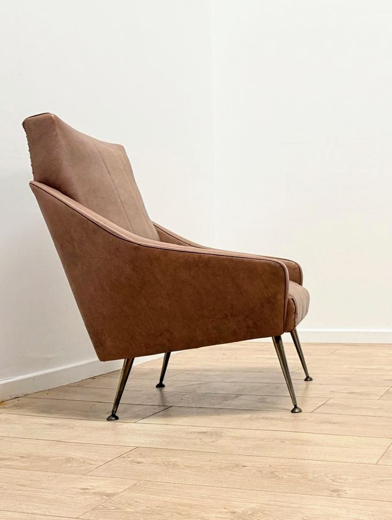Quality Vintage 1960 Italian Armchair Brass Taper Supports - Delivery Available 0139.