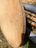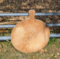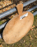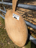 The Rustic Vintage European Chopping Food Board by Charlie 2ND is a handmade medium-sized oval cutting board made of wood, perfect for chopping and serving food in a charming and rustic style.