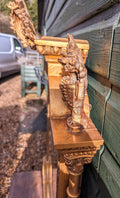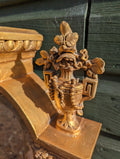 Add a touch of French elegance to your home with this sensational Napoleon II1 Mirror. Superb quality and beautifully proportioned French 19th century gilt overmantel mirror with original deep bevelled plate glass, circa 1860. The cartouch is decorated with ribbons, acanthus leaves topped with a flaming torch and quivers, classical urns with Greek key and further draped acanthus. Flanked by fluted and turned columns topped with ionic capitols on squared bases with medallions and finials to the underside. This is an impressive mirror, certainly a statement piece for any mantle piece or console table. The original deep bevelled mirror is in great condition with no foxing or blemish. There is a secure hanging chain fitted, so it will just require a secure screw fitting on your wall, or you may prefer to hang it with a pair of mirror plates. This original piece is perfect for adult bedrooms, living rooms, hallways or any space that needs a touch of sophistication You may find chips and marks under our wax and polish , this is absolutely what you should expect when buying genuine antiques. ceshomeandgarden.com Width: 83 cm Height: 121 cm Depth: 4 cm You're very welcome to collect in person or we can deliver via our own Specialist Antique Delivery Service - Facebook and Instagram @directclass1driverlimited. Just send your postcode for a quote. We continue to follow all government Covid safety guidelines whilst also arranging delivery of items at your convenience, for example, leaving item in a safe place if you are not home. |