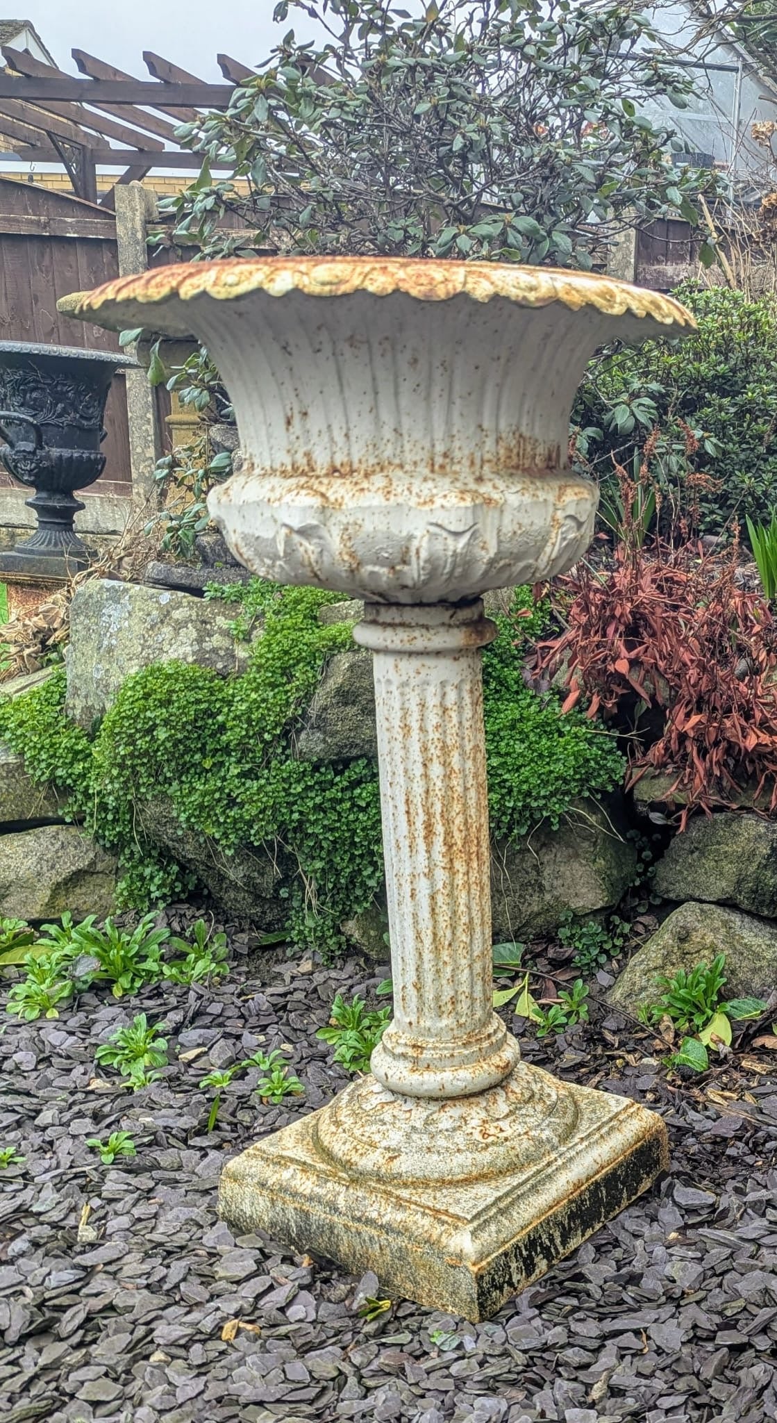 Single Mid Century cast iron Campana Urn Jardiniere - Delivery Available 0266