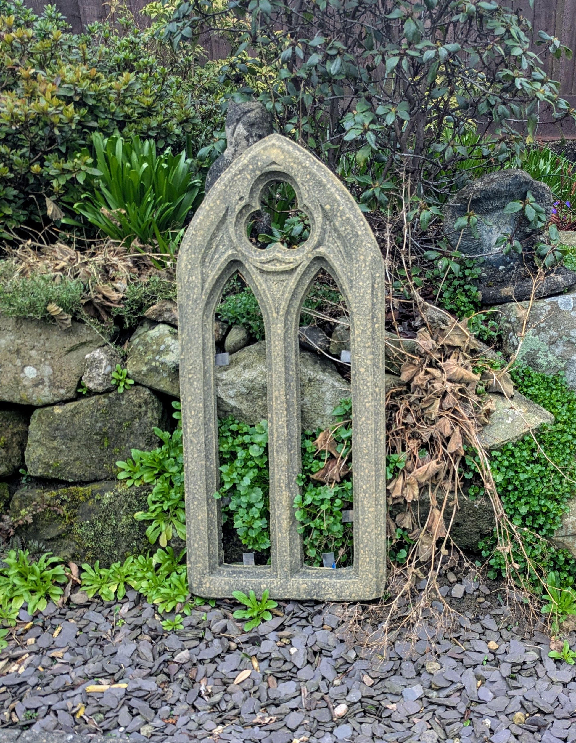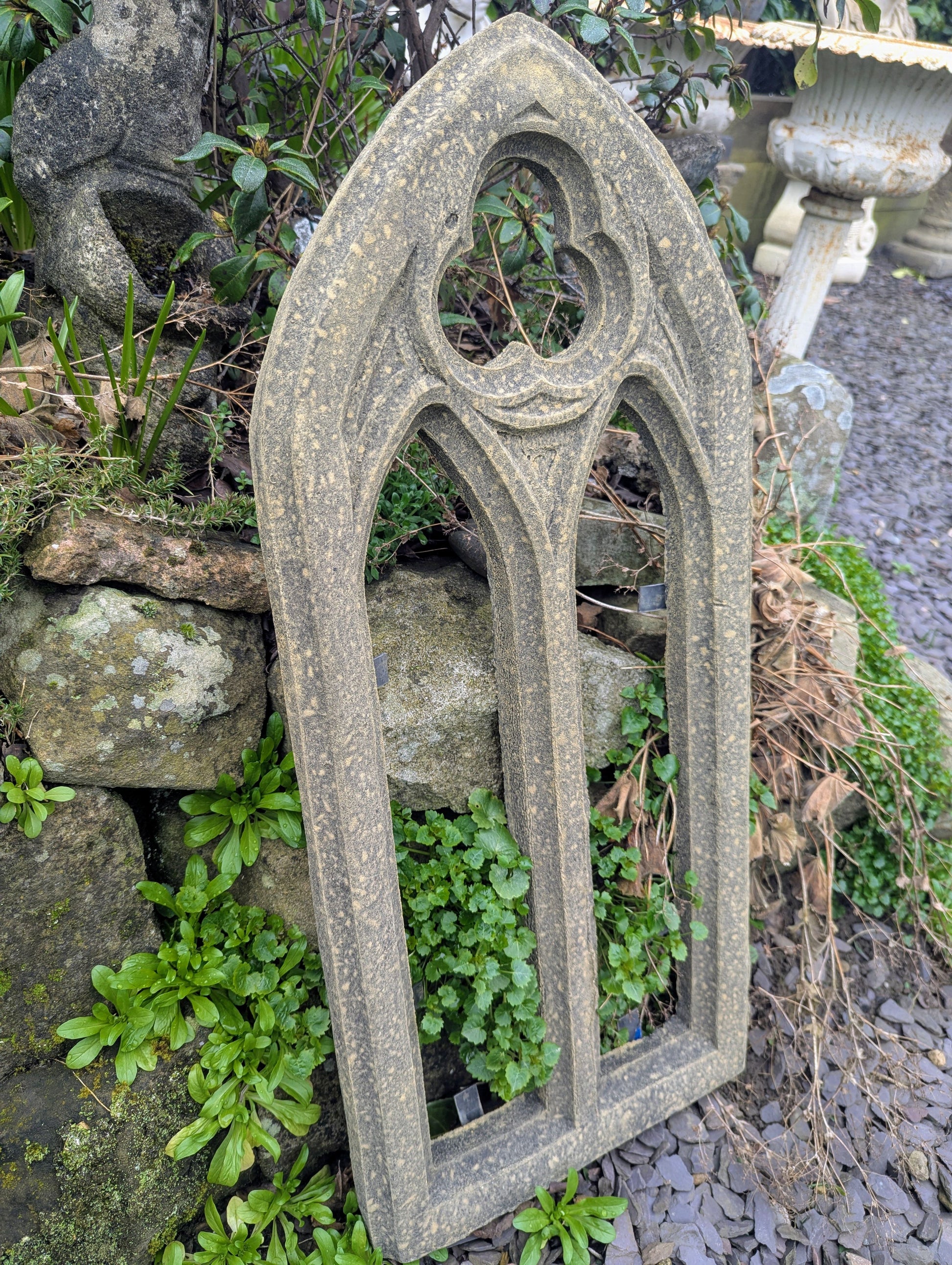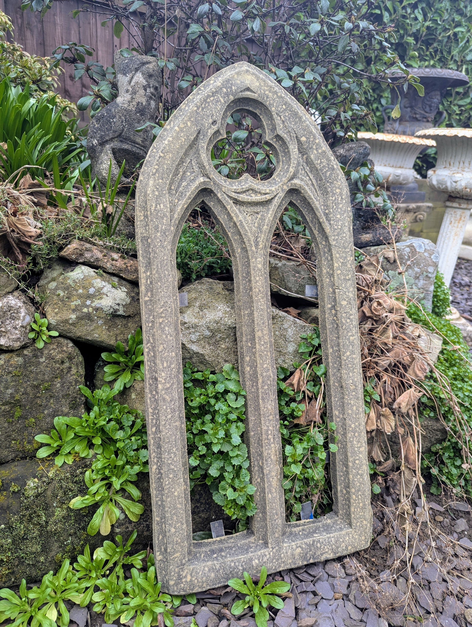 Small church window garden ornament English stone - Delivery available 0159.