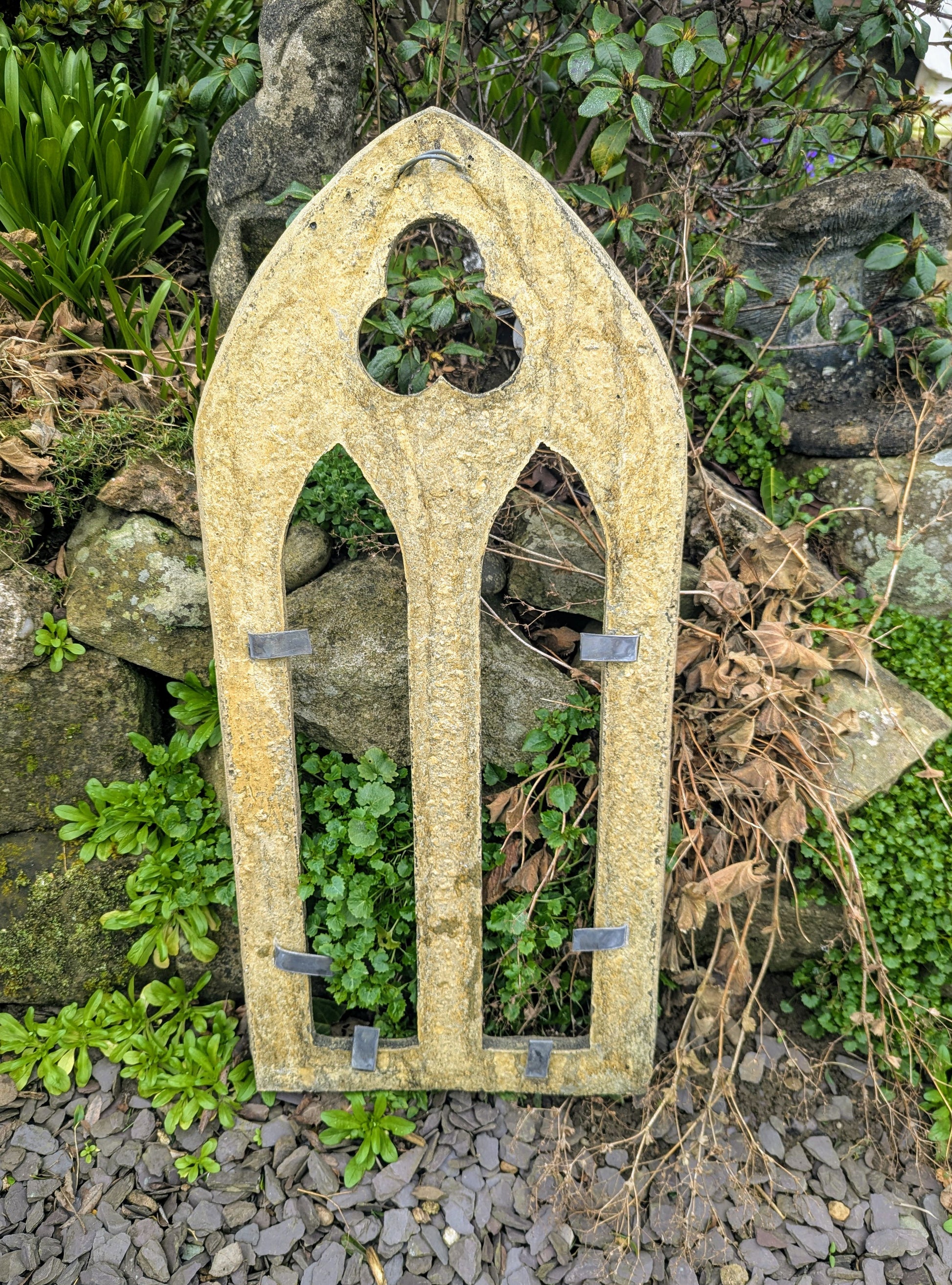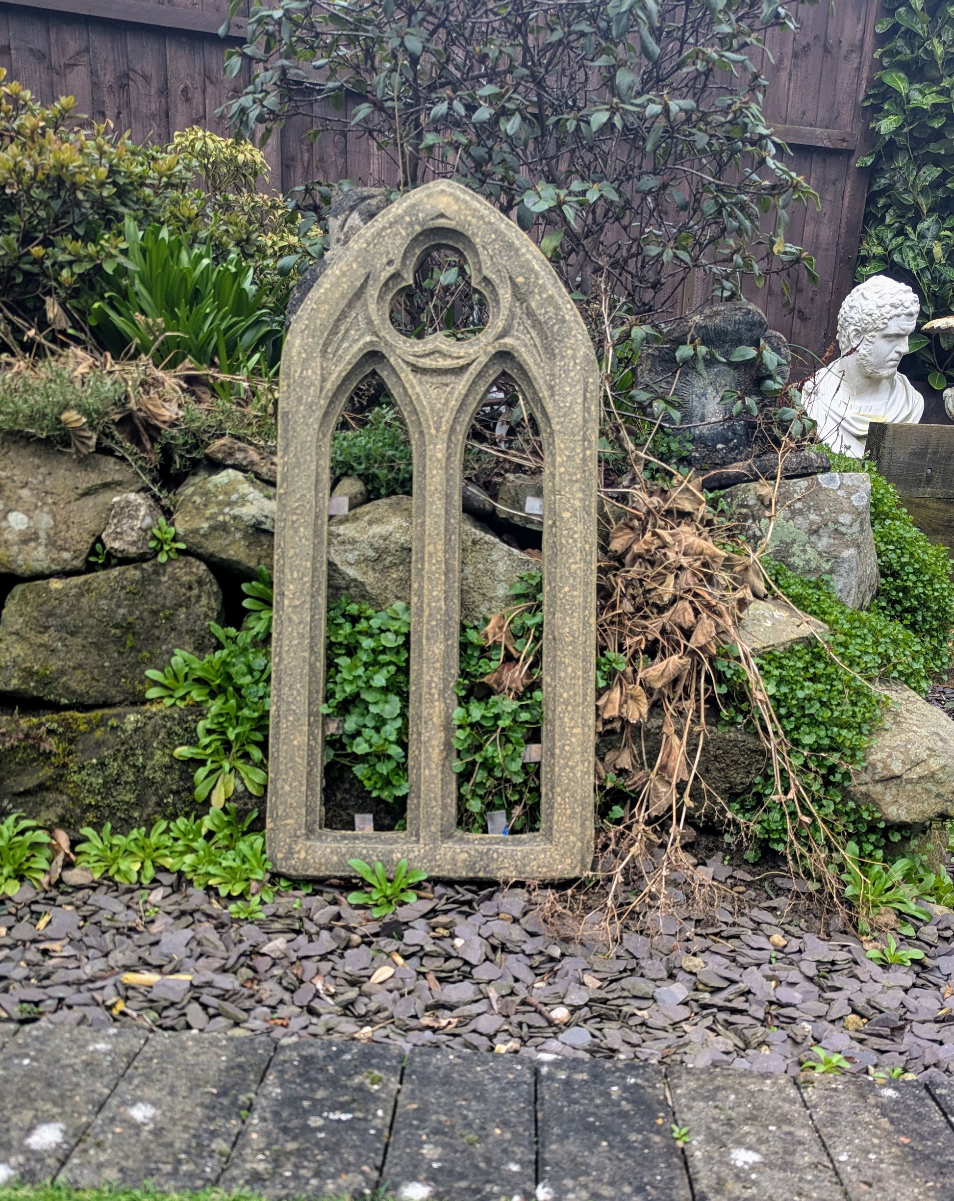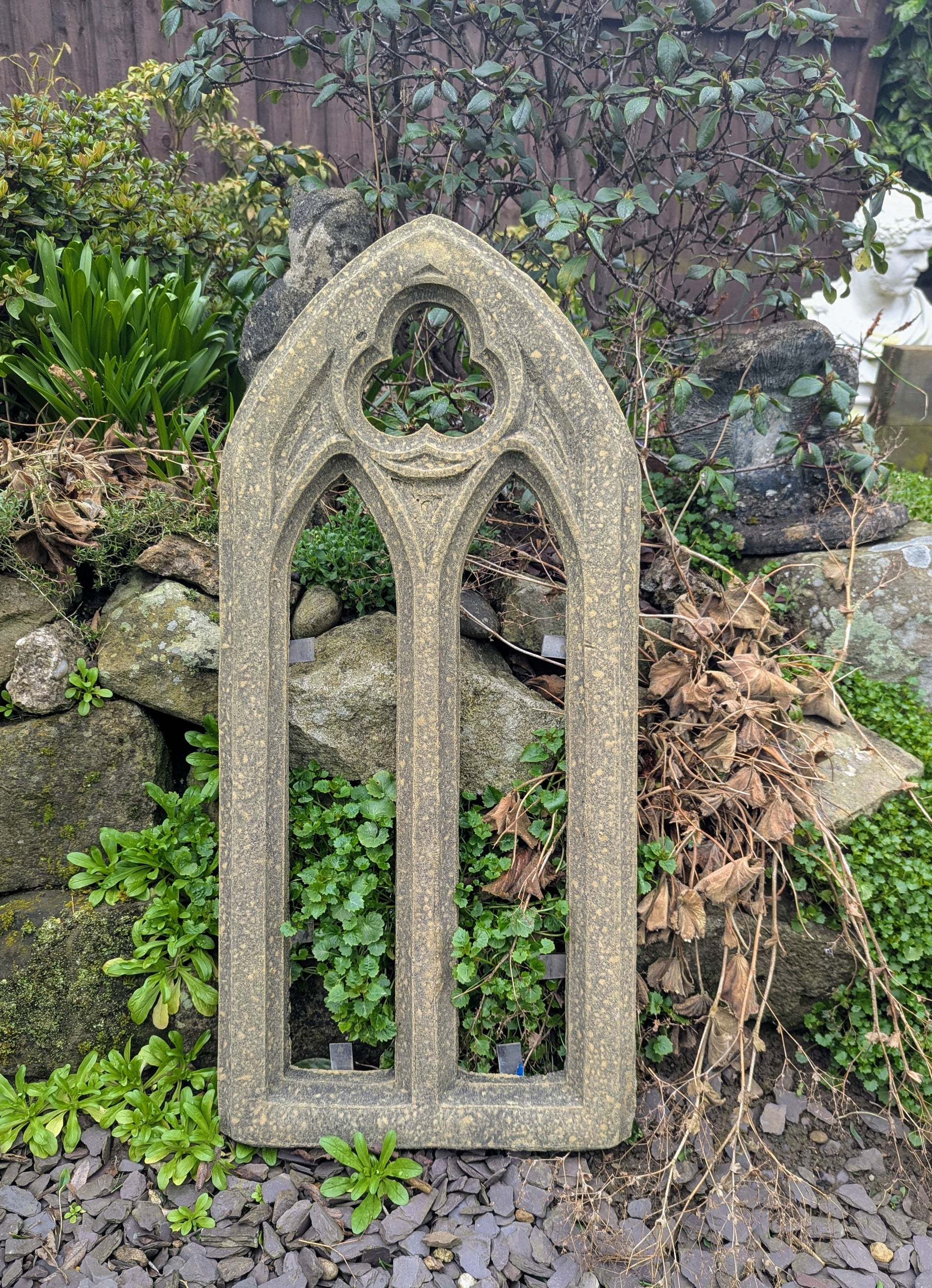 Small church window garden ornament English stone - Delivery available 0159.