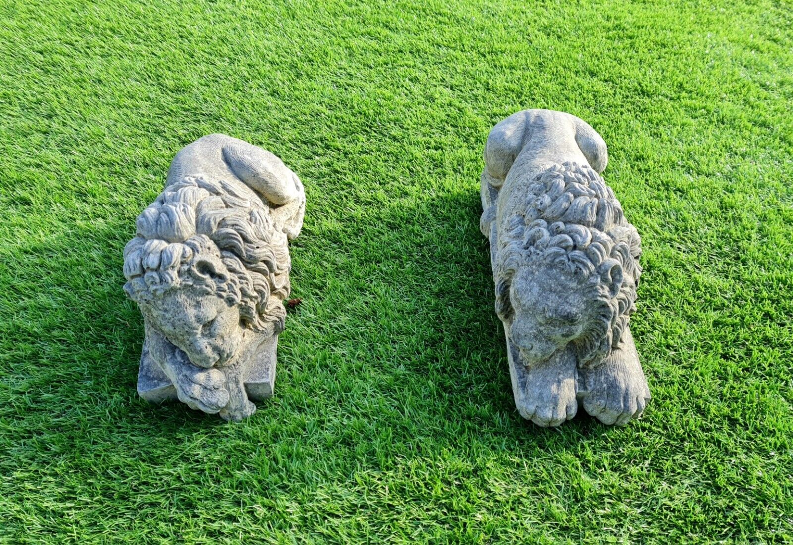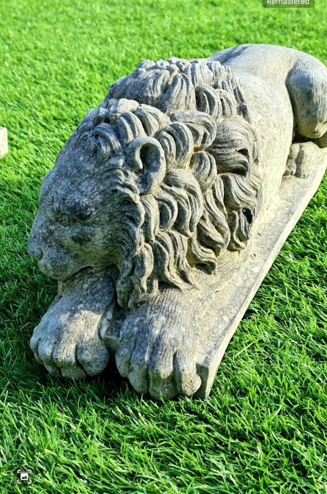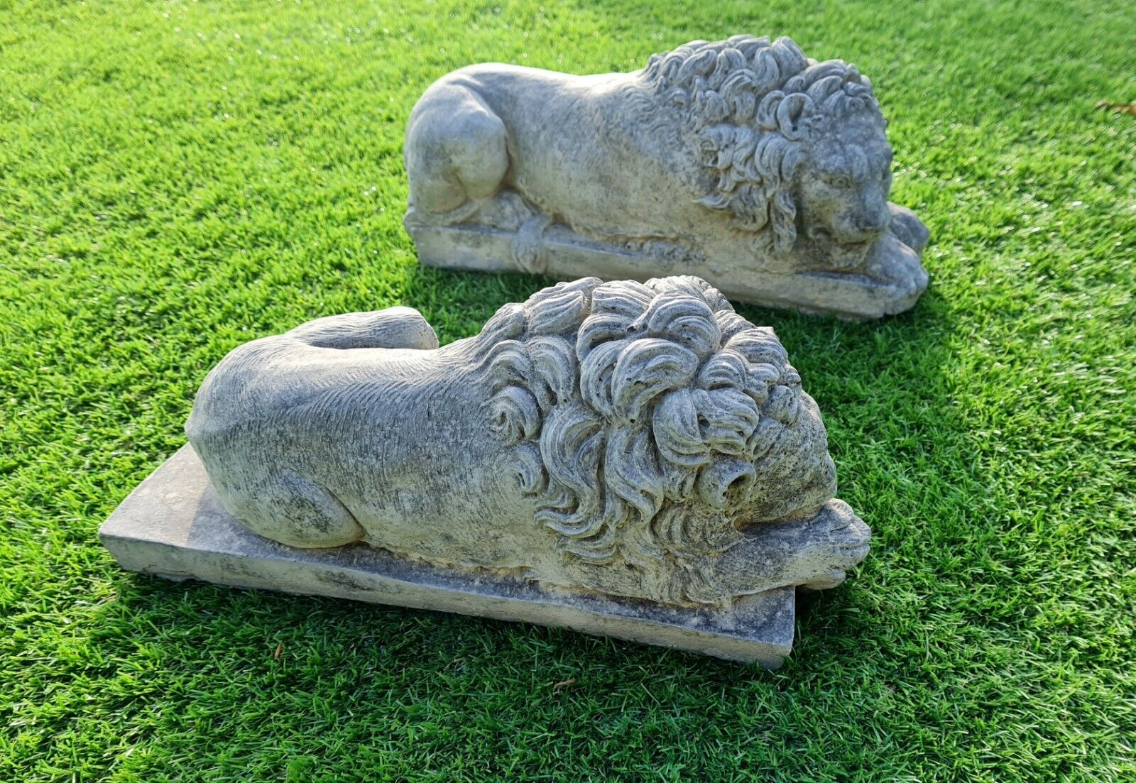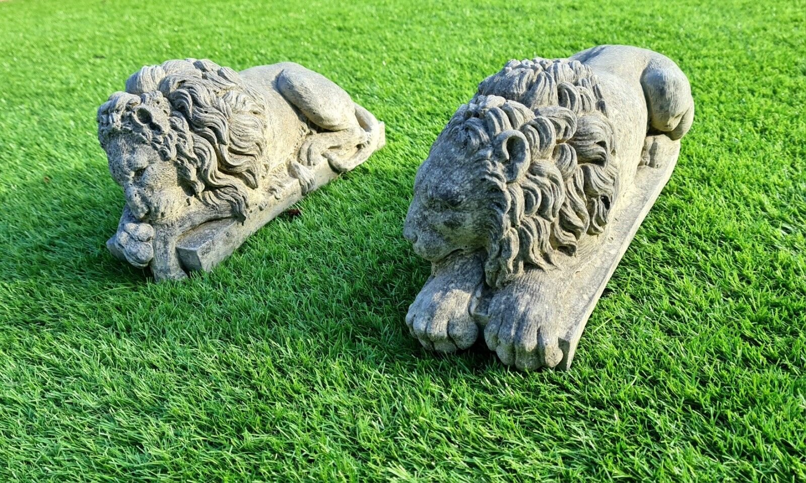 Pair Of Canova Lion English Stone Garden Ornaments - Free UK Delivery