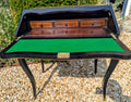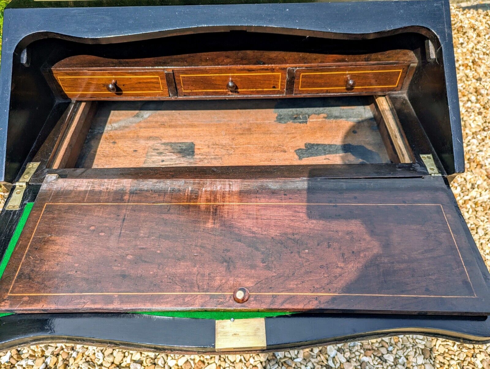 This is a stunning Napoleon 111 drop front desk, perfect for any antique lover. The desk is made from brass and ebony, giving it an elegant and sophisticated look. The desk is free-standing and features three drawers, with ample space for all your office essentials.