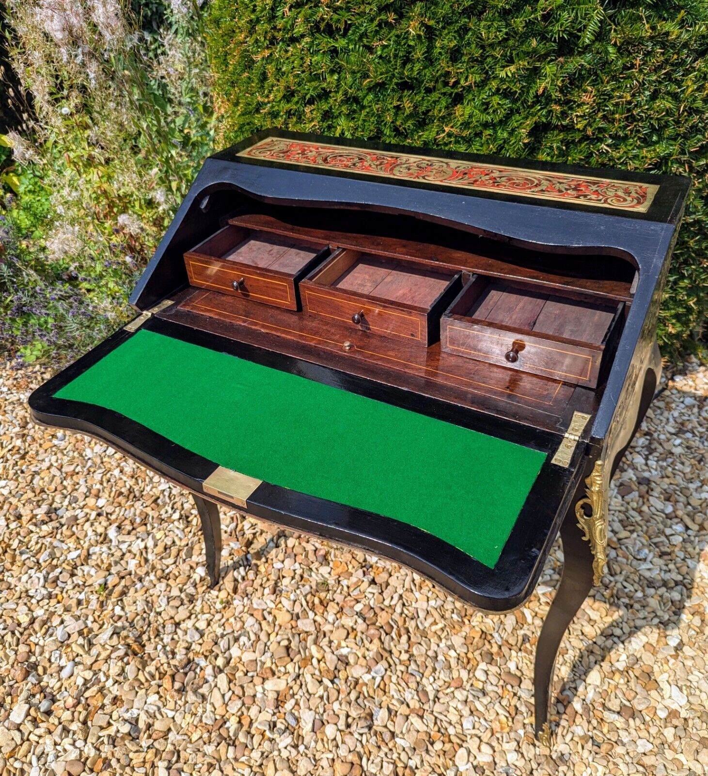 Superb Napoleon III Ebonised Brass & Boulle Bureau De Dame - Delivery Available