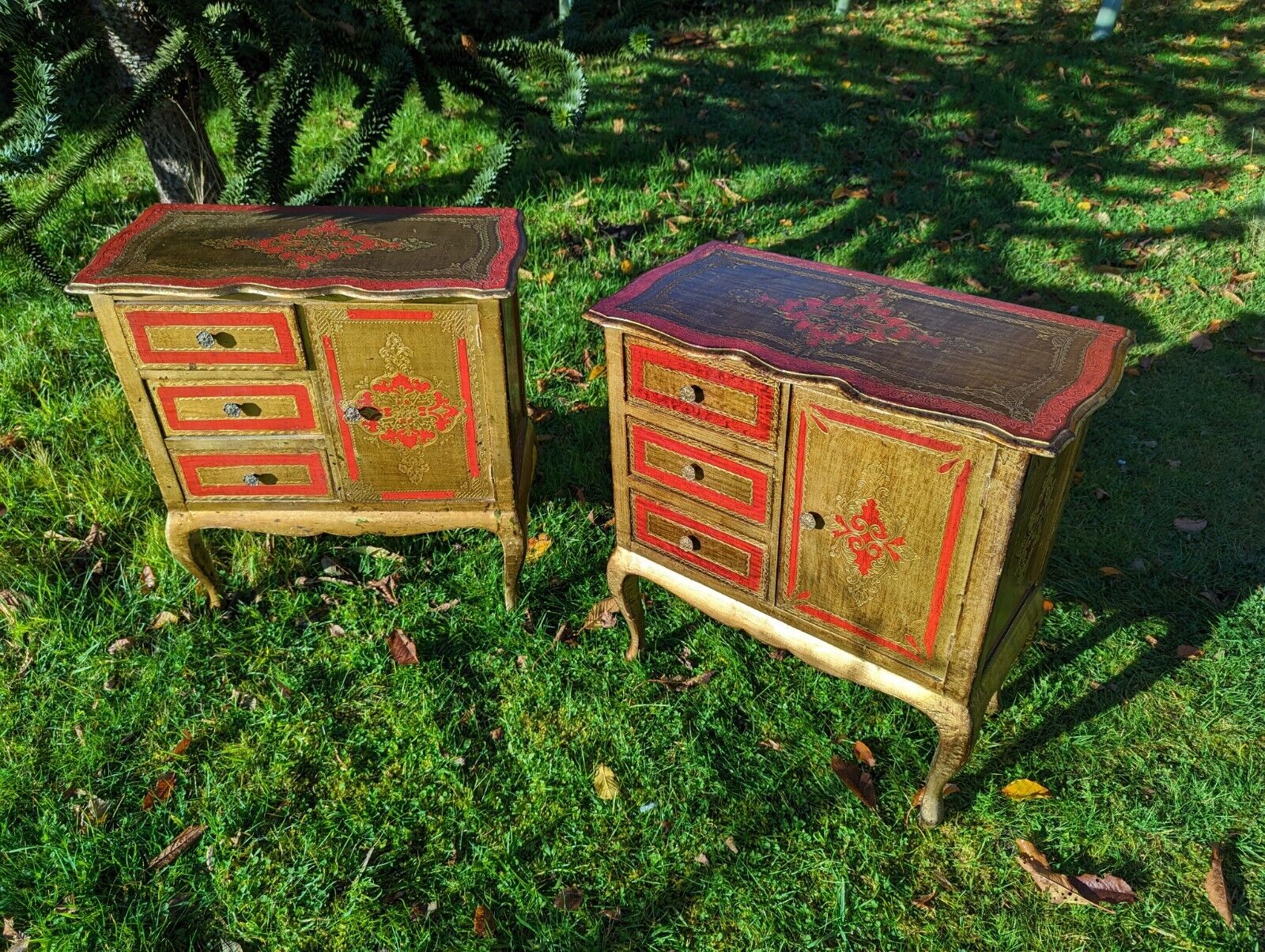 VERY NEAR PAIR SUPERB QUALITY STATEMENT VINTAGE ITALIAN FLORENTINE CABINET.