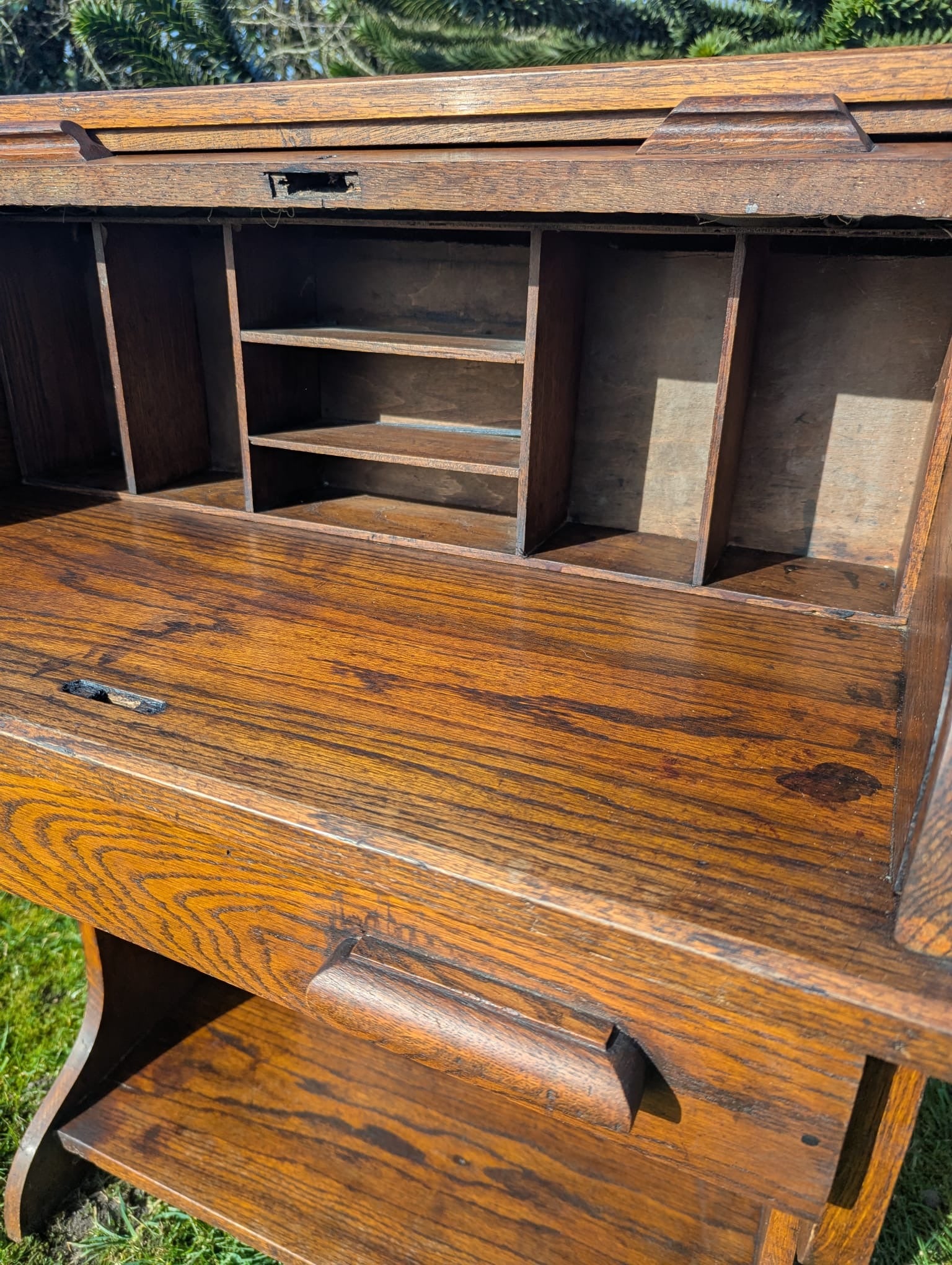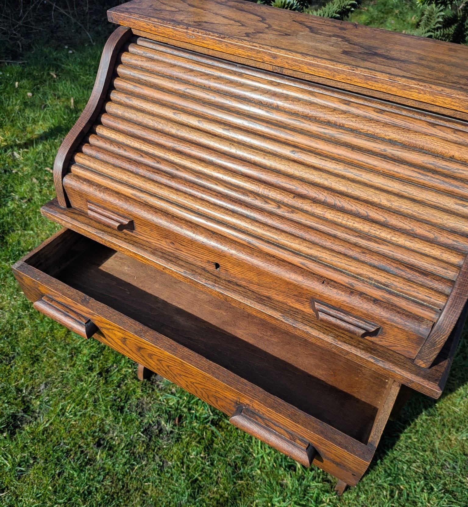 Superb Oak Swedish Roll Top Mid Century Desk - Delivery Available