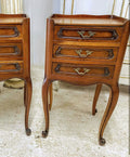 Enhance the elegance of your bedroom with this stunning pair of French side tables. Crafted in France during the 1900s, each bedside table features a beautiful antique finish that complements its cabriolet legs made of oak material. The tables come fully assembled and are made with three drawers providing ample storage space for your essentials.