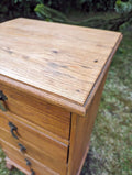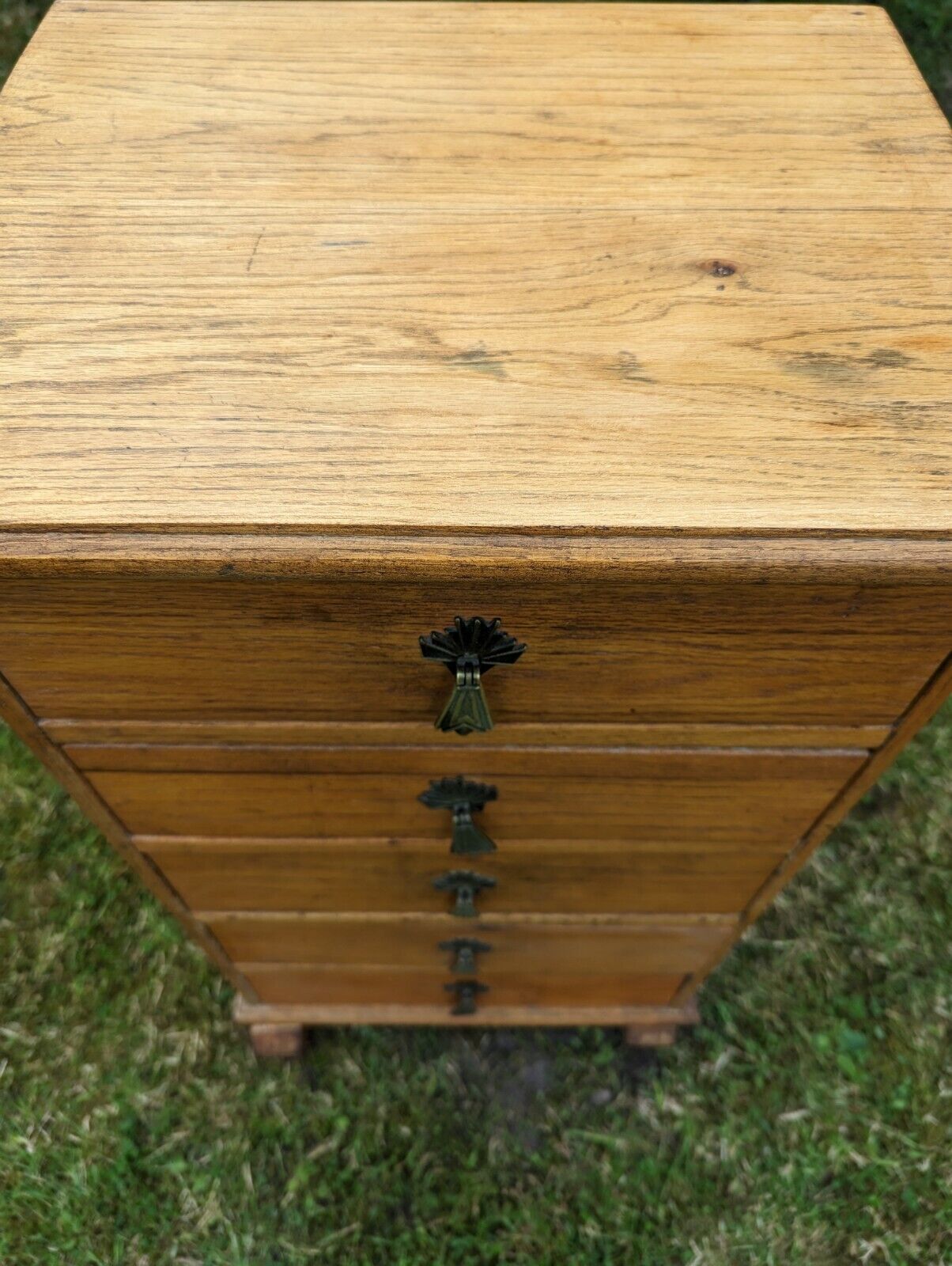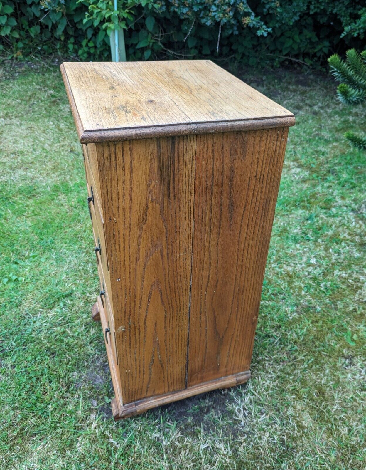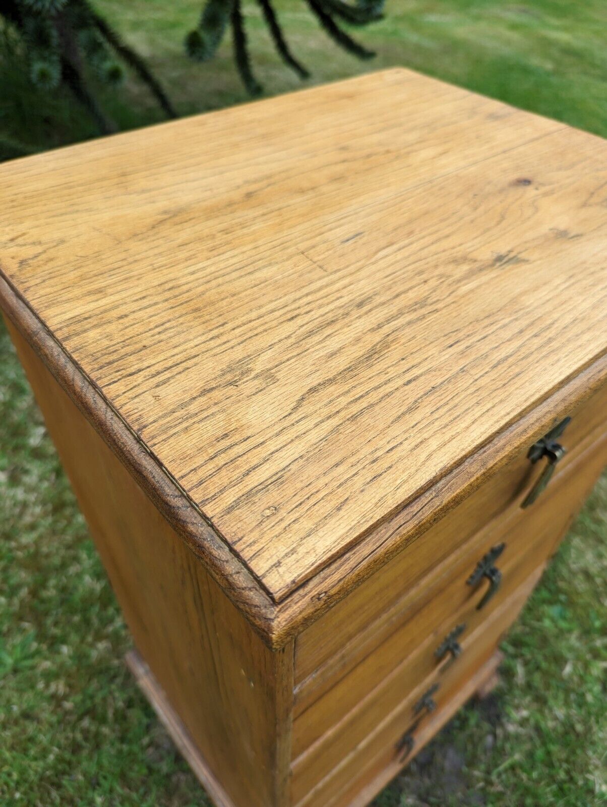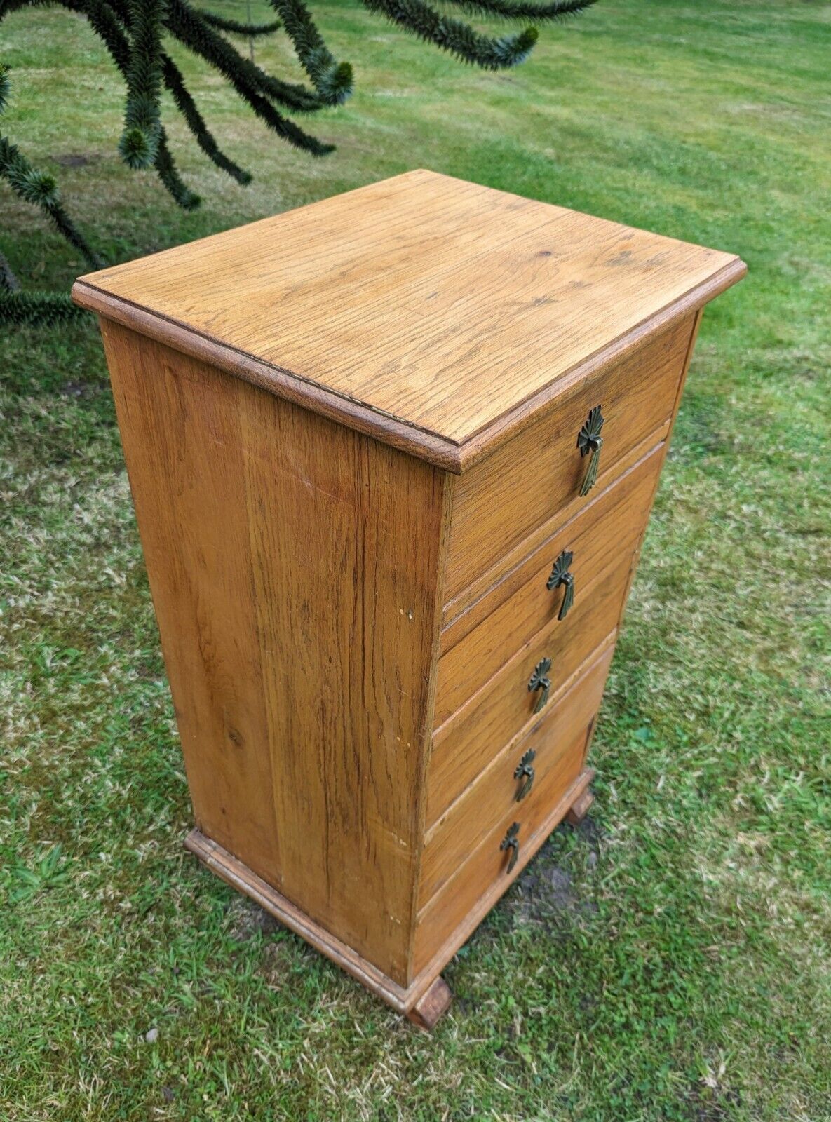 This superb quality 1930s Art Deco chest of drawers is a stunning addition to any home. Crafted from solid oak, it features a beautiful brown colour and brass handles. With a maximum weight capacity of 10kg and measuring 45cm in length, 37cm in width, and 80cm in height, this chest of drawers is perfect for storing your clothes and other items.
