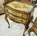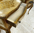 Unveil the sophisticated elegance of this rare true pair of Italian Florentine Side Tables. Ornately crafted with two drawers and superbly carved legs, each piece is carefully restored to retain its original authenticity. With a hint of age-related wear and tear, their character brings style to any space.