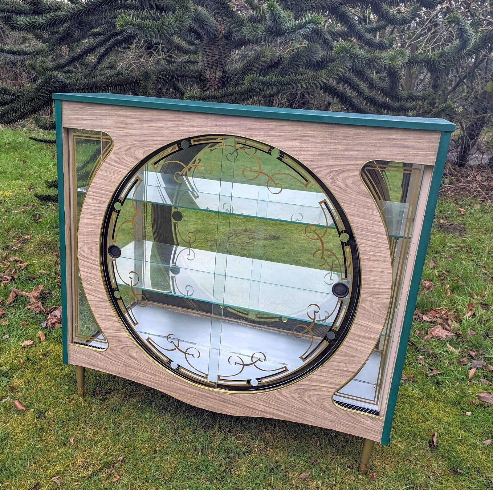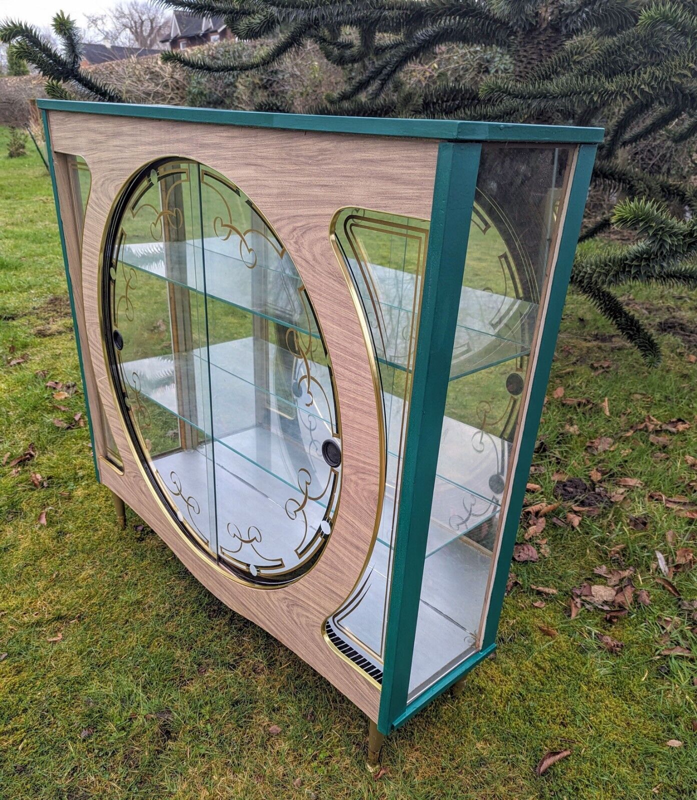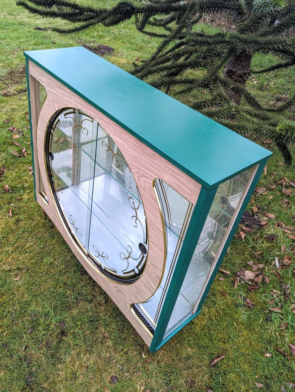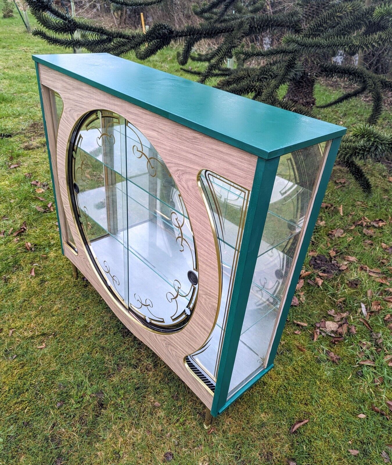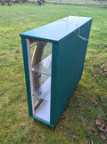 It has a beautiful green colour and a mid-century modern design that is perfect for adults who love vintage style. The cabinet has two shelves, a glass door, and an interior switched light with free-standing mounting that makes it easy to move around.
