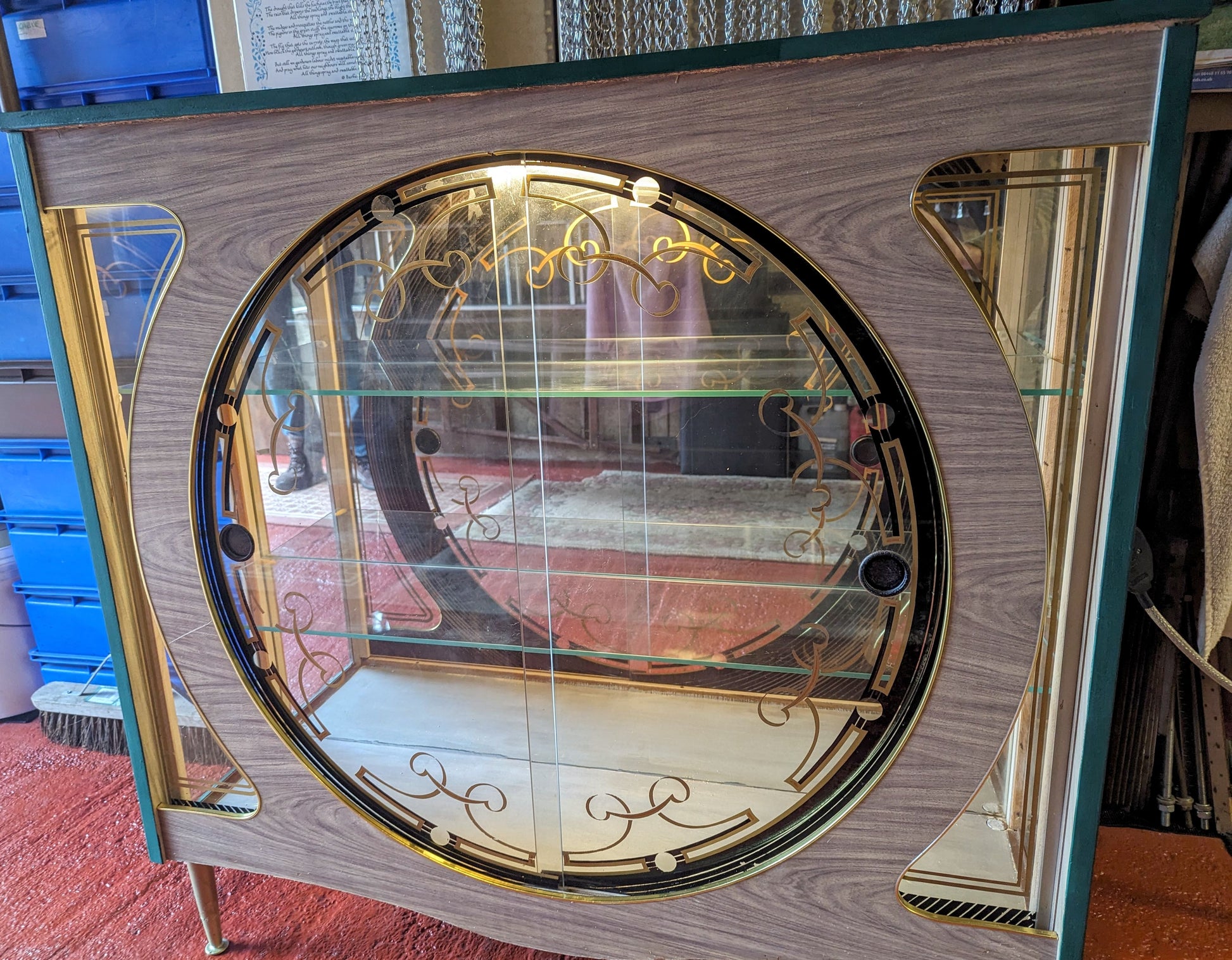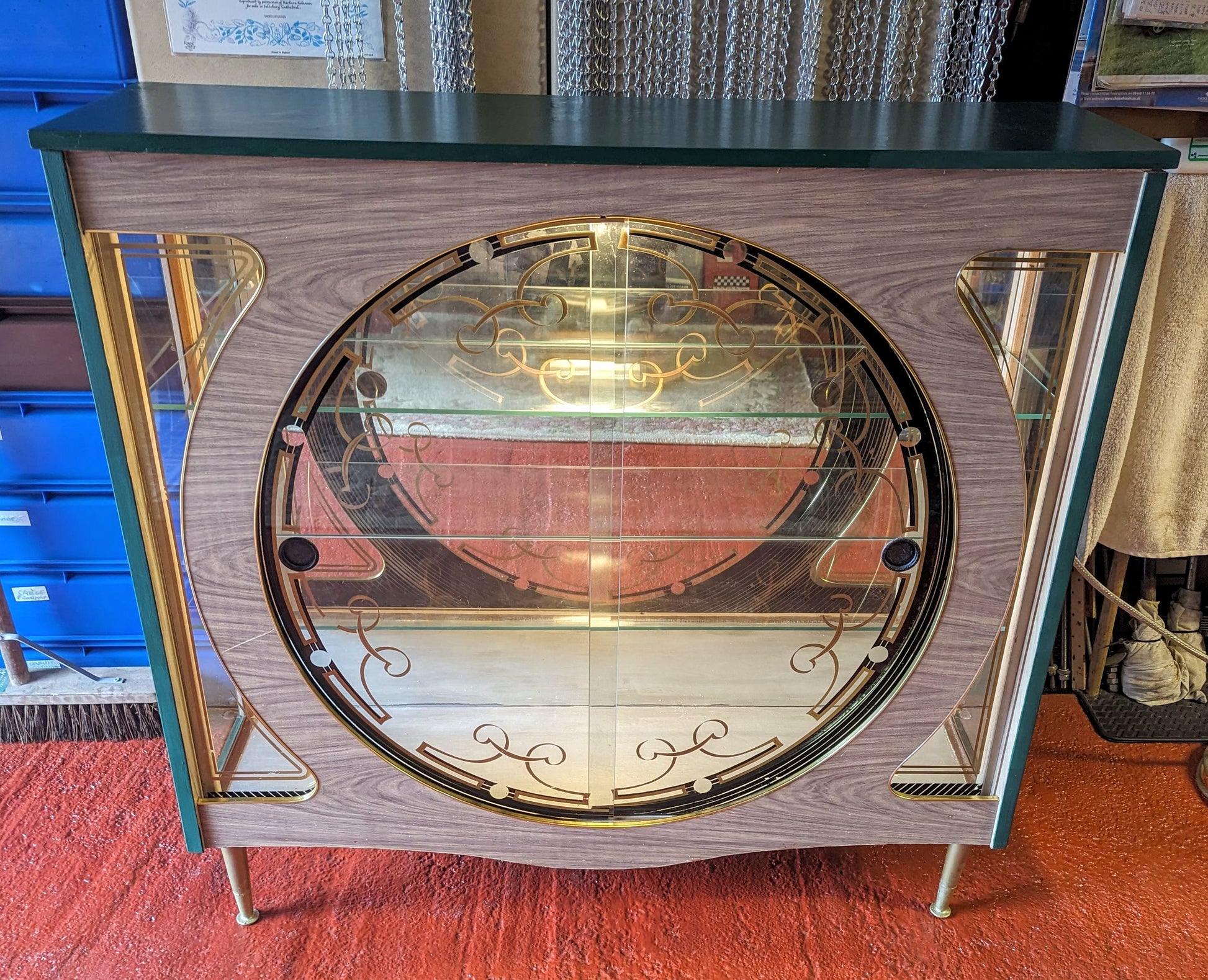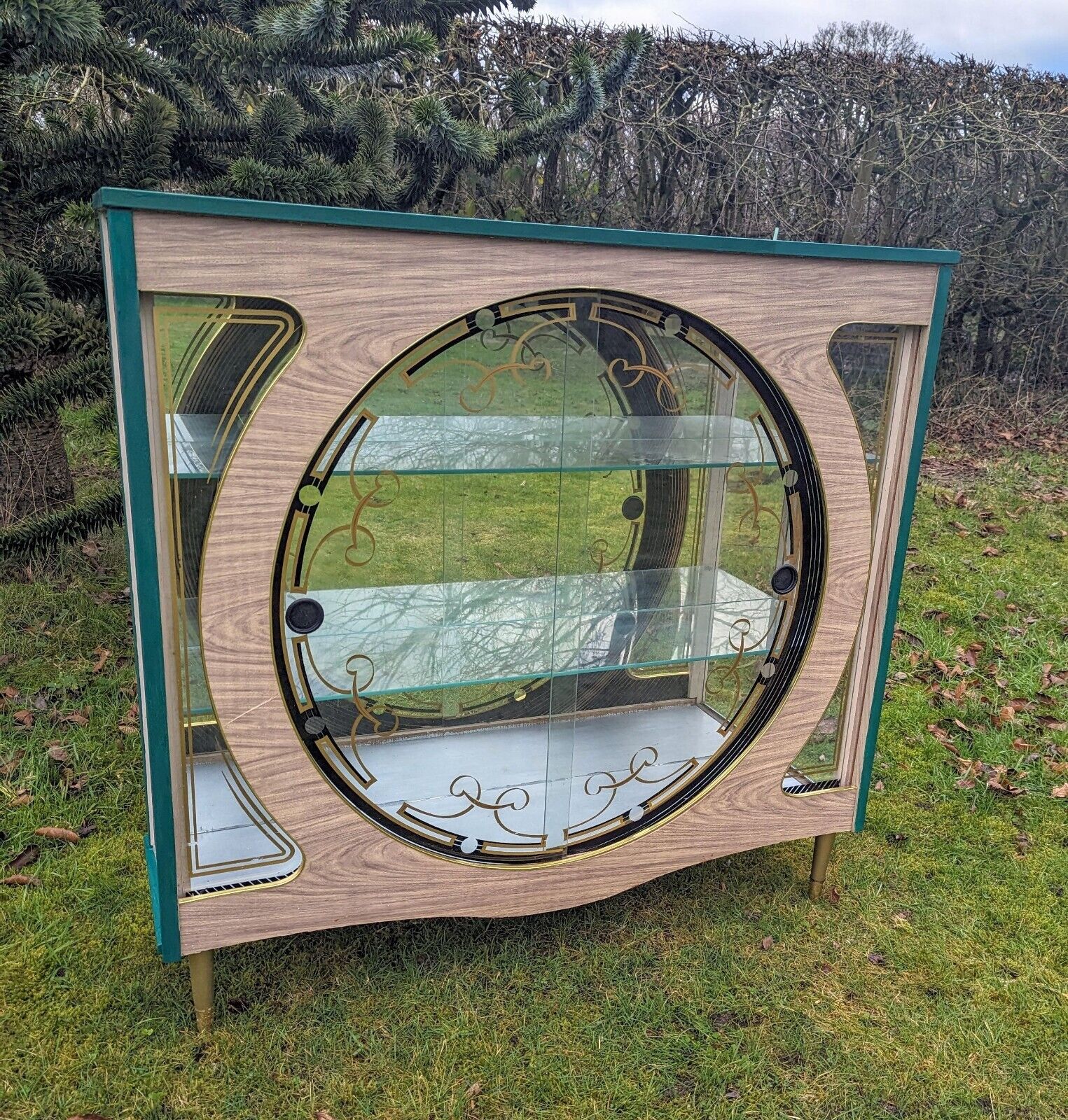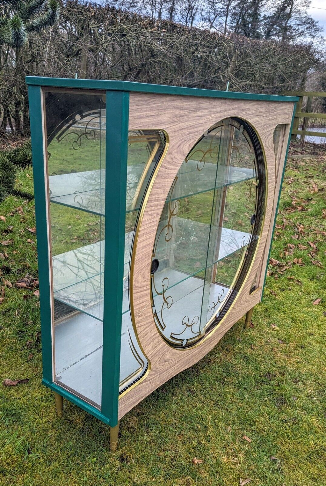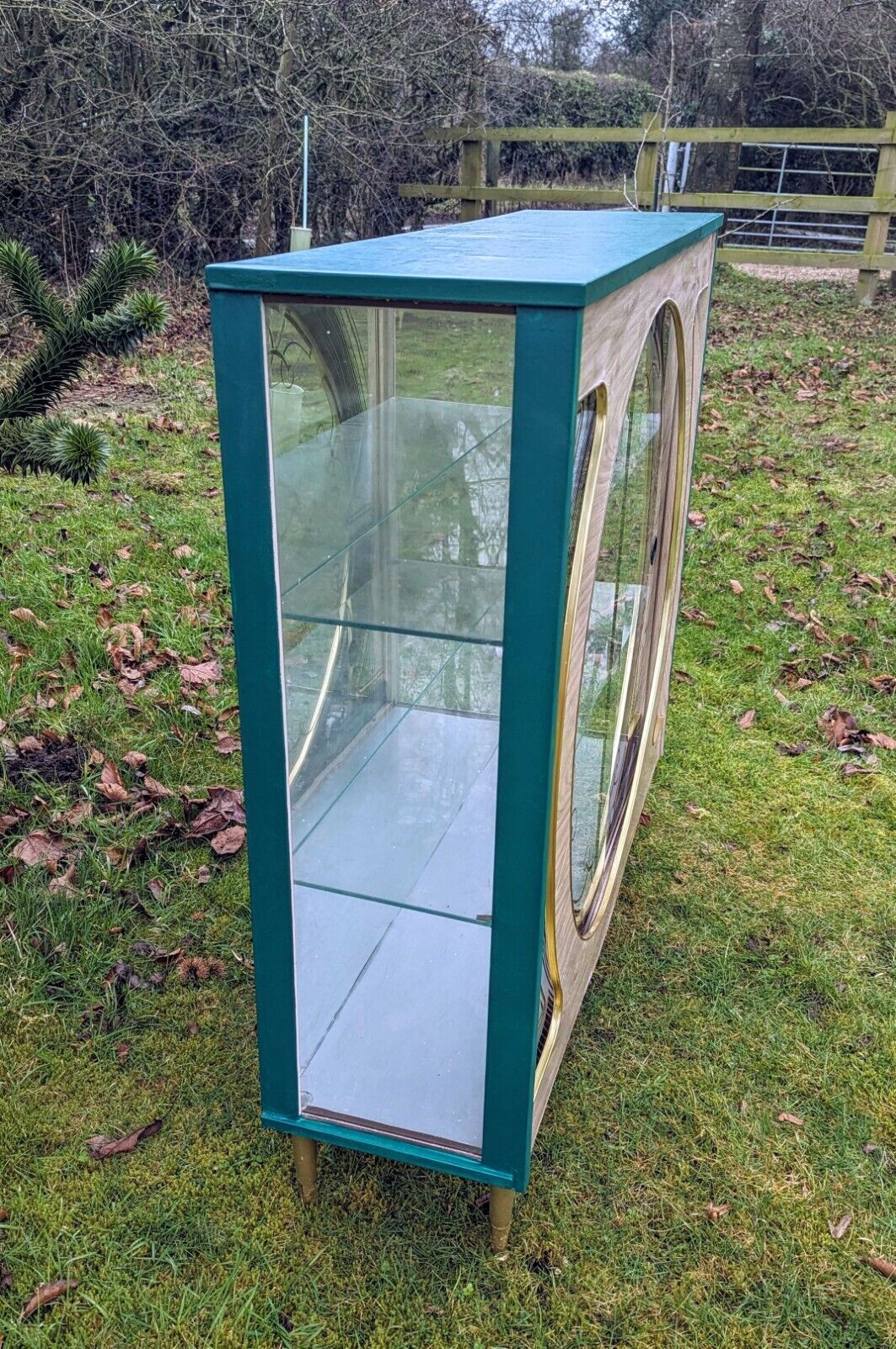 It has a beautiful green colour and a mid-century modern design that is perfect for adults who love vintage style. The cabinet has two shelves, a glass door, and an interior switched light with free-standing mounting that makes it easy to move around.