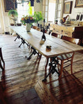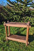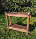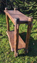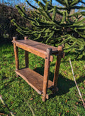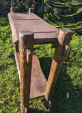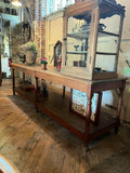 This vintage French bistro console butchers table boasts a rustic, primitive look.