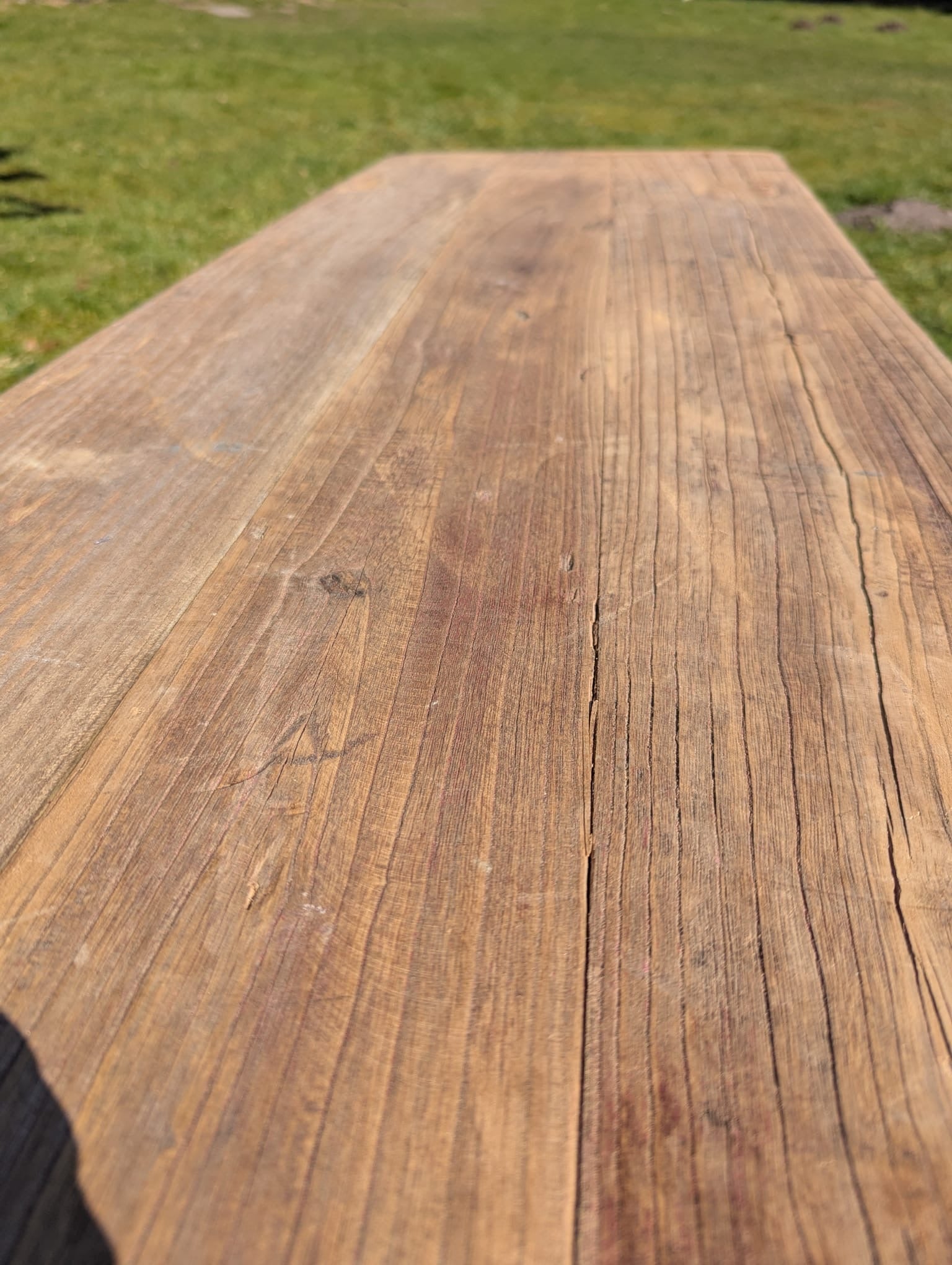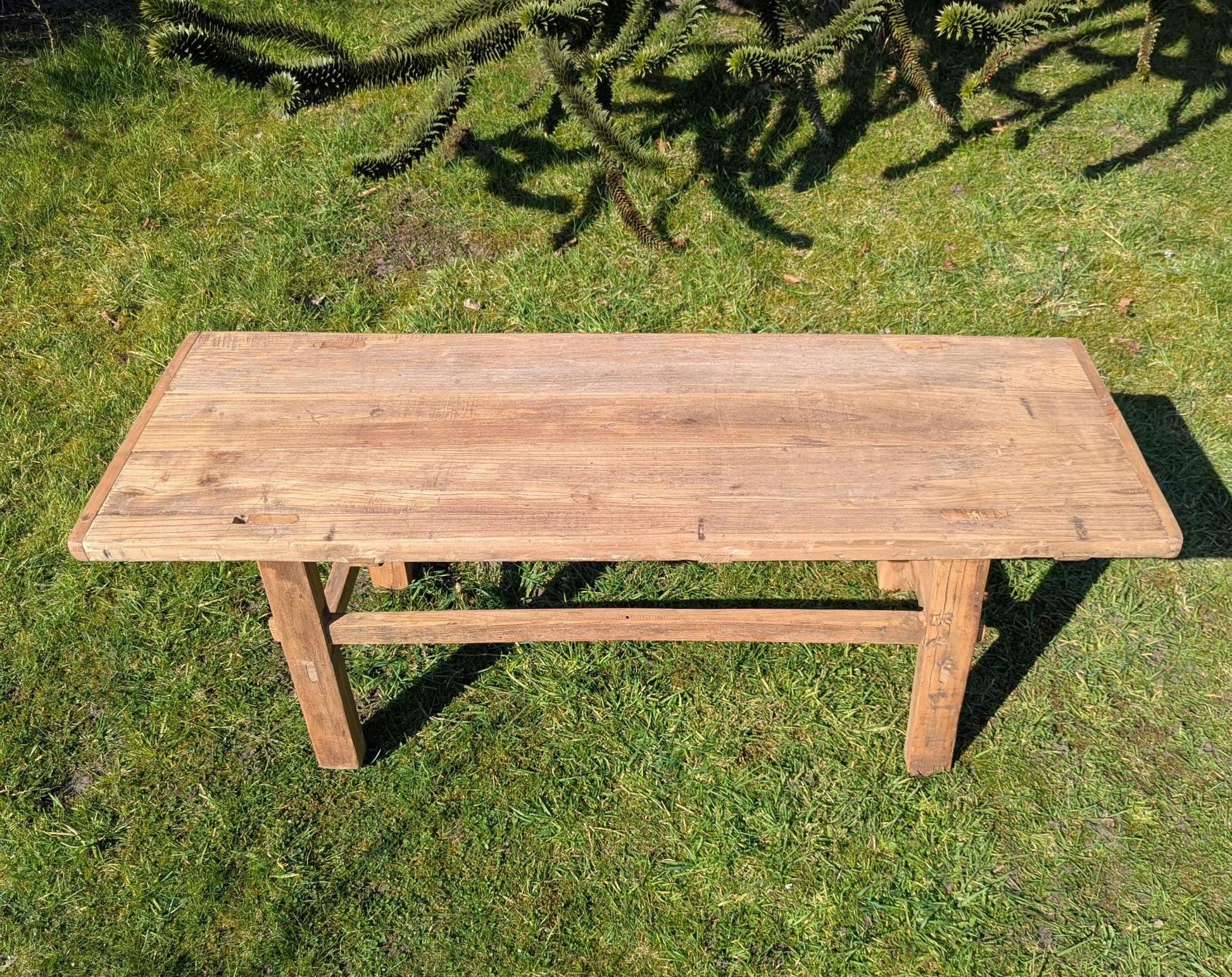 Add a touch of vintage charm to your living space with this stunning reclaimed elm coffee table.