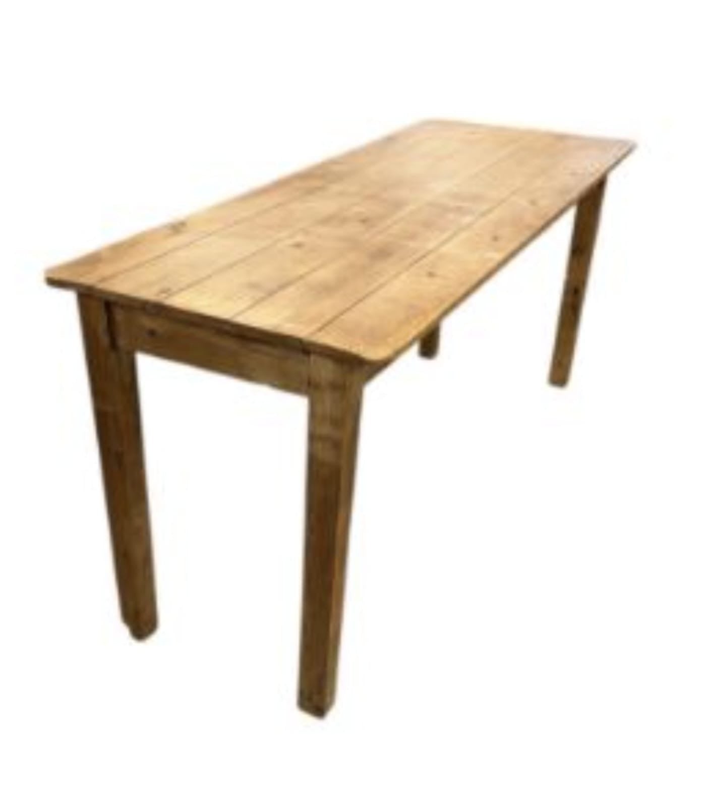This vintage rustic pine refectory table features a 5 plank top with stout square legs, making it a sturdy and stylish addition to any room.