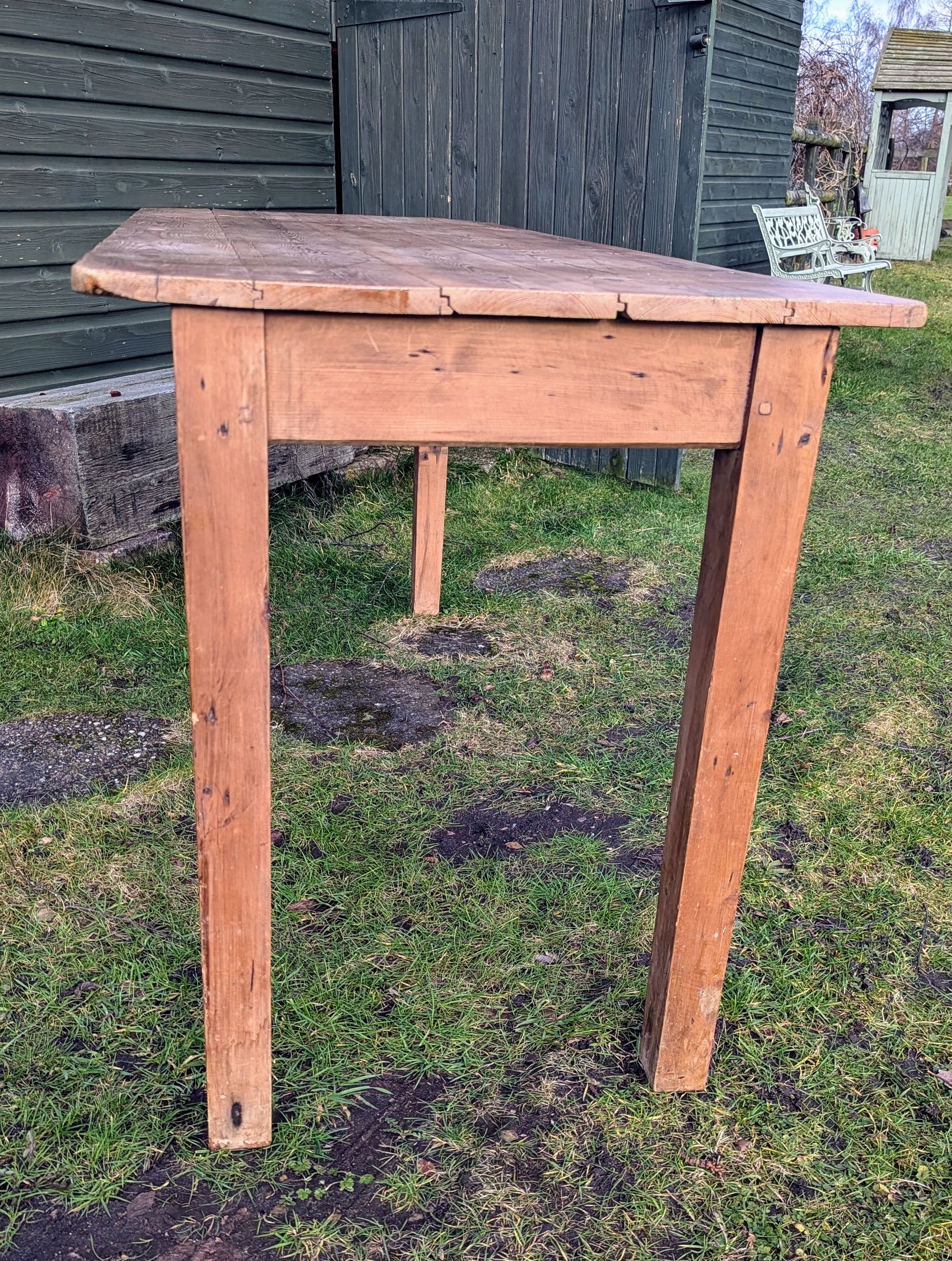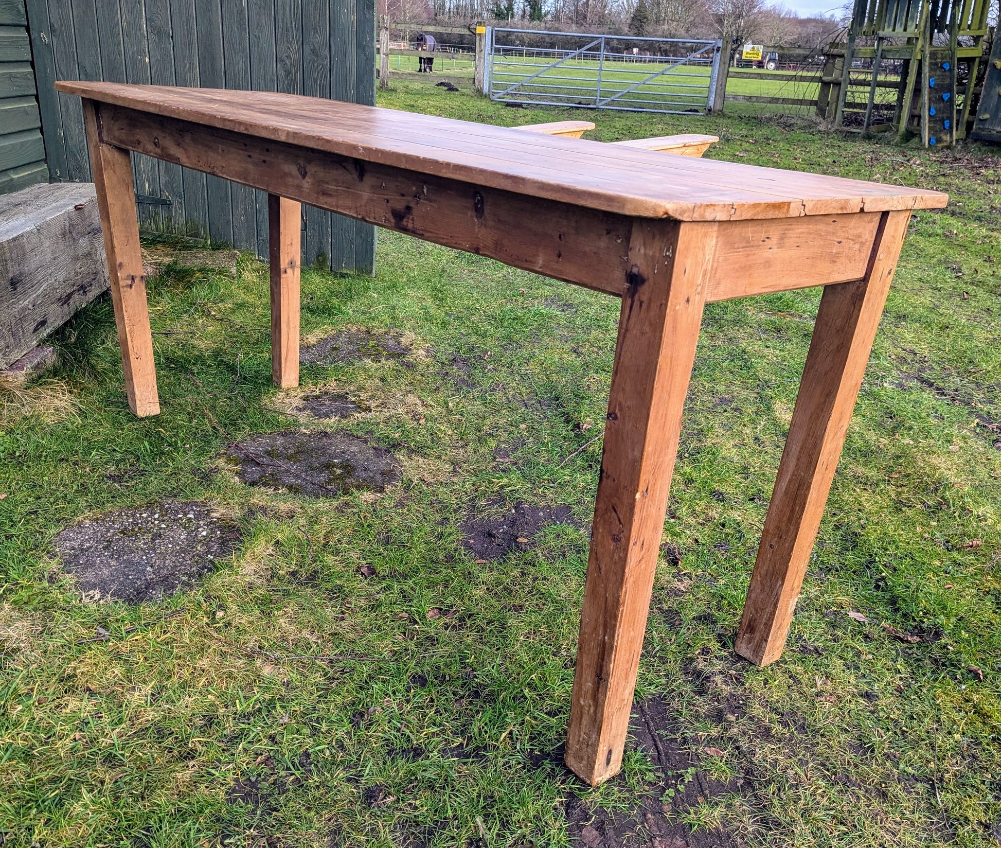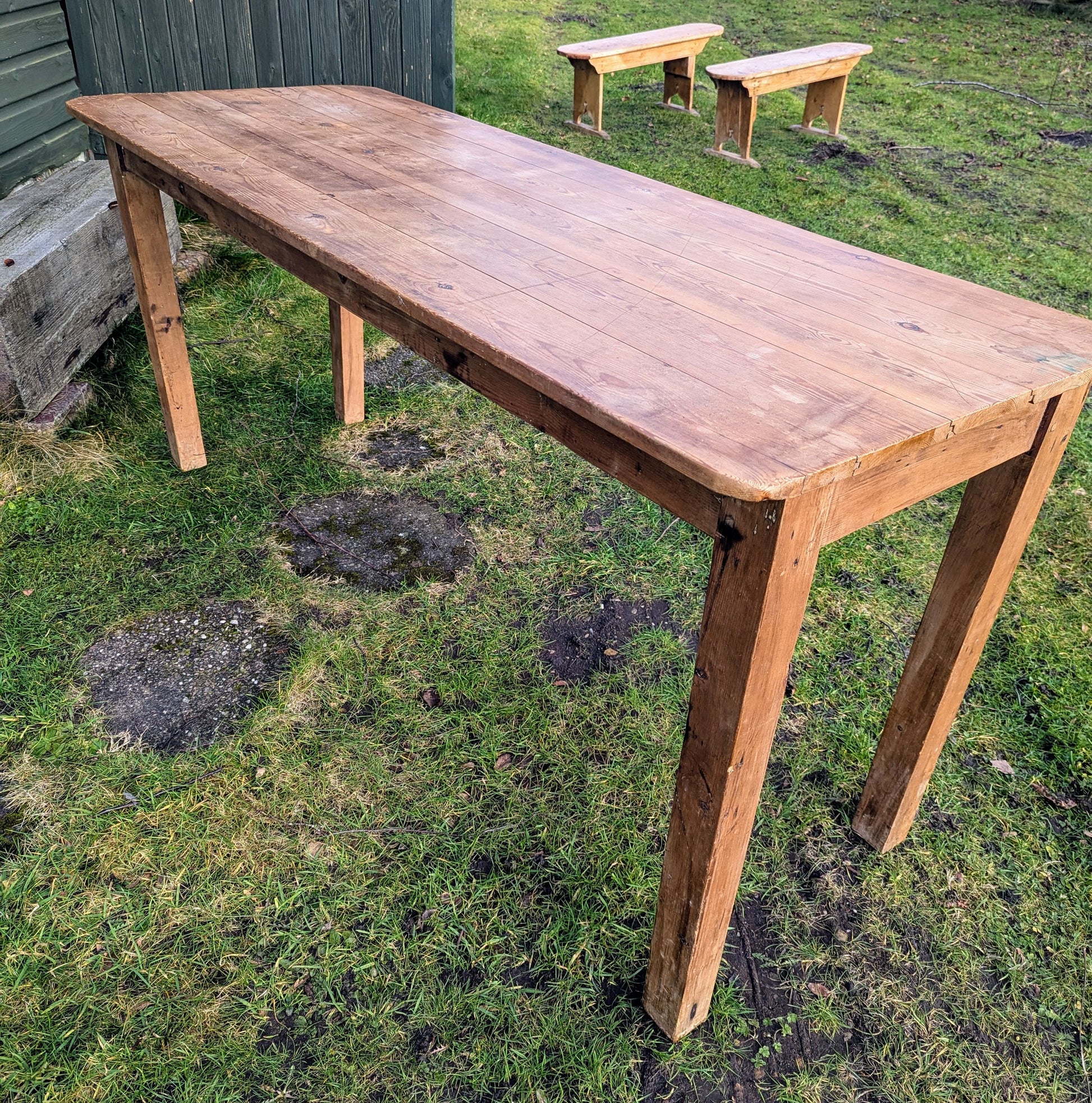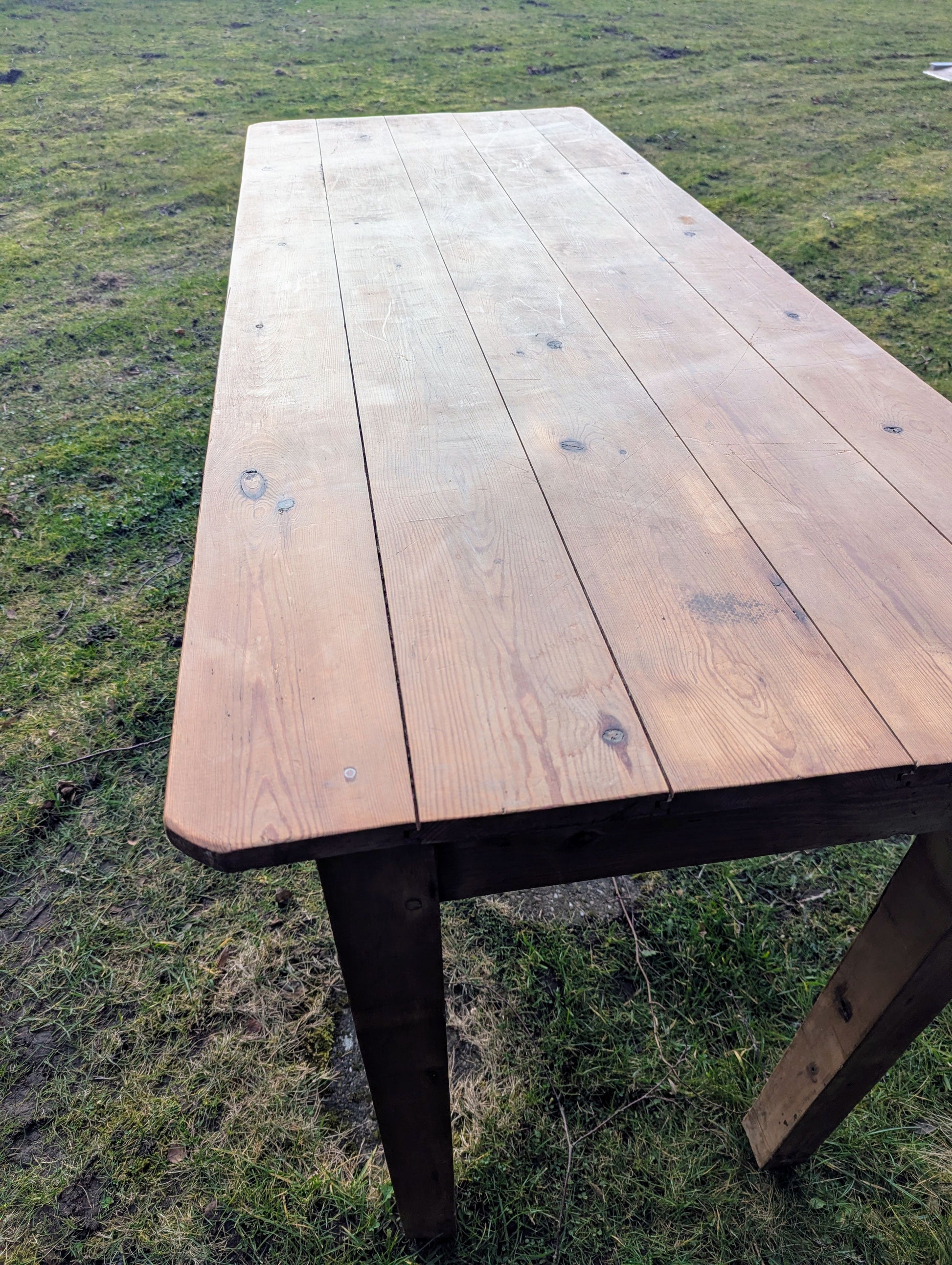 Vintage Rustic Pine refectory table 5 plank top, stout legs - Delivery available