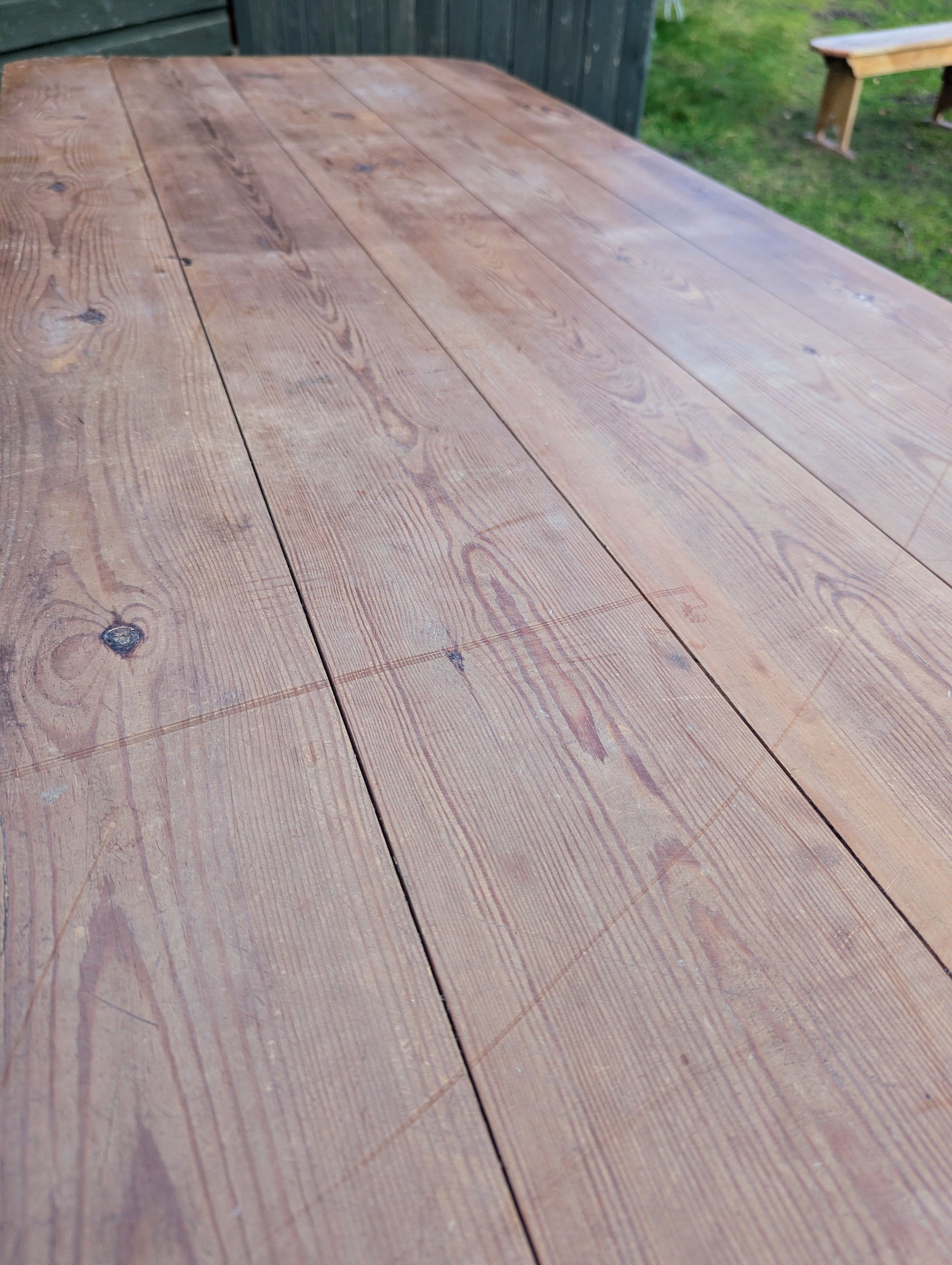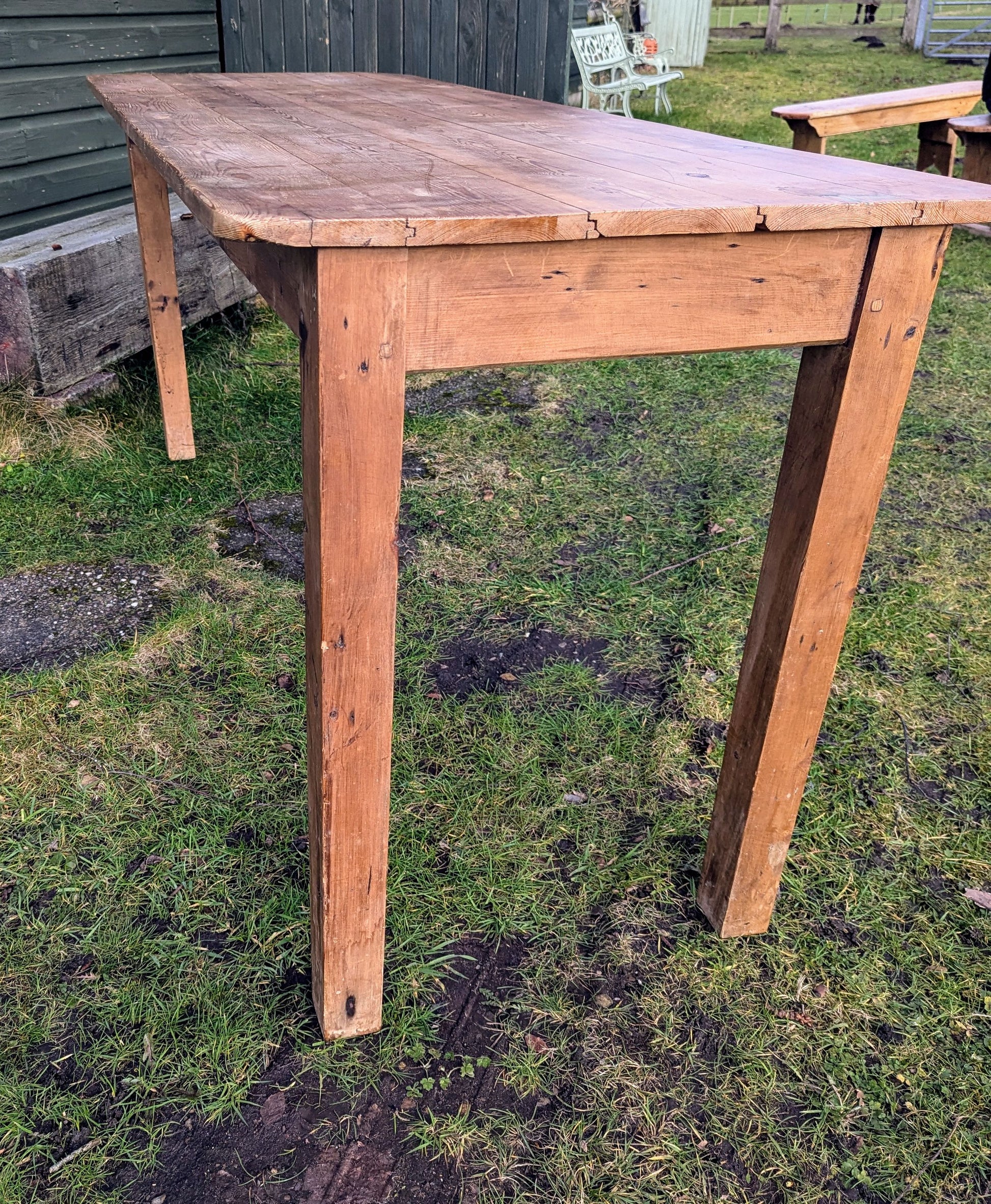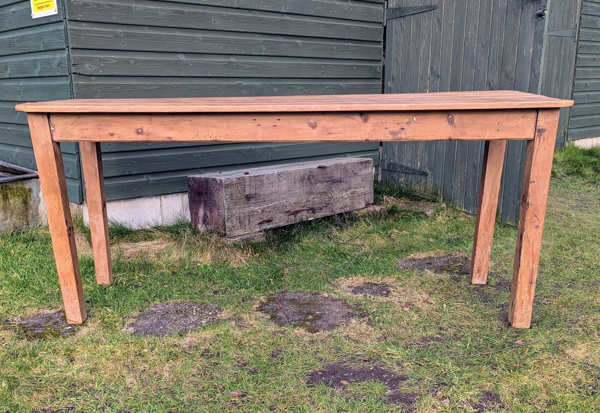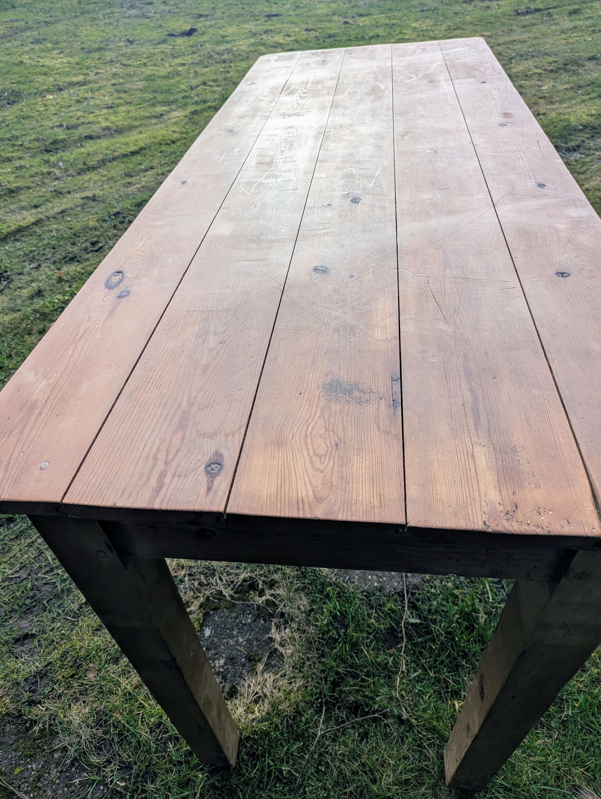 Vintage Rustic Pine refectory table 5 plank top, stout legs - Delivery available