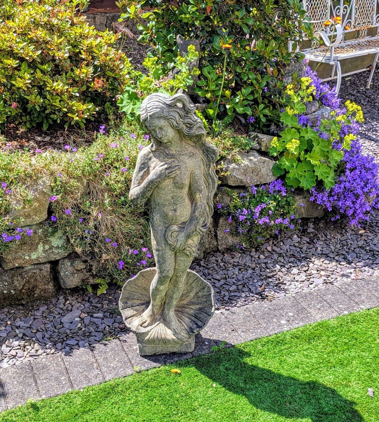 This beautiful statue is a must-have for any collector or lover of art. Crafted in the United Kingdom from high-quality stone, this Venus statue is a stunning addition to any garden or patio.