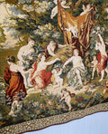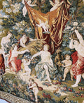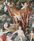 The romantic scene it depicts shows a young goddess, believed to be Venus or Aphrodite to the Greeks, surrounded by her ladies-in-waiting and embellished with cherubs and a satyr. Young maidens and cherubs dance in the background, creating an idyllic landscape that was perfected during the Renaissance by the Gobelins.