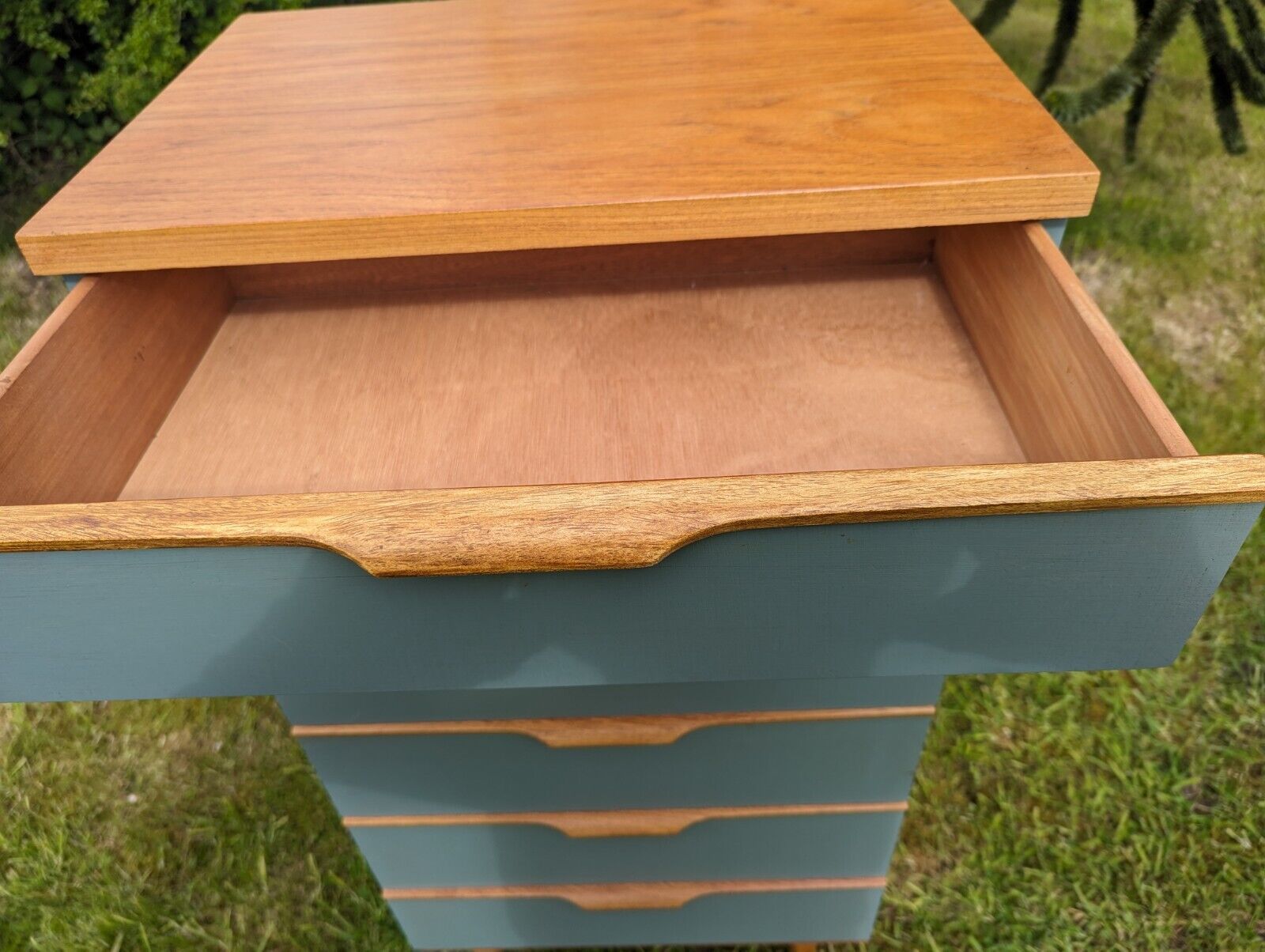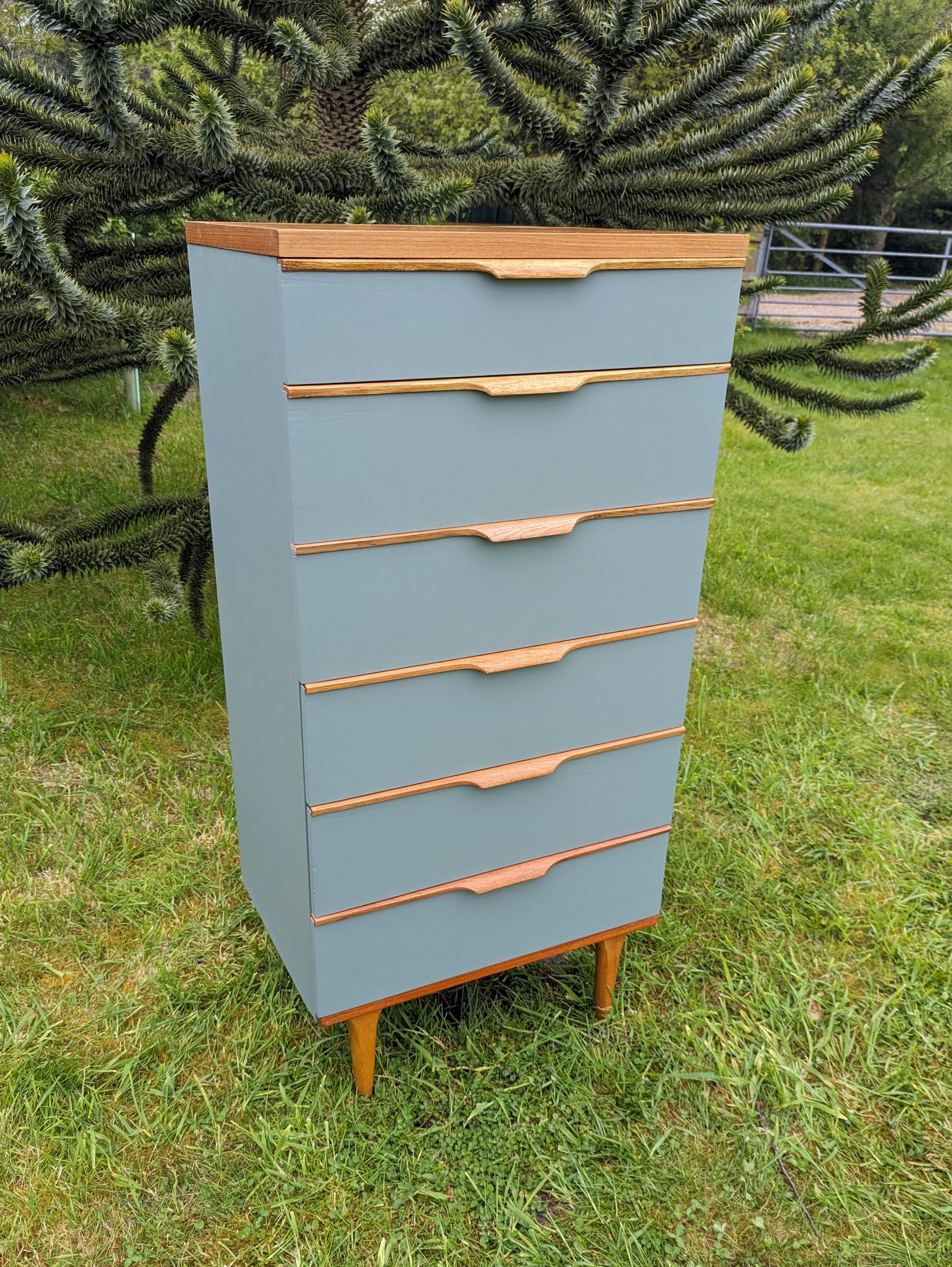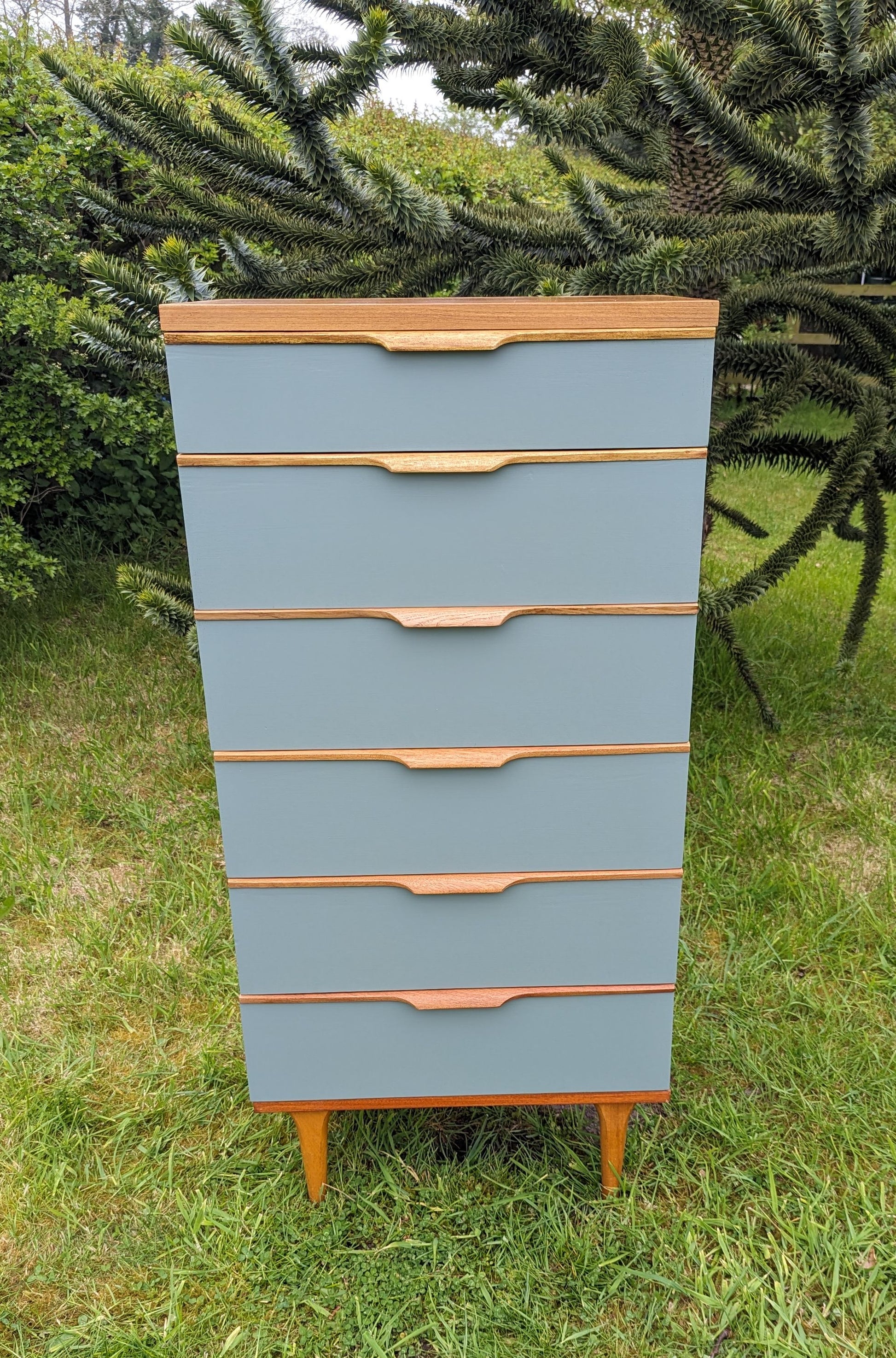 Vintage 1960s Austinsuite Painted & Teak Tall Boy Chest - Free UK Delivery