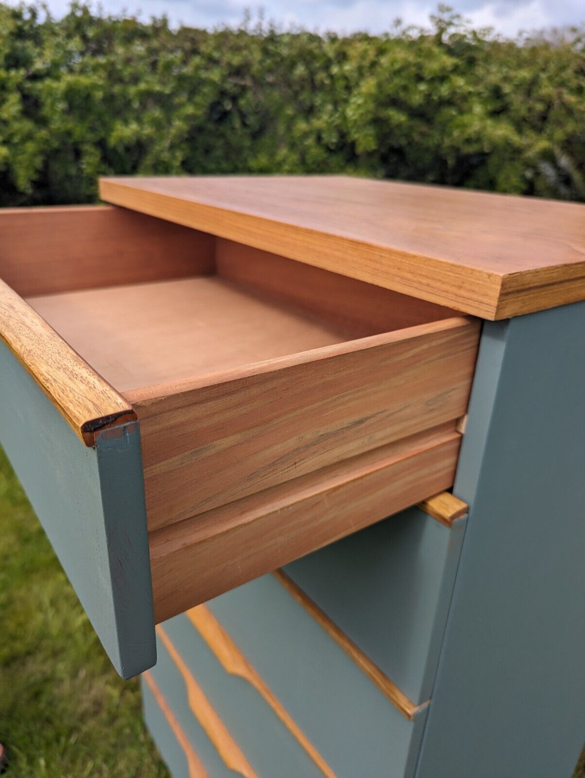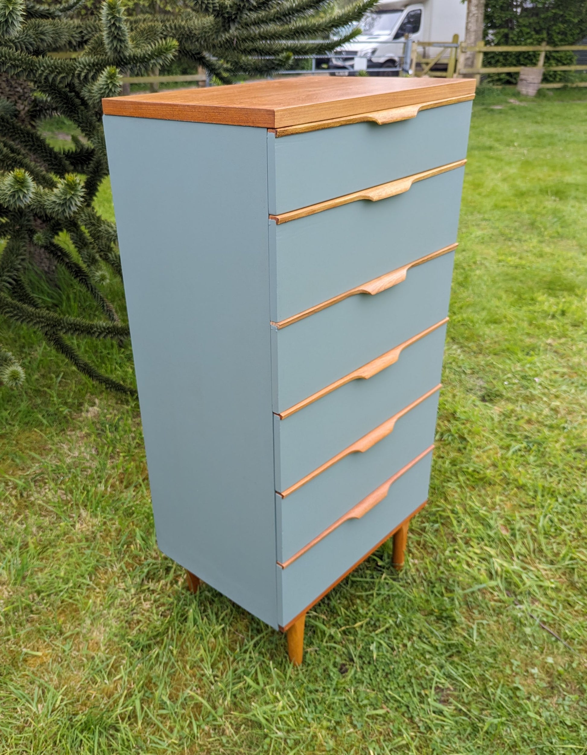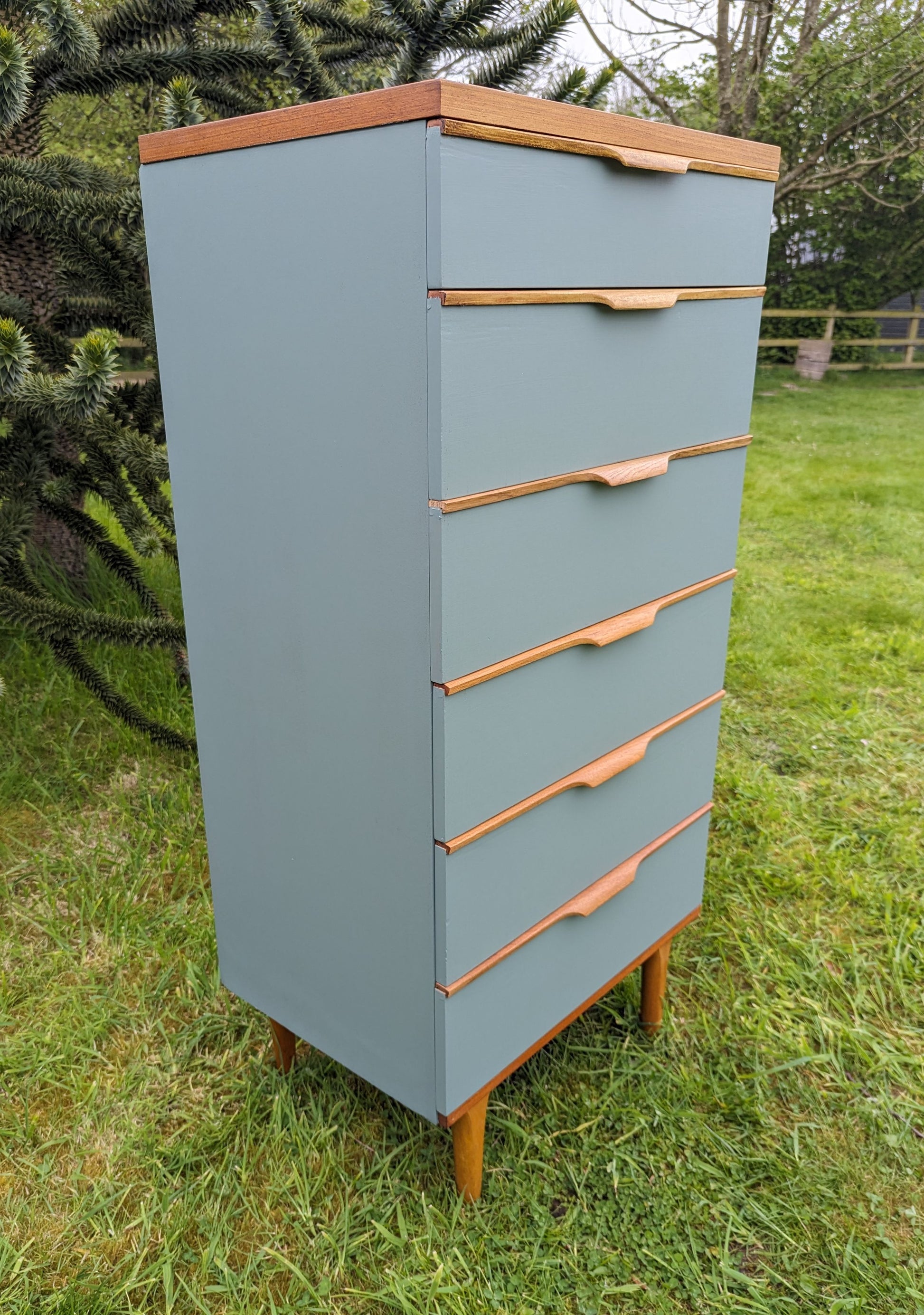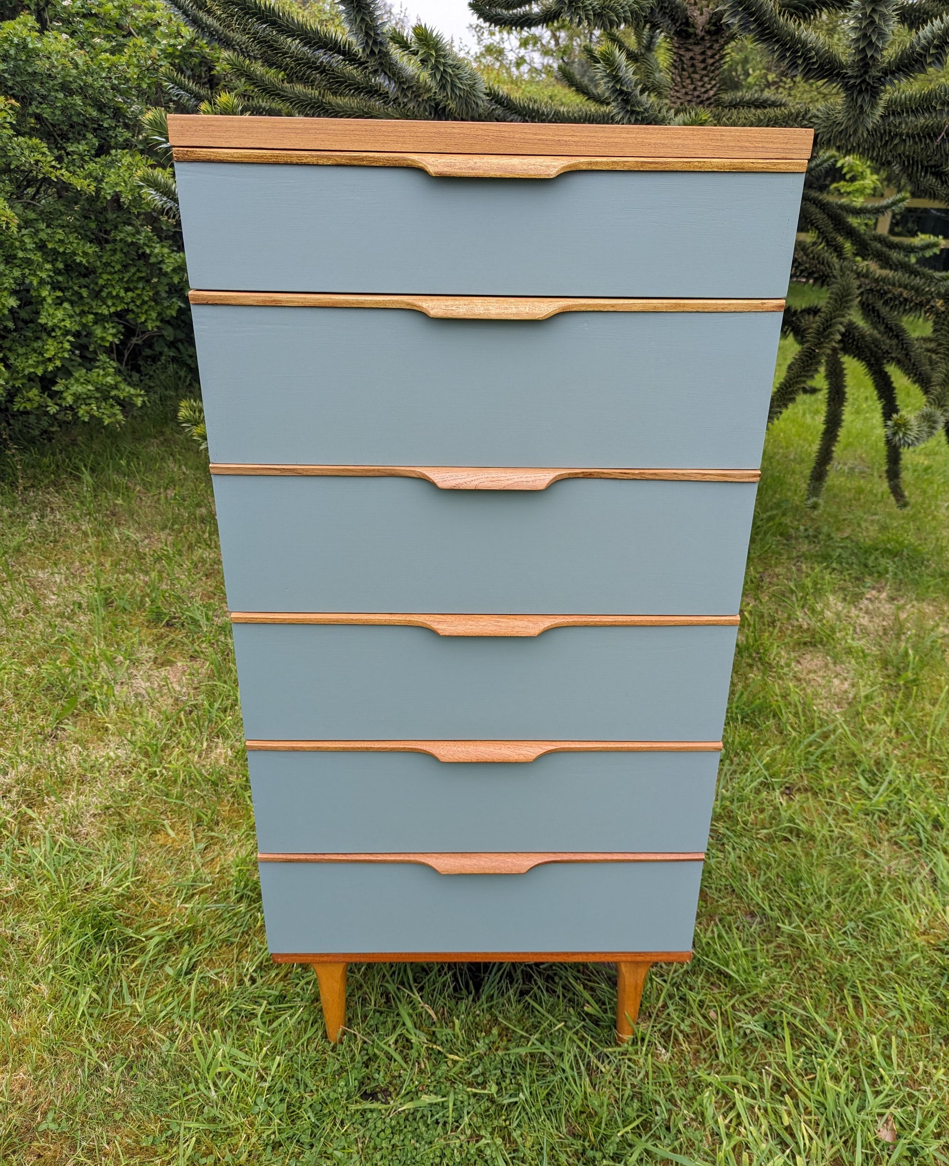 Vintage 1960s Austinsuite Painted & Teak Tall Boy Chest - Free UK Delivery