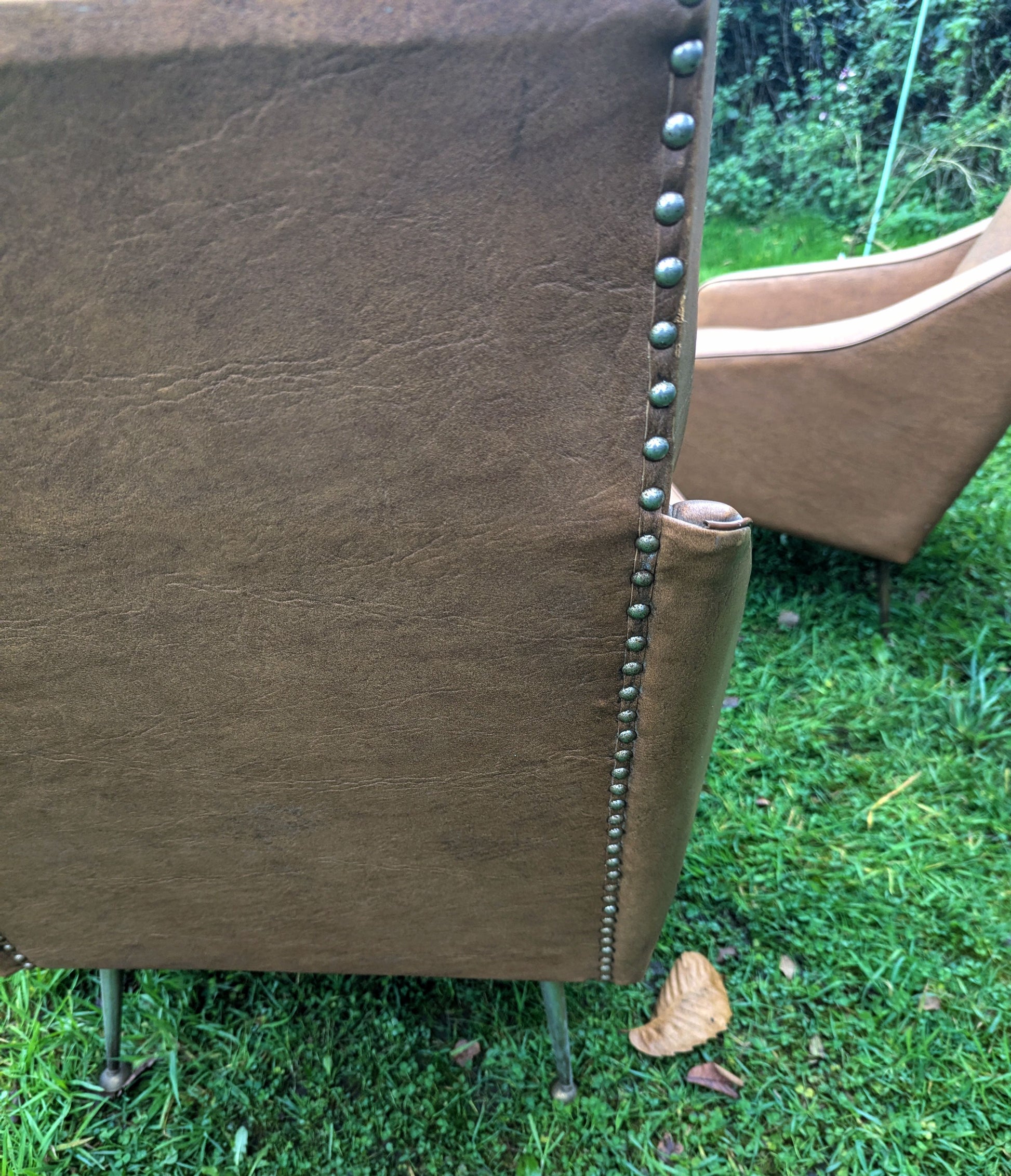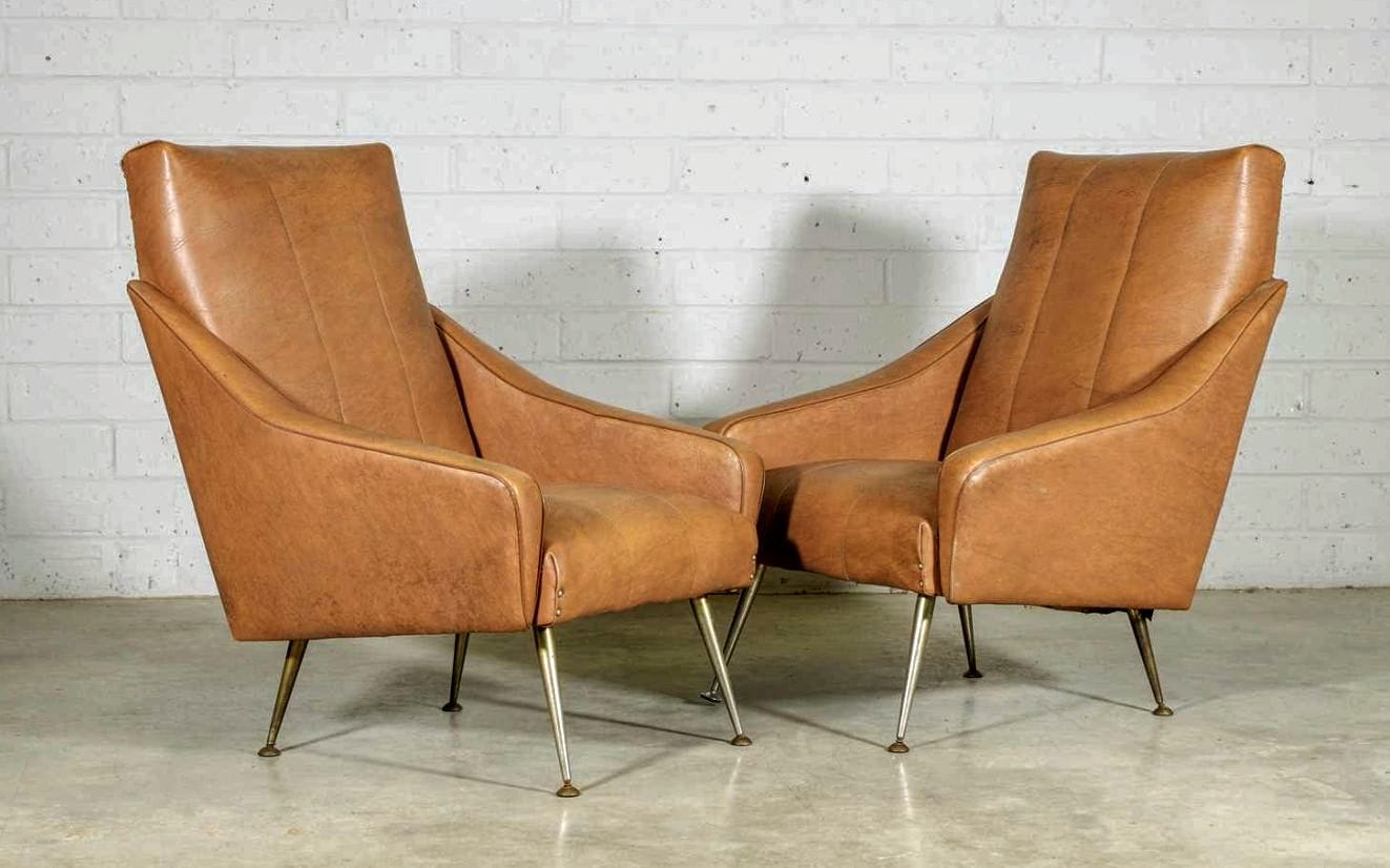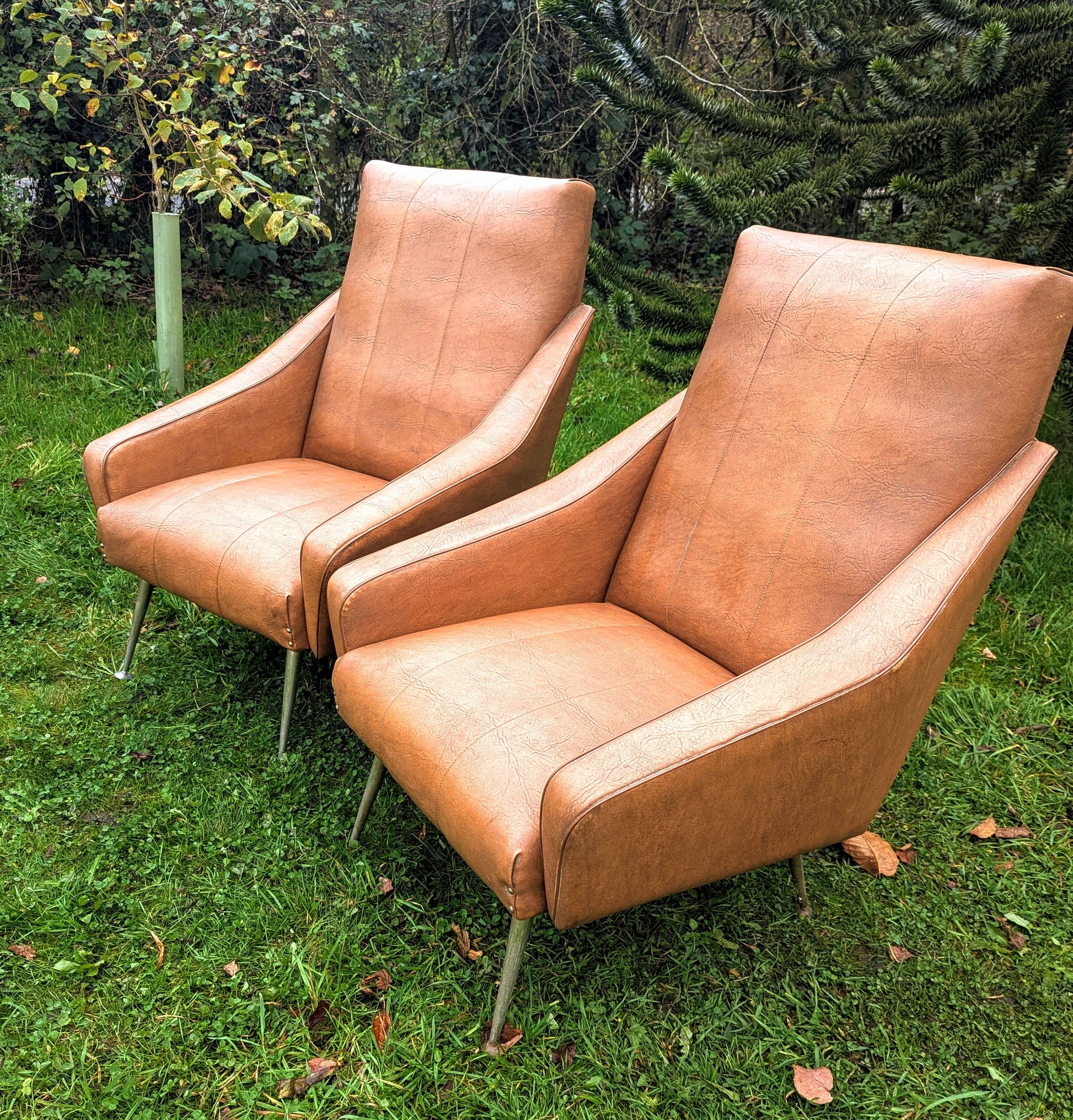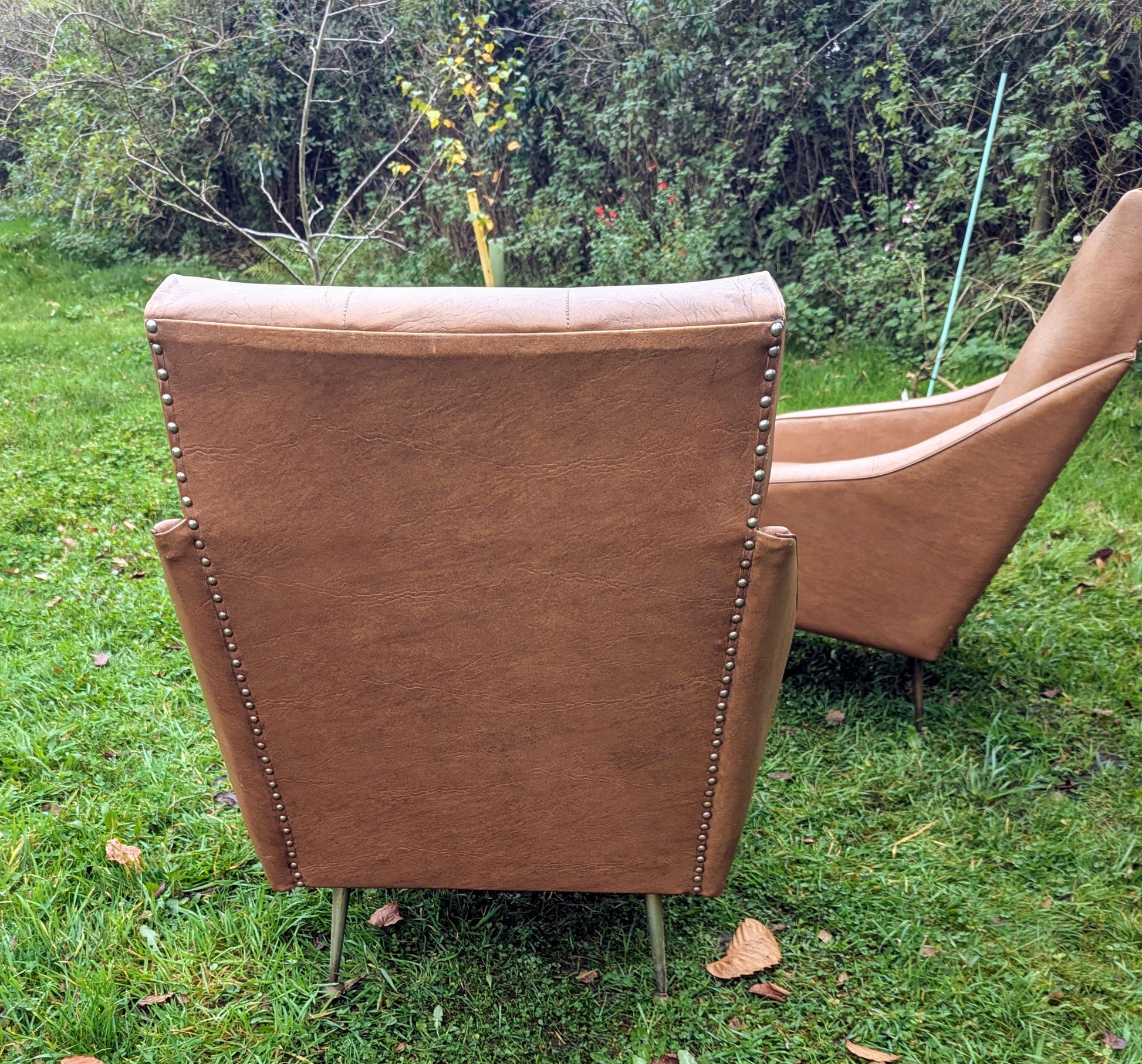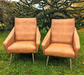 Vintage 1960s Italian Armchairs Tapering Brass Supports - Free UK Delivery
