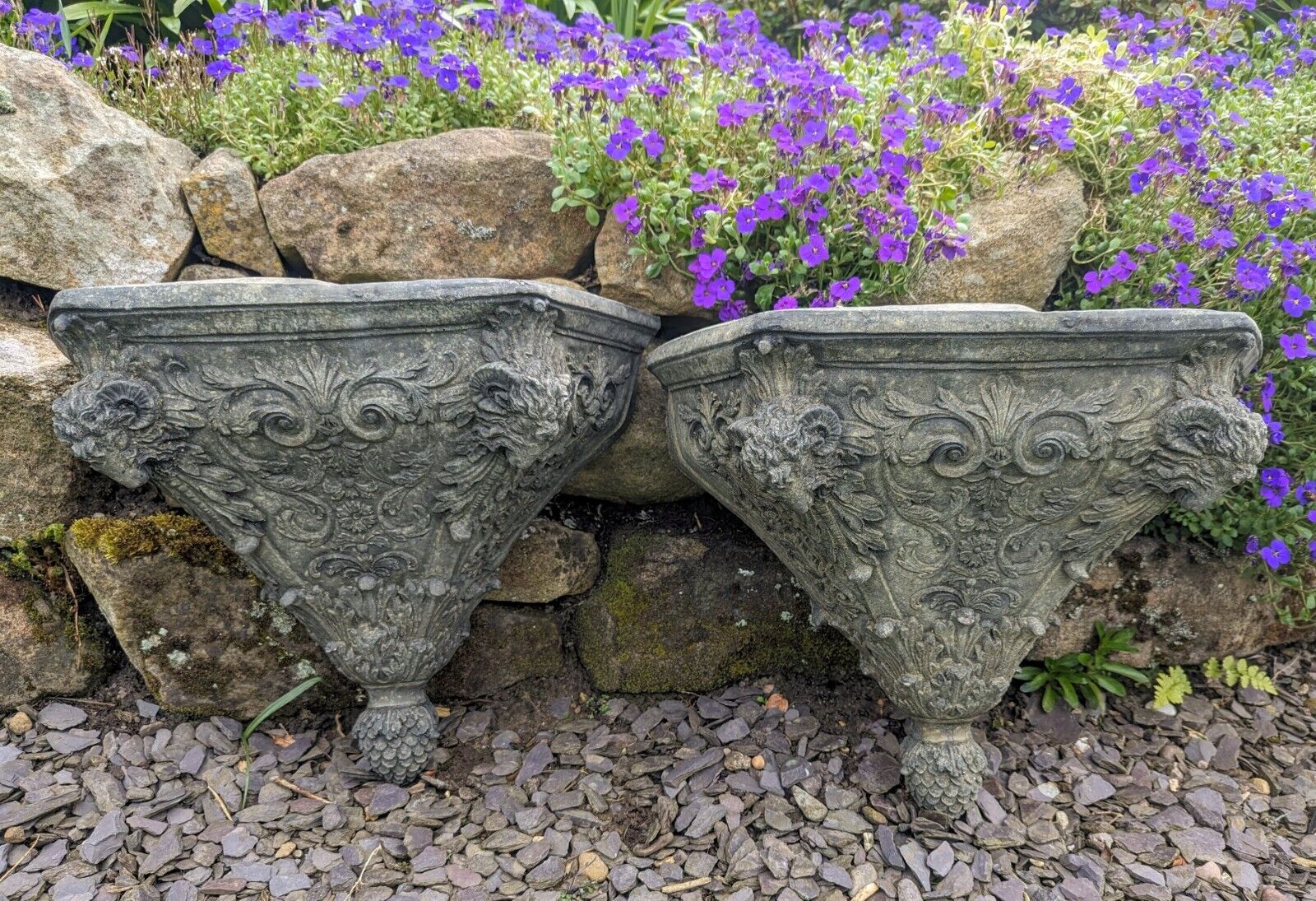 Vintage English Stone Rams Head Wall Planters - Free UK Delivery