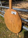 The board is finished with oil, making it easy to clean and maintain. This unique and stylish addition to any kitchen or dining table adds a touch of vintage elegance to your culinary experience, with the added convenience of delivery available for your convenience.