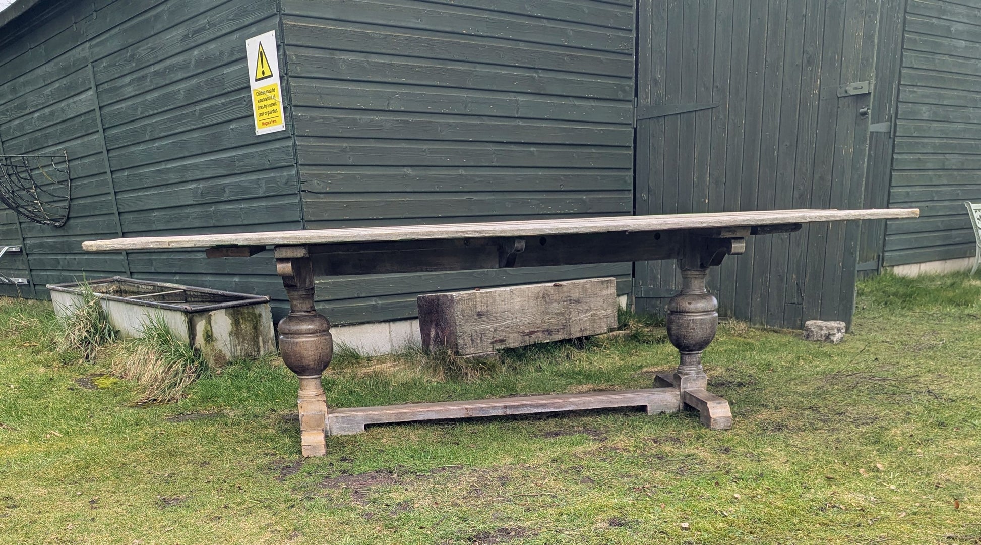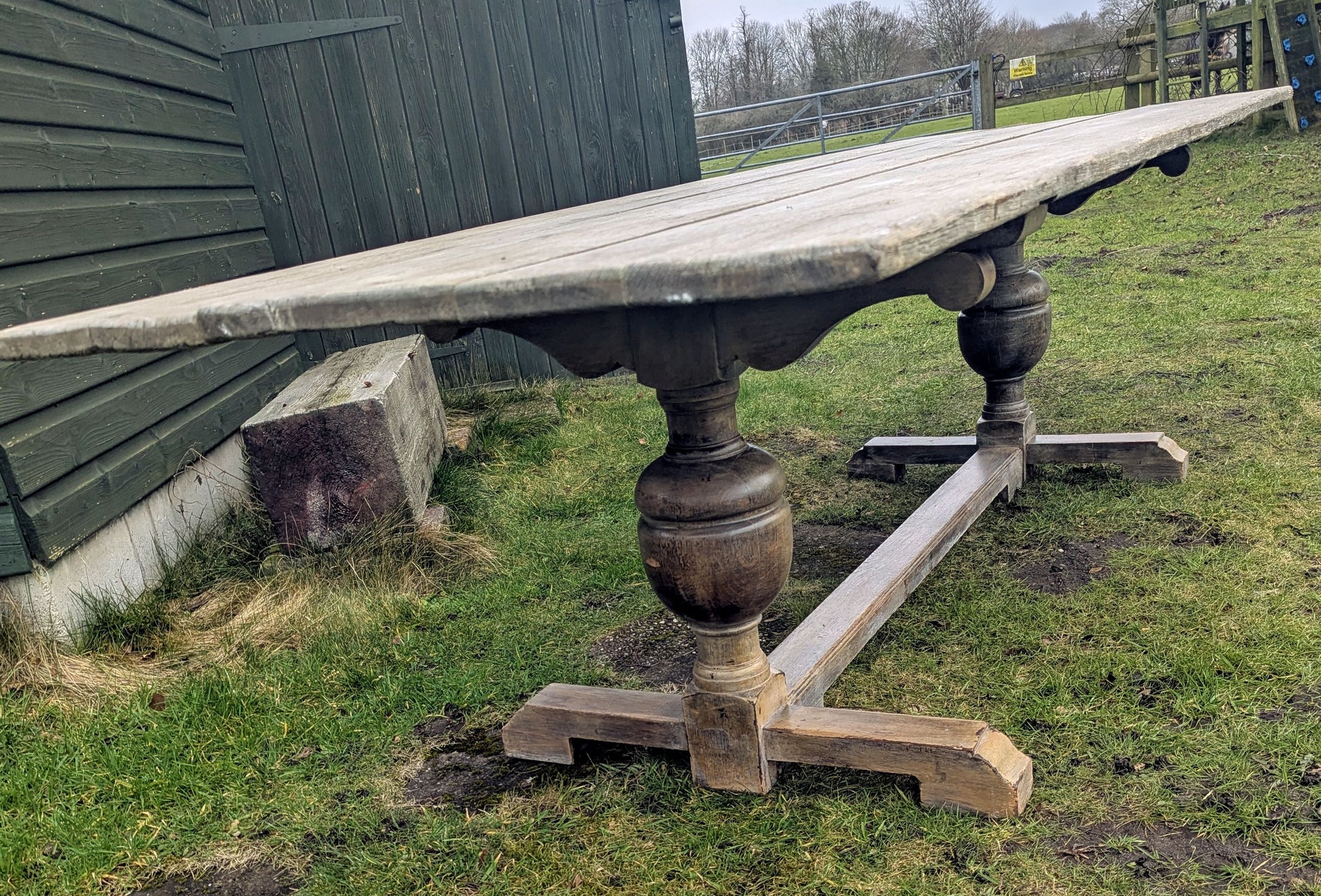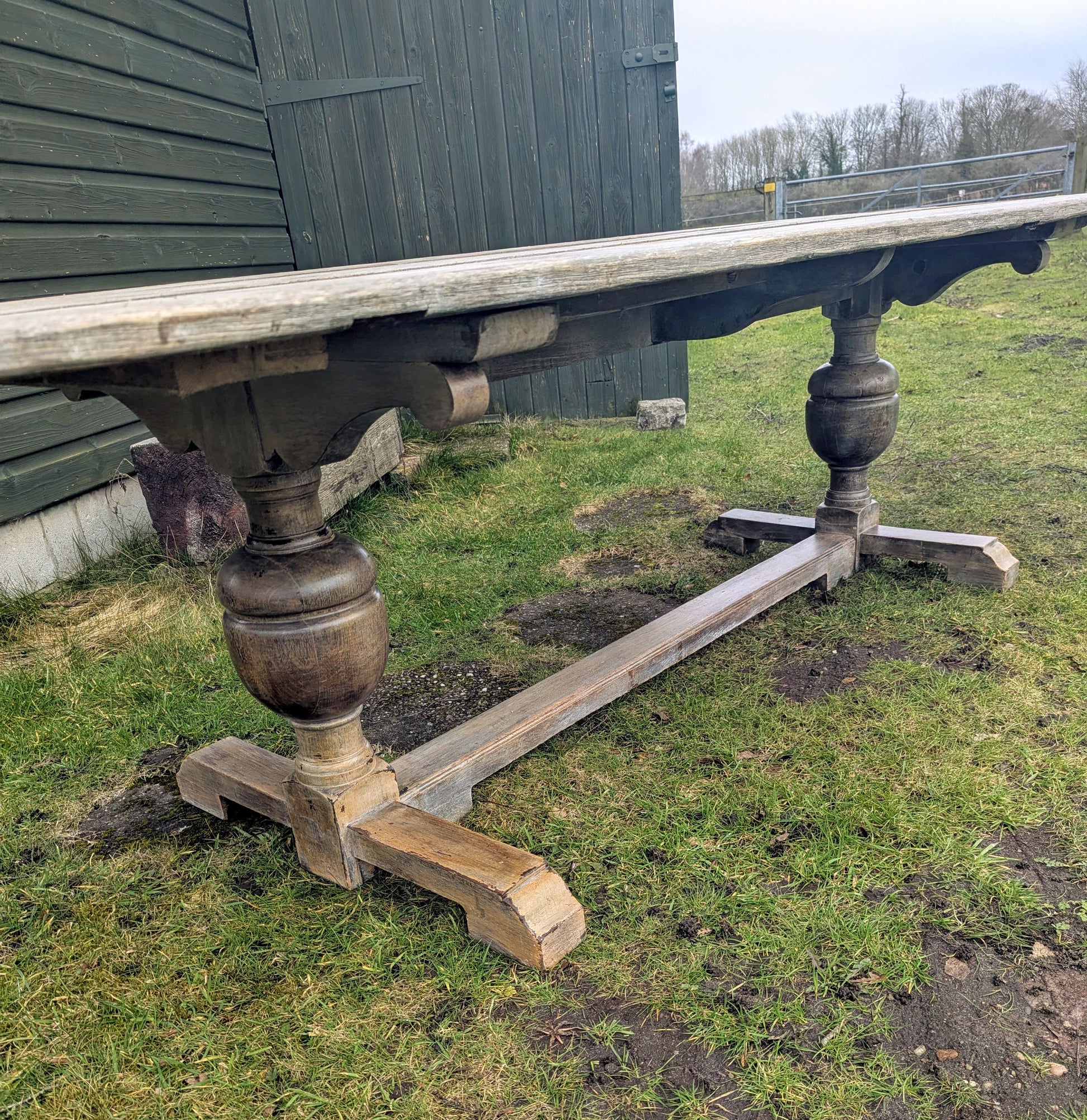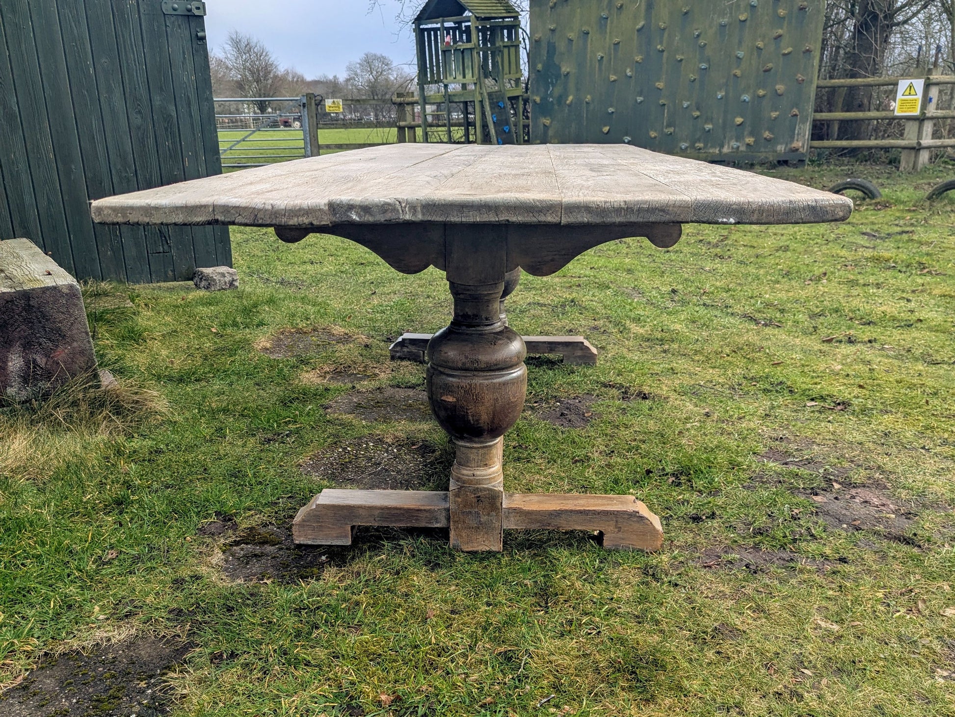 Vintage Extra Large Pine refectory table, shaped legs - Delivery available 0009.