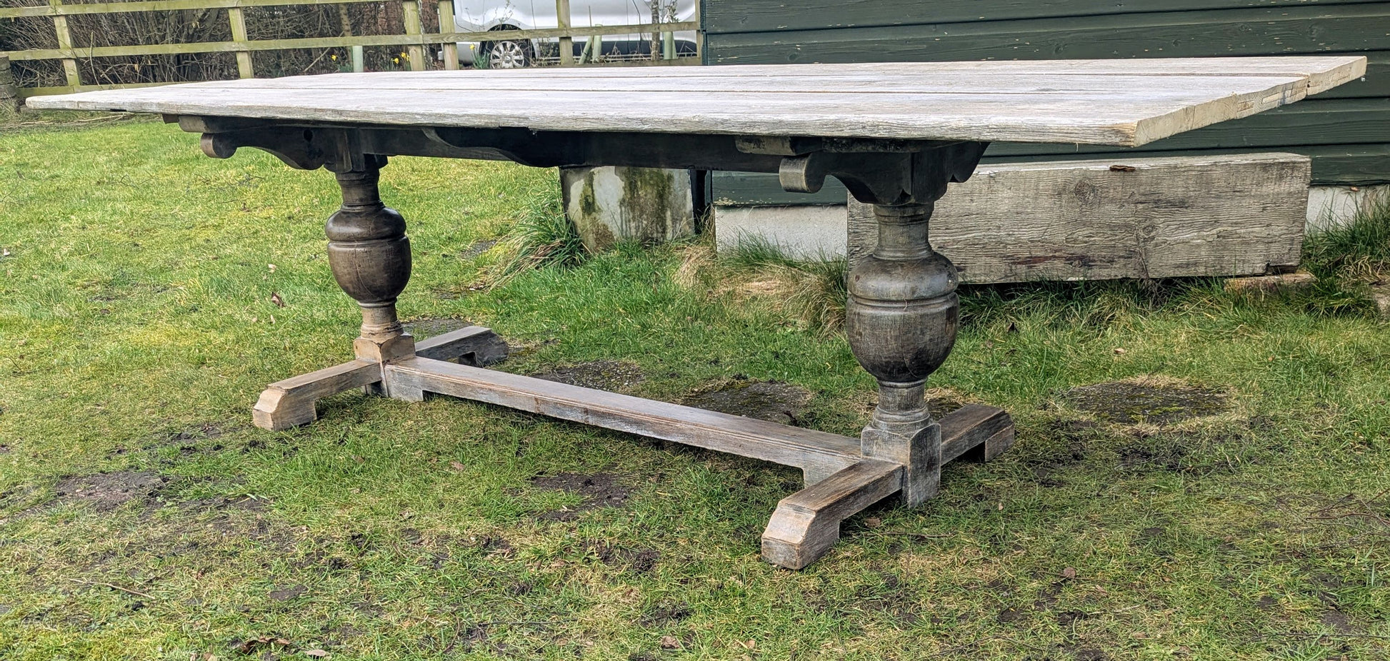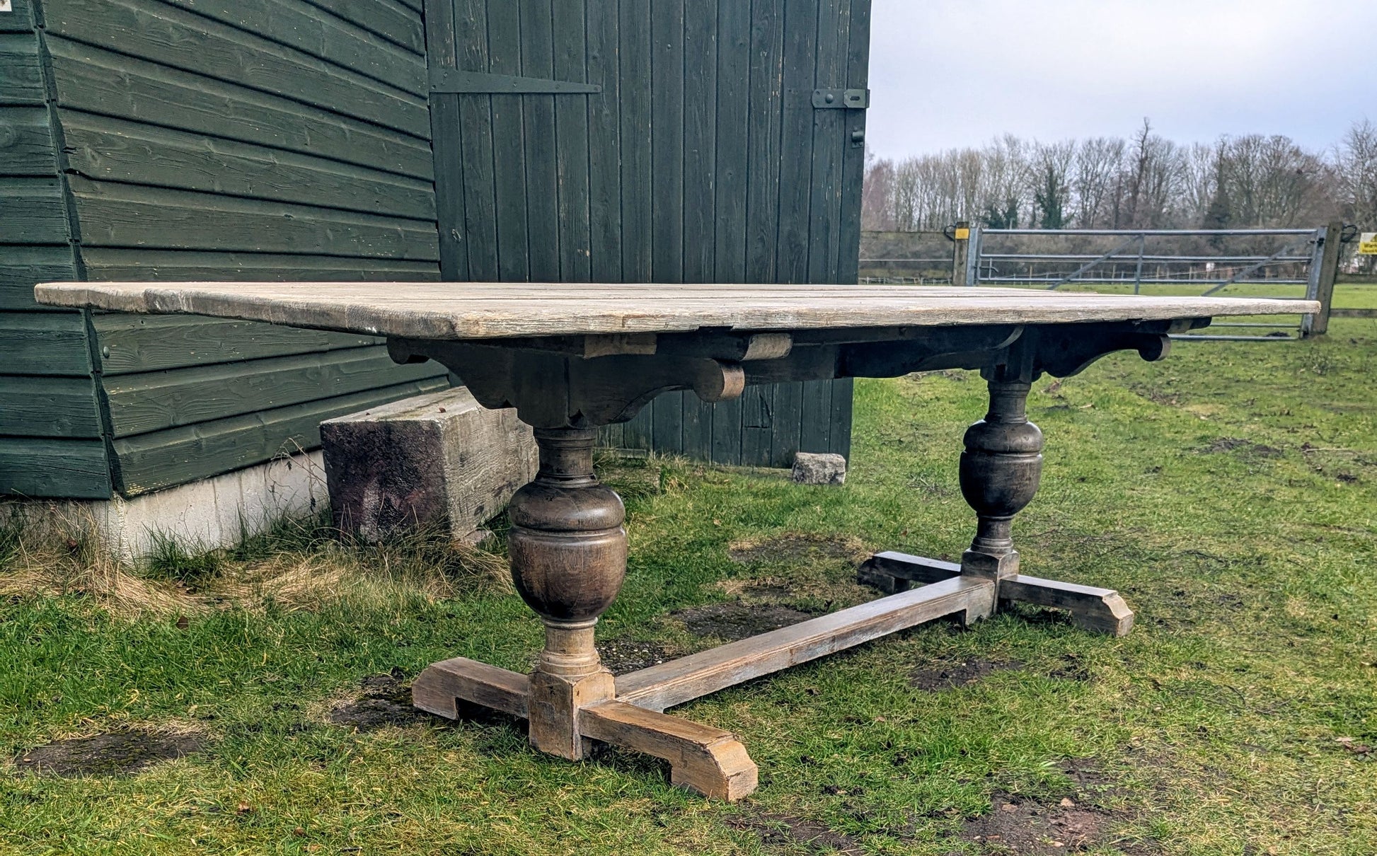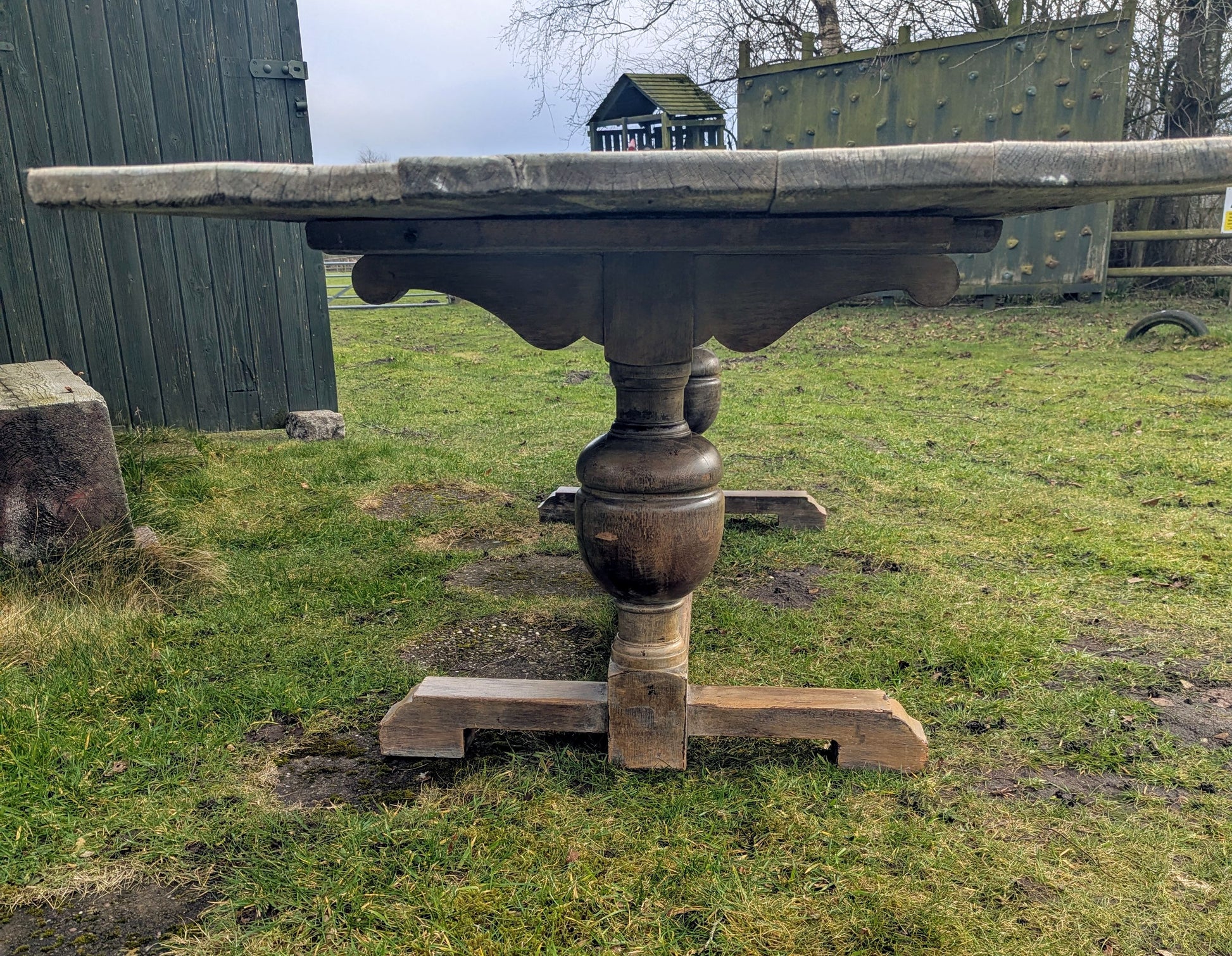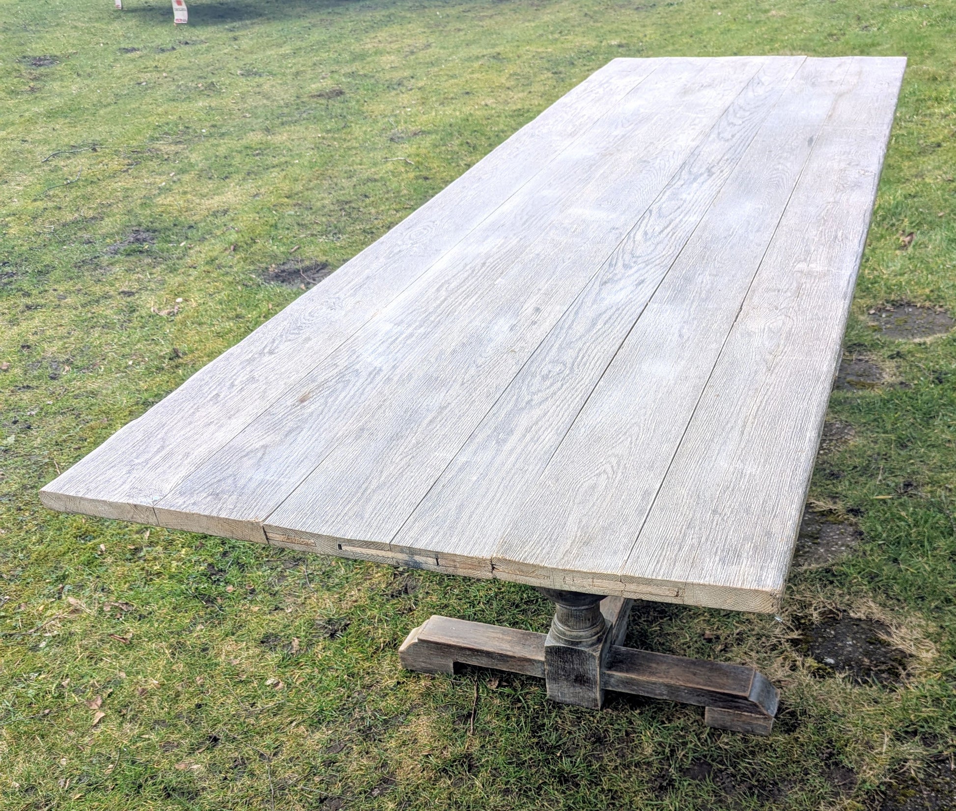 Vintage Extra Large Pine refectory table, shaped legs - Delivery available 0009.
