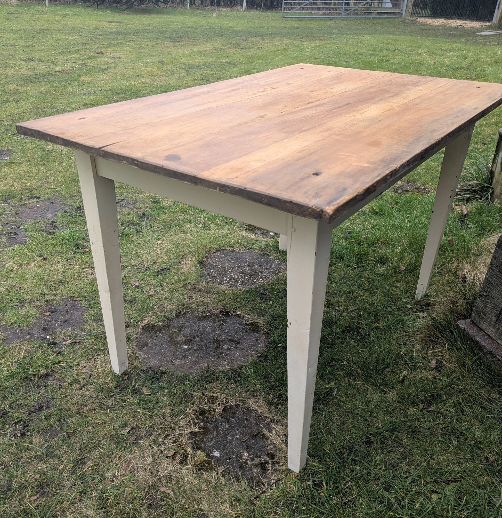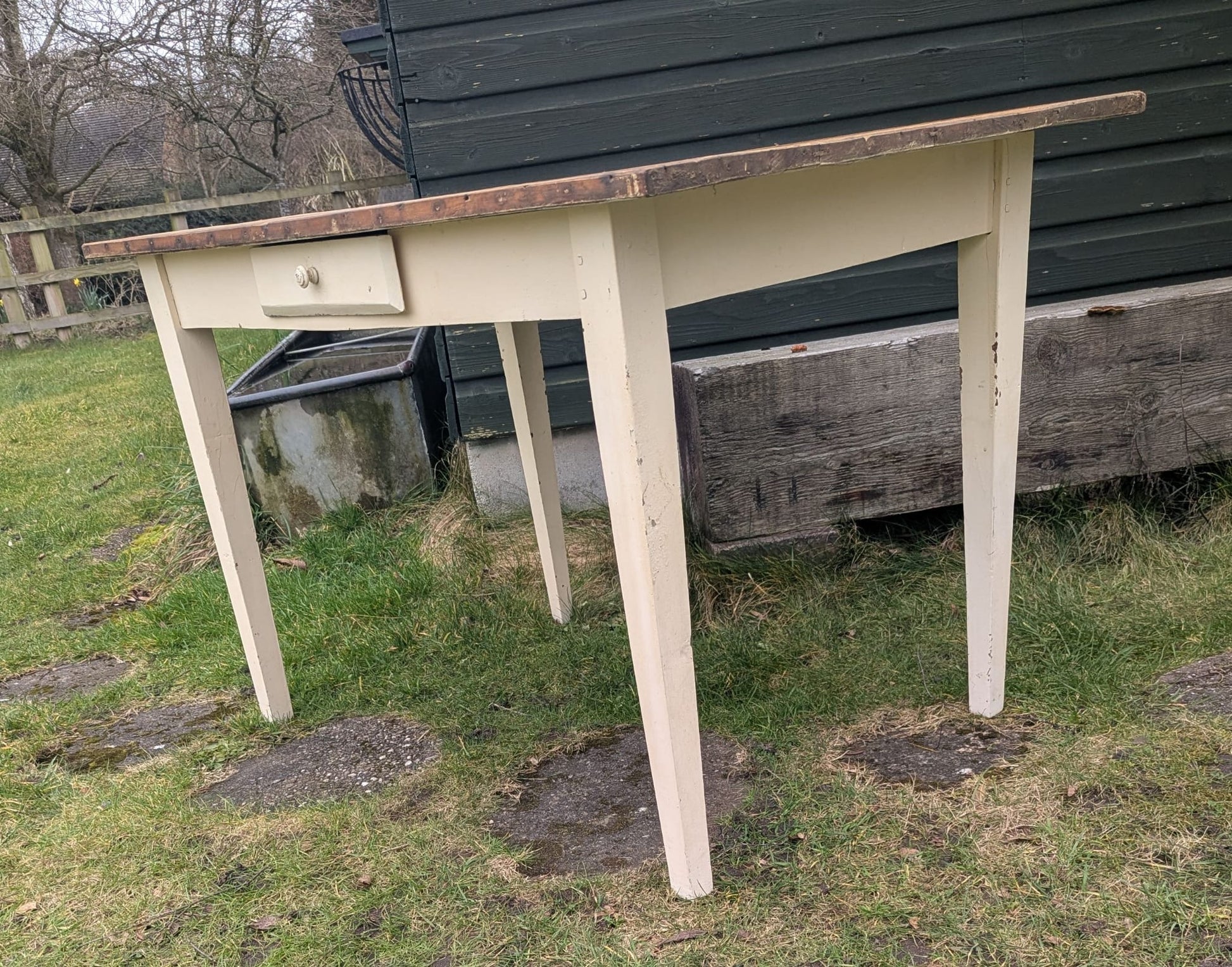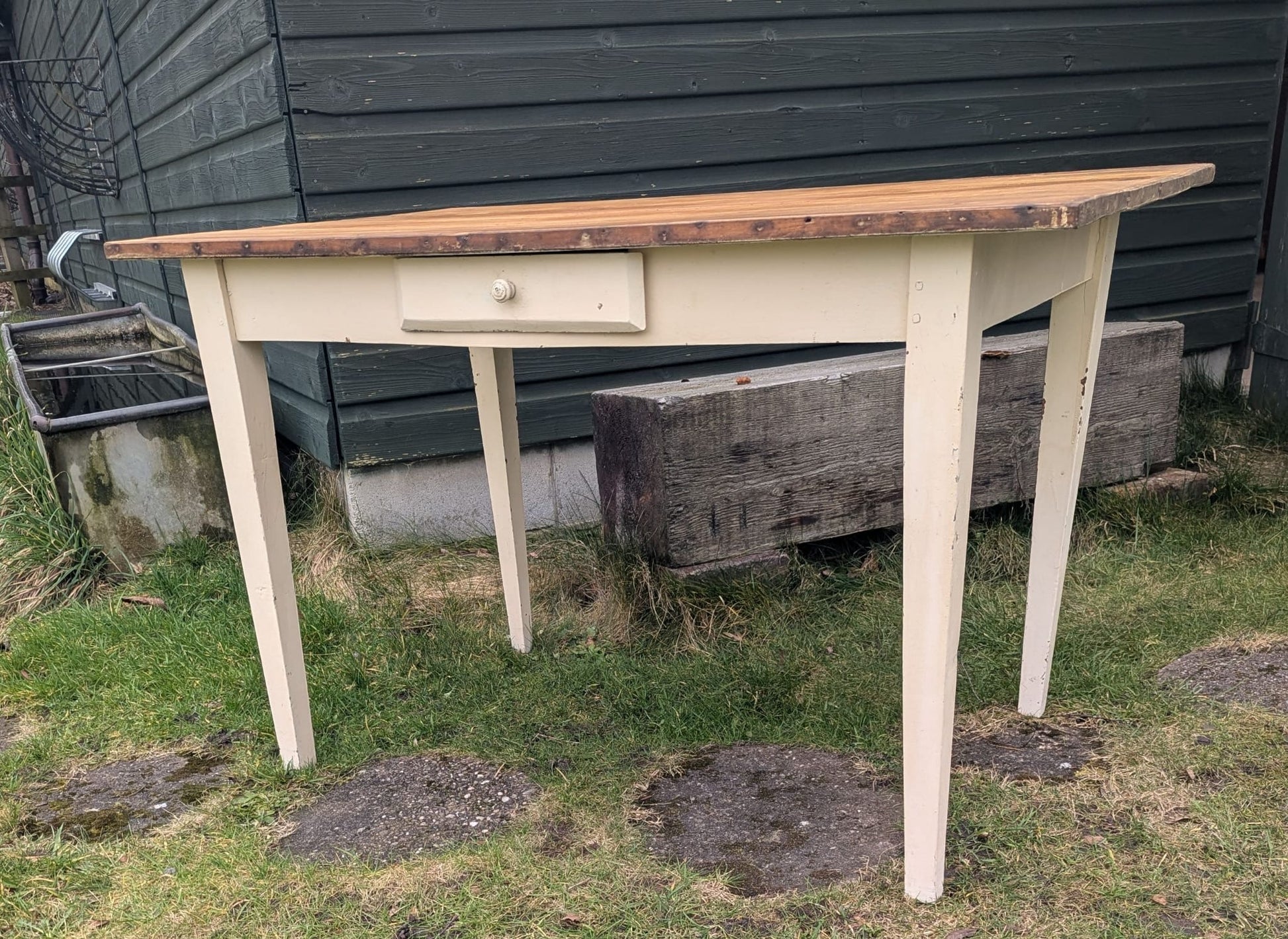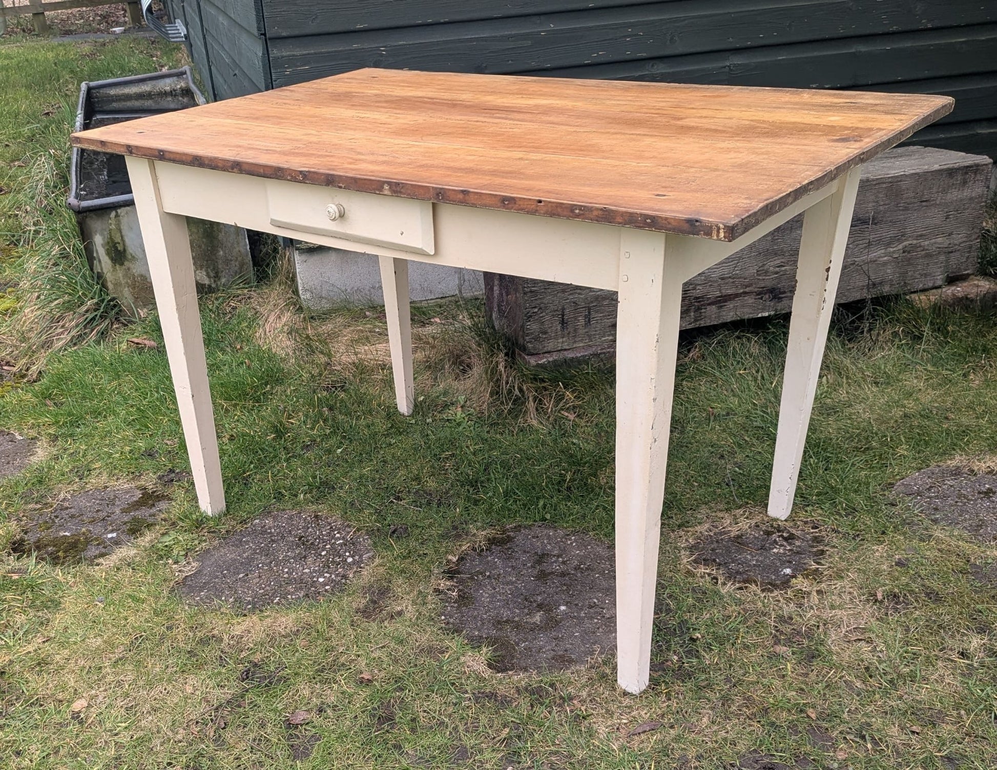 Vintage French pine farmhouse table with Drawer - Delivery available 0262