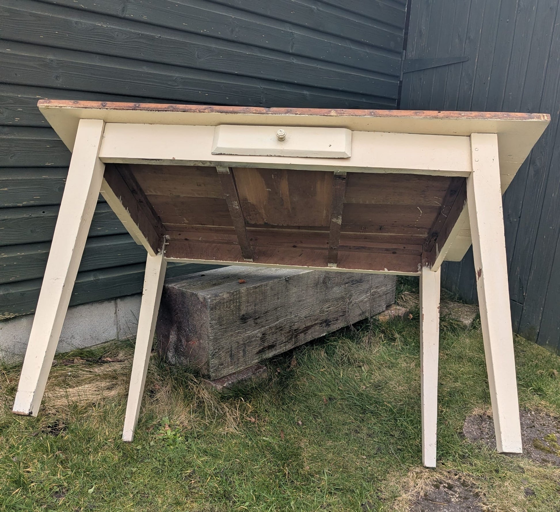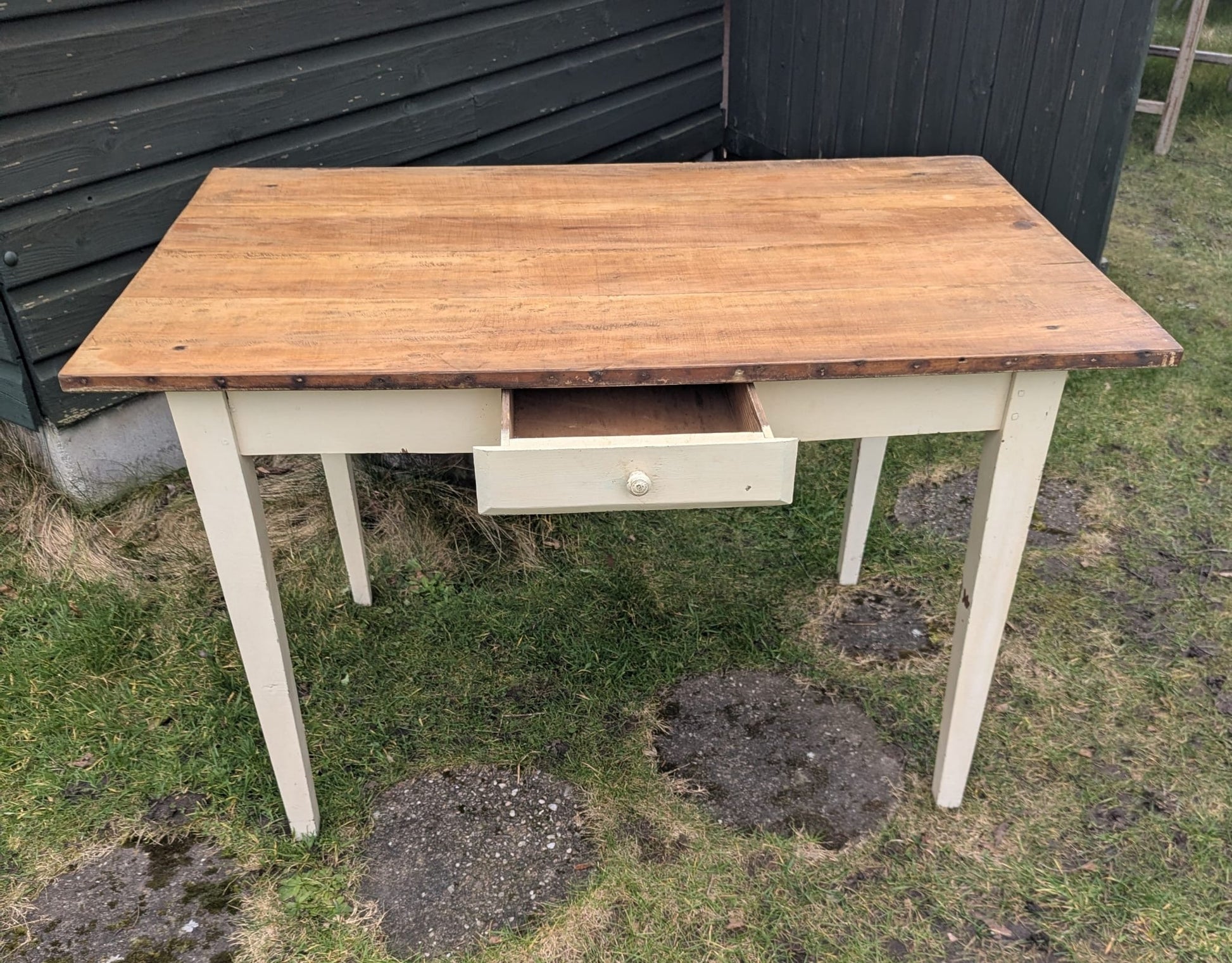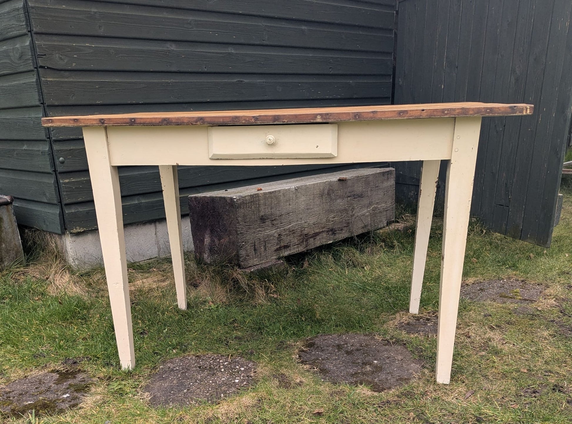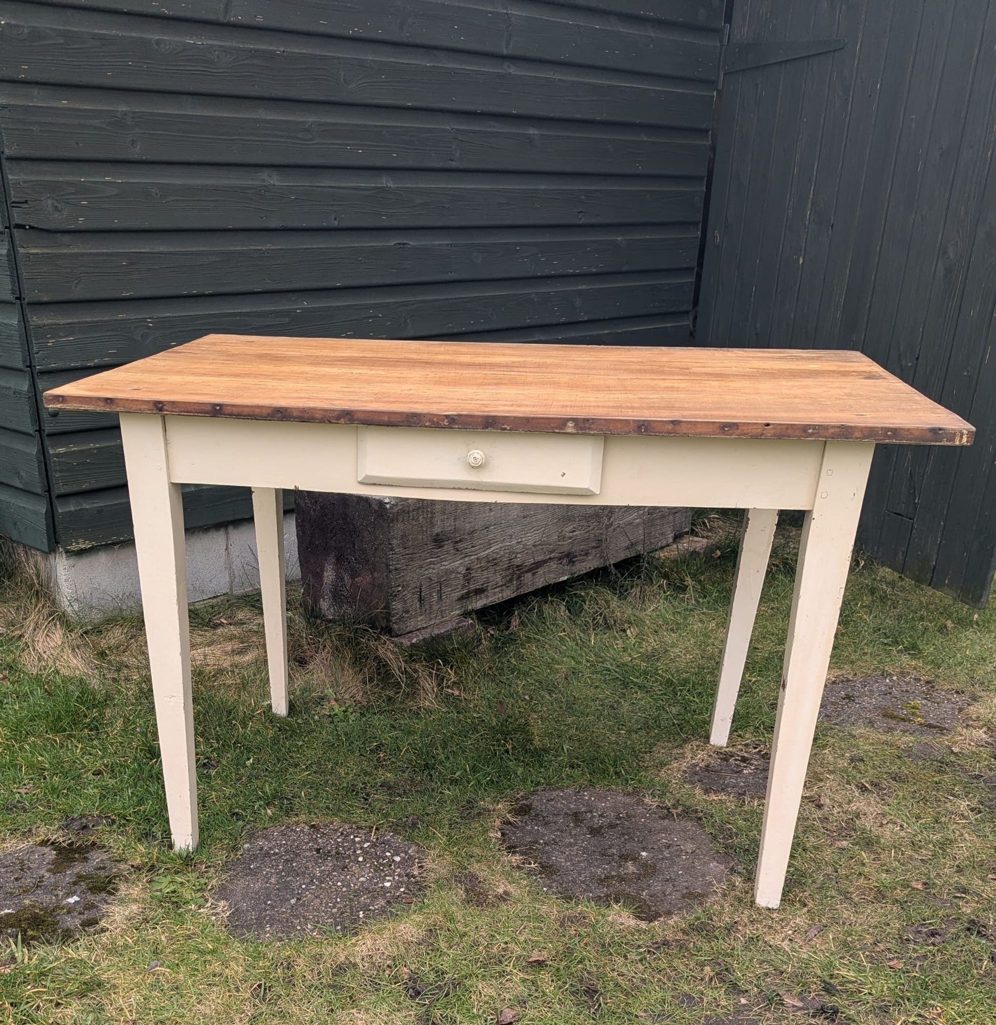Vintage French pine farmhouse table with Drawer - Delivery available 0262