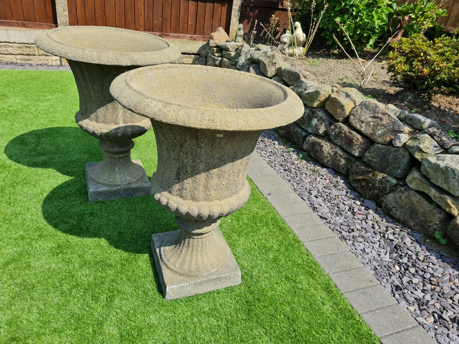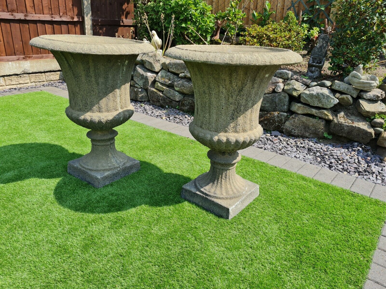 Vintage Green Heathfield English Stone Urns/Planters - Free UK Delivery