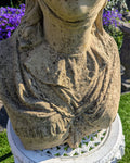 Transform your indoor or outdoor space with the exquisite beauty of this vintage Hera Greek Goddess of Marriage stone bust. Meticulously crafted with intricate details, this medium-sized statue exudes an abstract style that captures the essence of this powerful figure. Made from premium stone, this bust is built to last and will add a touch of ancient mythology to your surroundings.The statue is beautifully coloured with a green hue that complements the Greek pattern and people theme. It is an ideal addition to your garden, patio or living room. This unique piece is a must-have for anyone who appreciates ancient cultures and their deities. Order now and enjoy the elegance of this handcrafted statue delivered straight to your doorstep. Height: 60cm Width : 36 cm Depth: 22 cm Weight: 50kg |