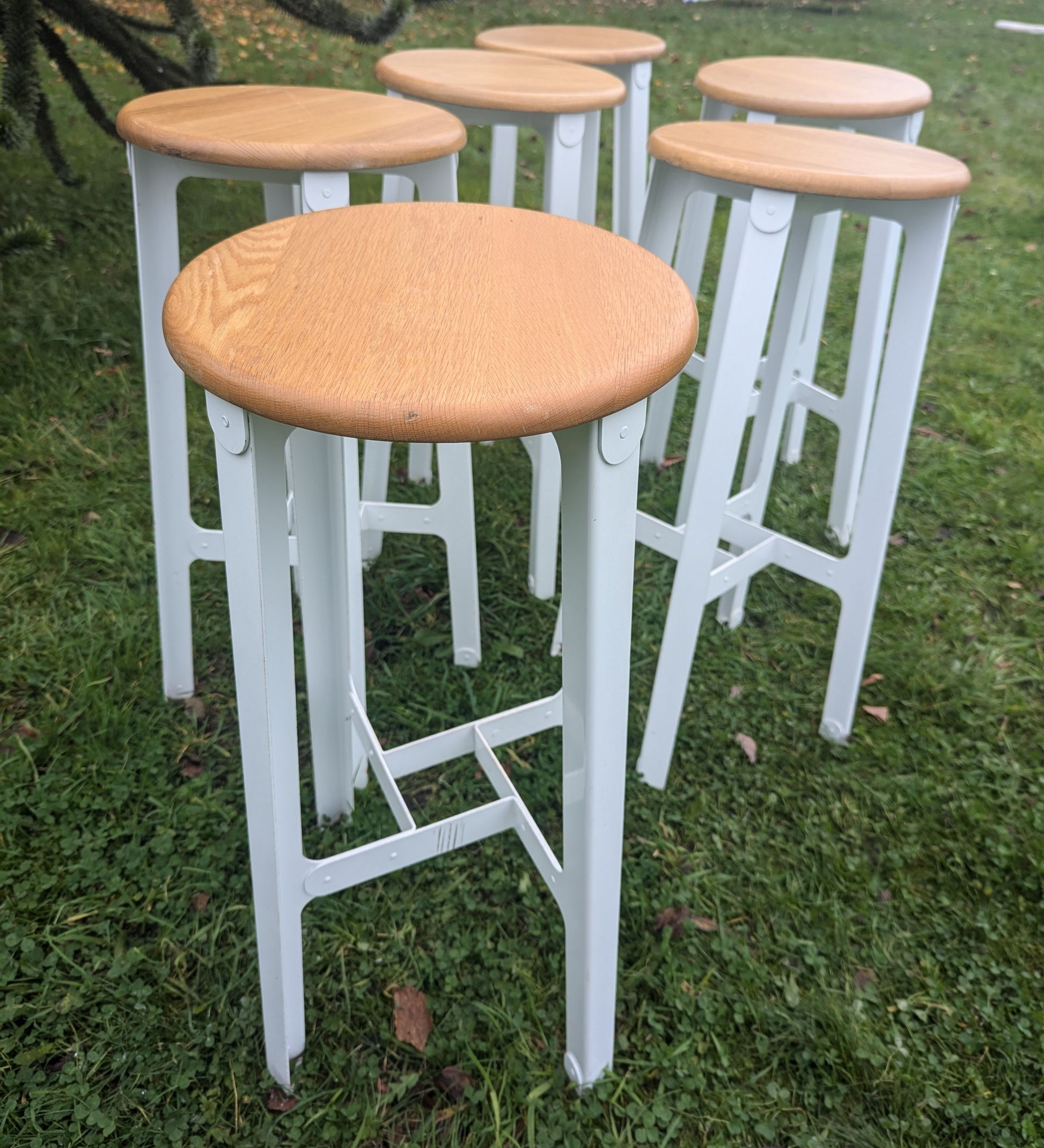 Add a touch of vintage charm to your home with these unique Herman Miller Construct' bar stools.