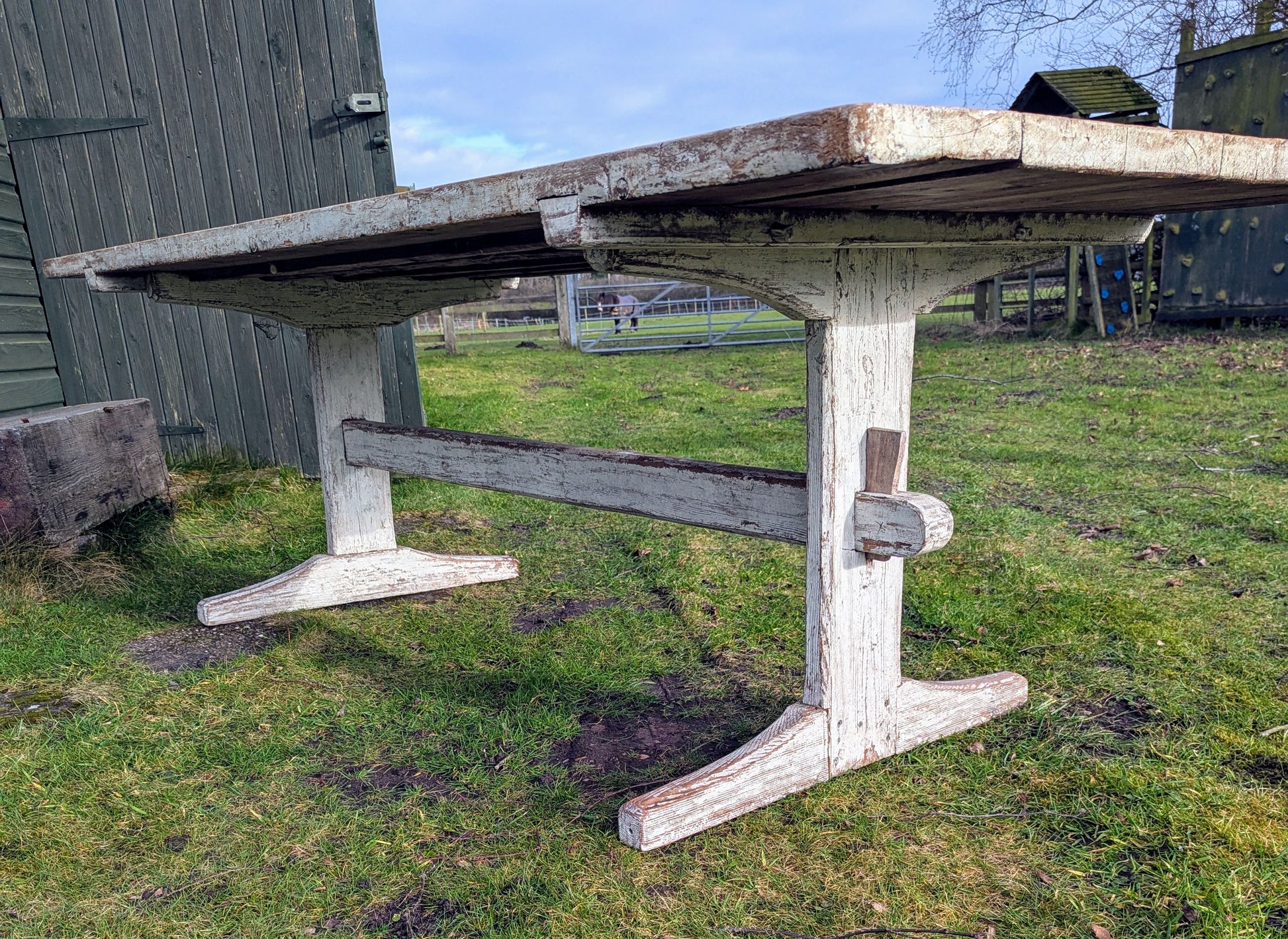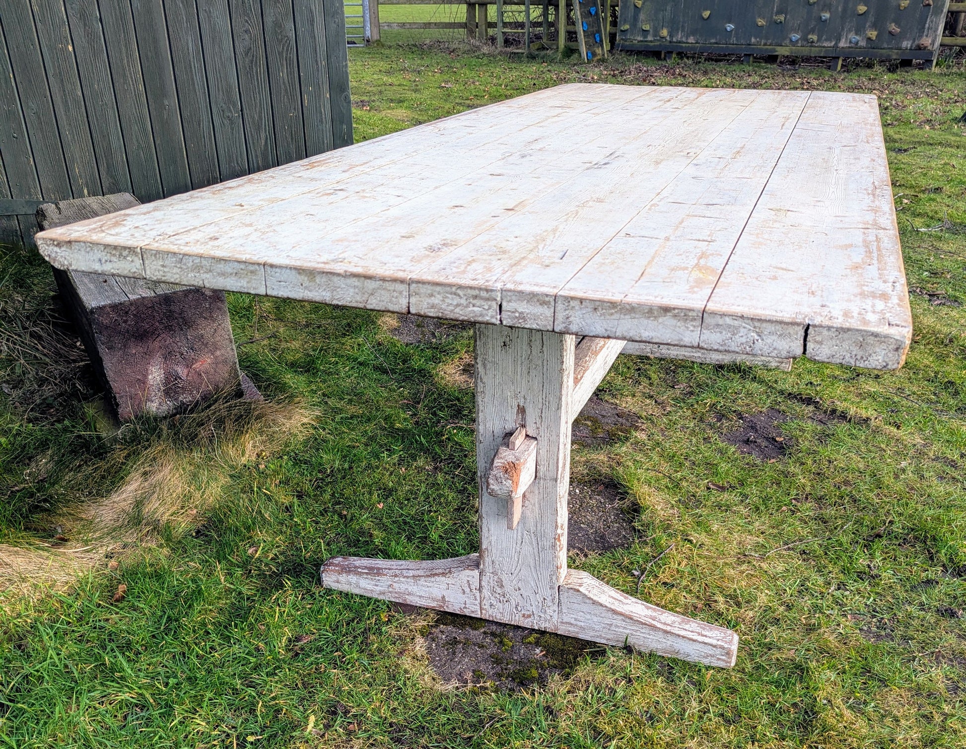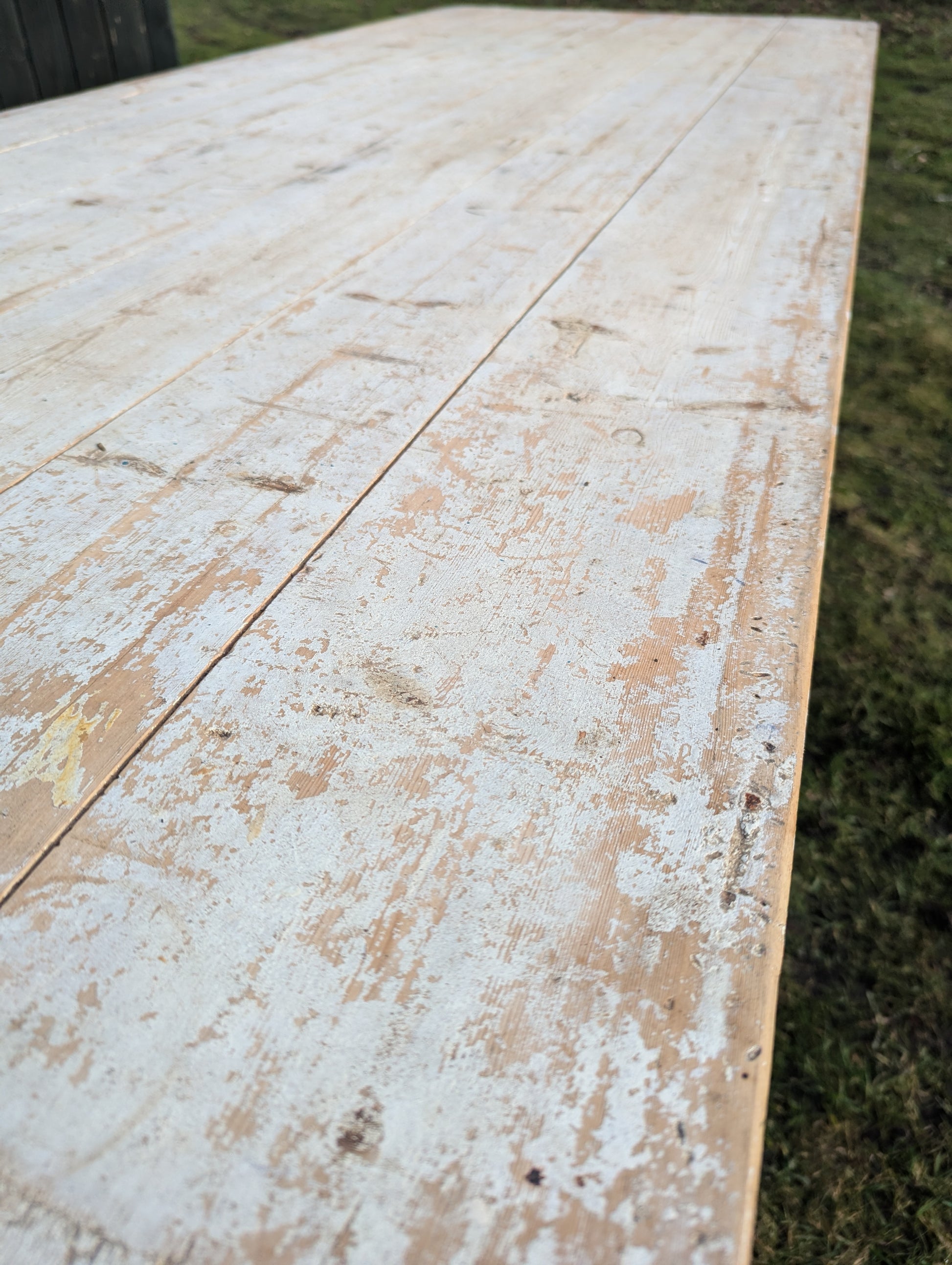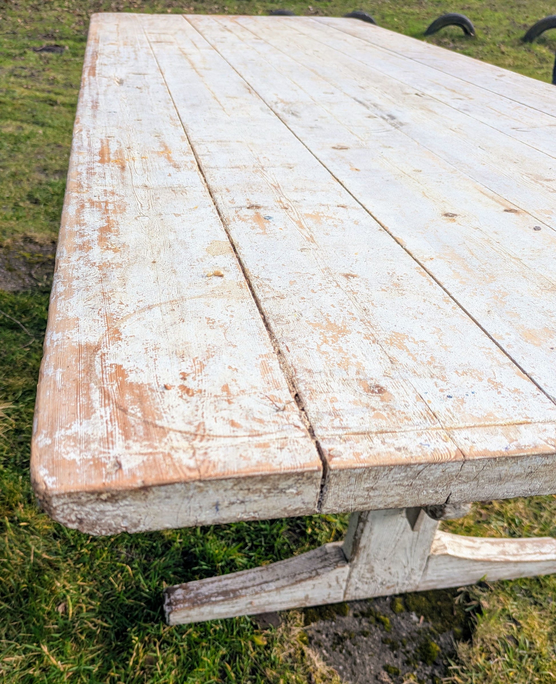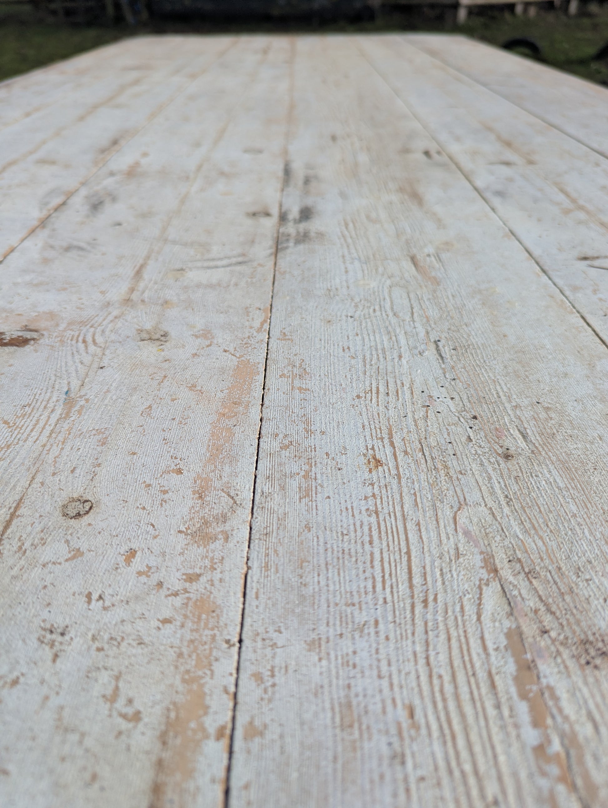 Vintage Large Pine refectory table 6 plank top shaped legs - Delivery available