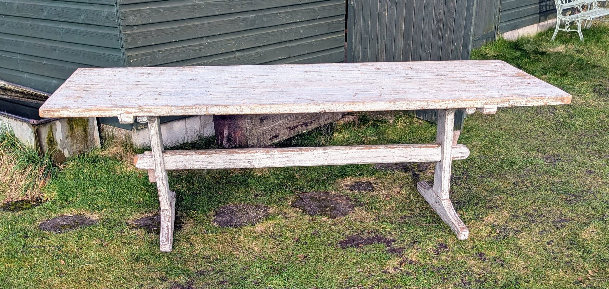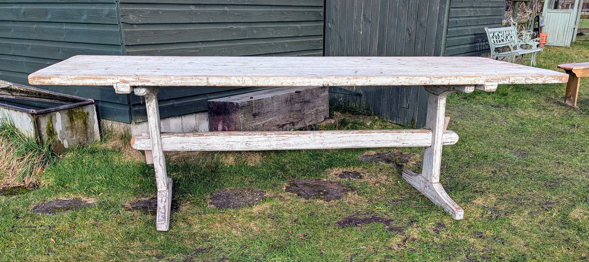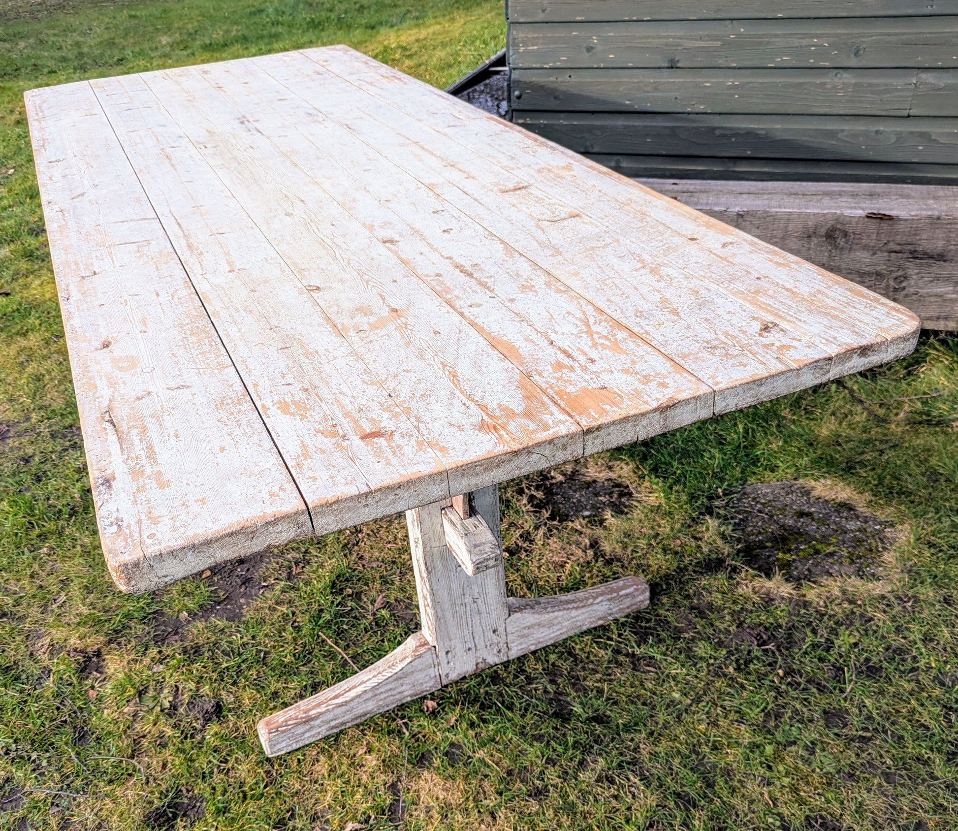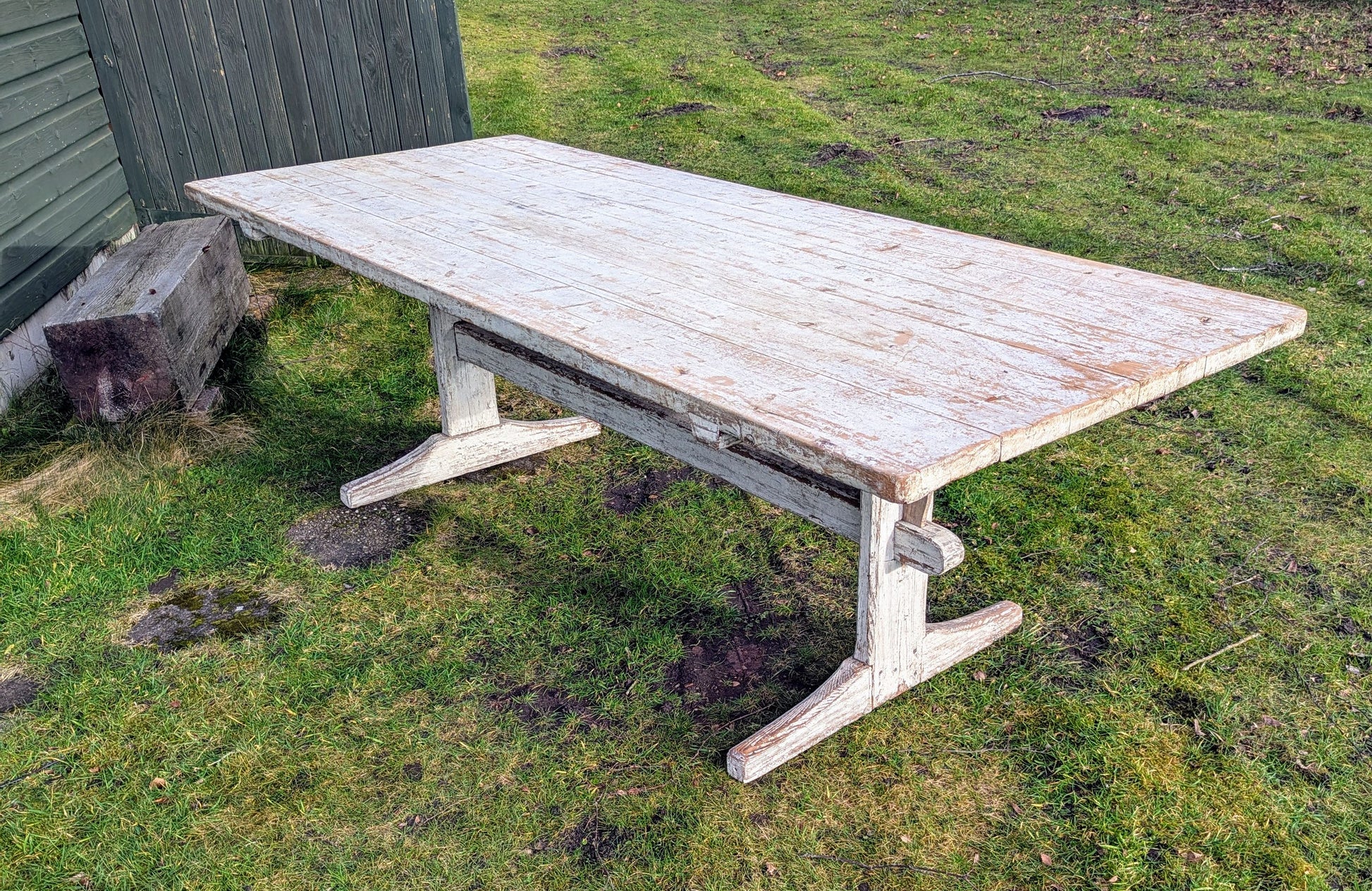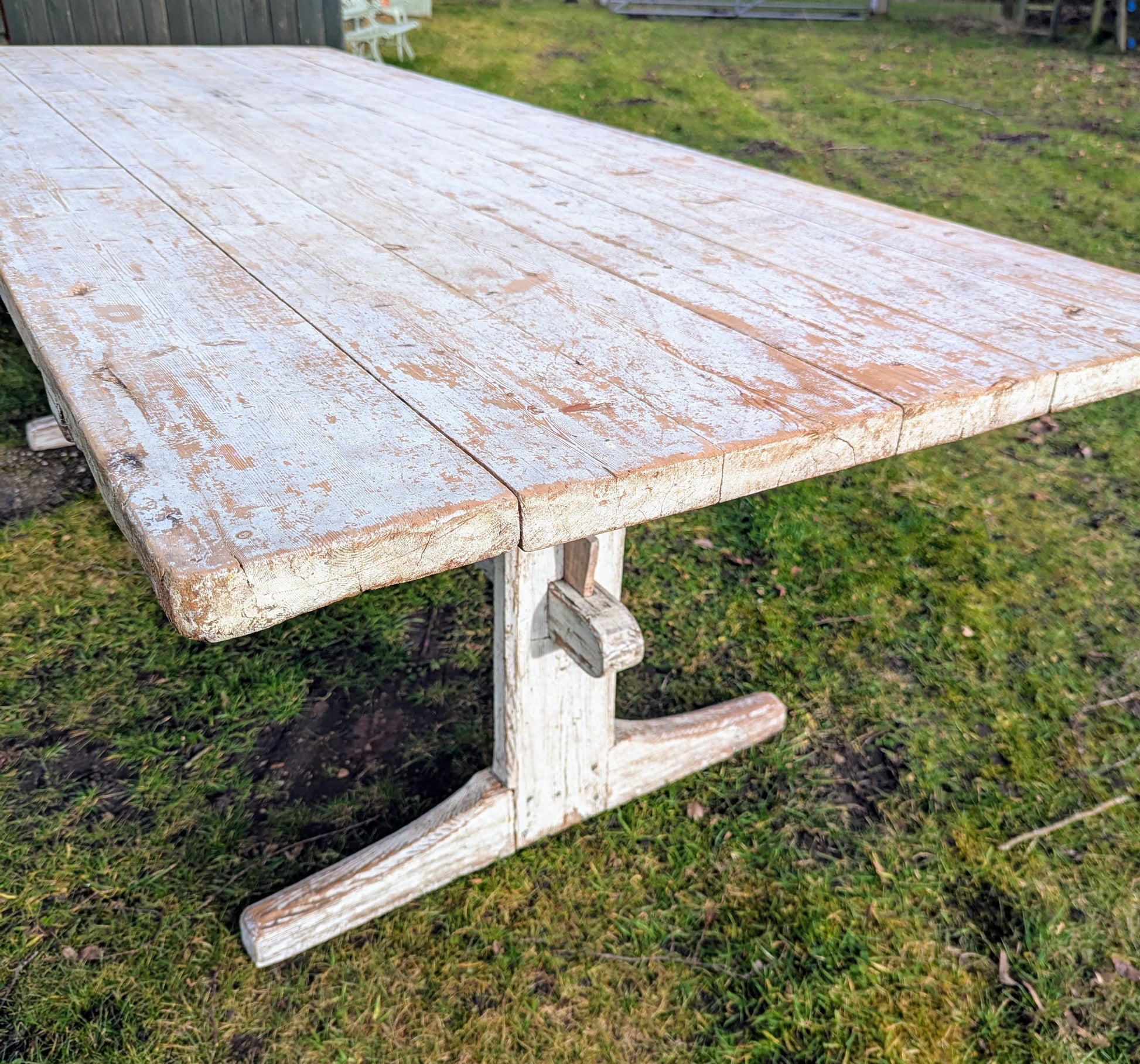 Vintage Large Pine refectory table 6 plank top shaped legs - Delivery available