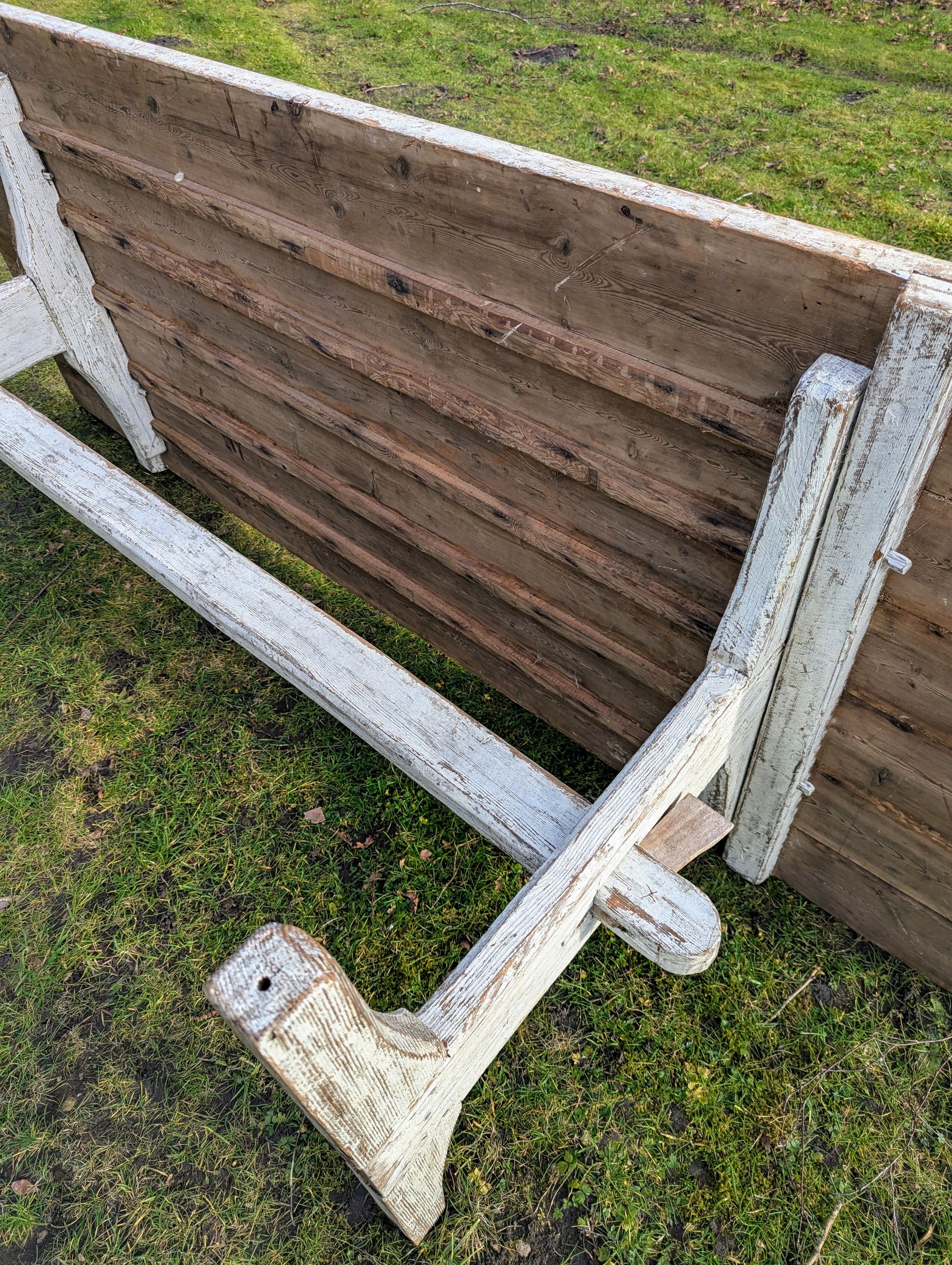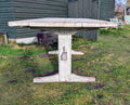 With a rectangular shape, and natural patina 6 plank top , this antique piece exudes a shabby chic charm. Manufactured in France in the 1930s, this original table from the French Home brand is perfect for both indoor and outdoor use.