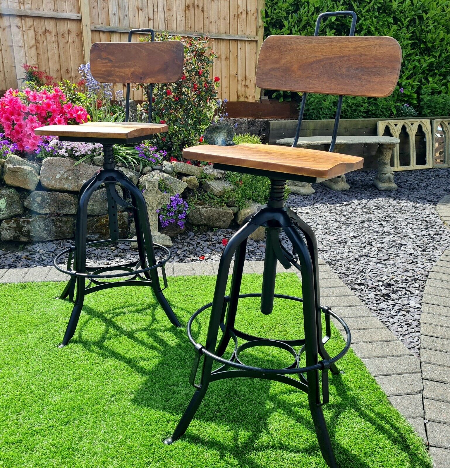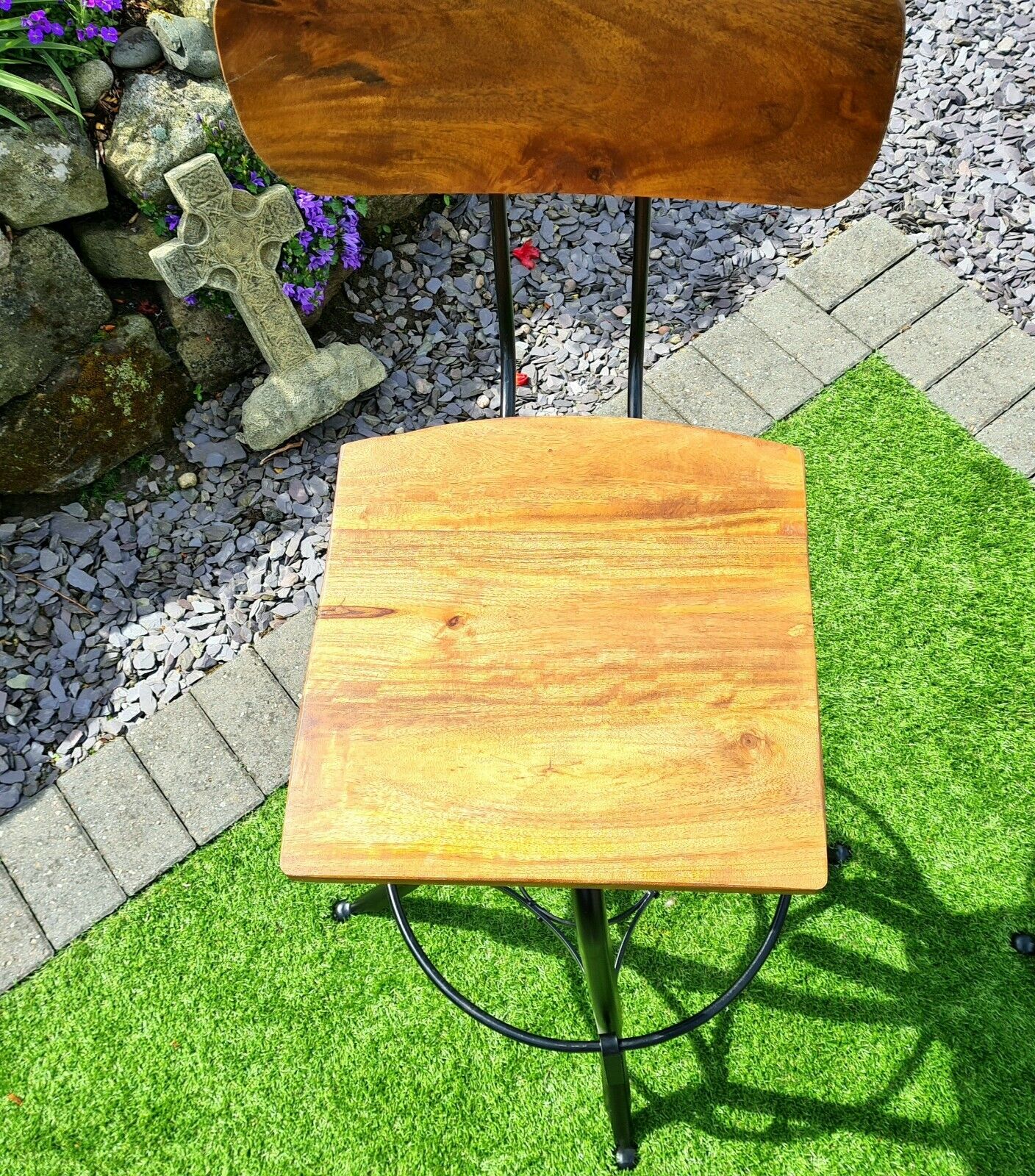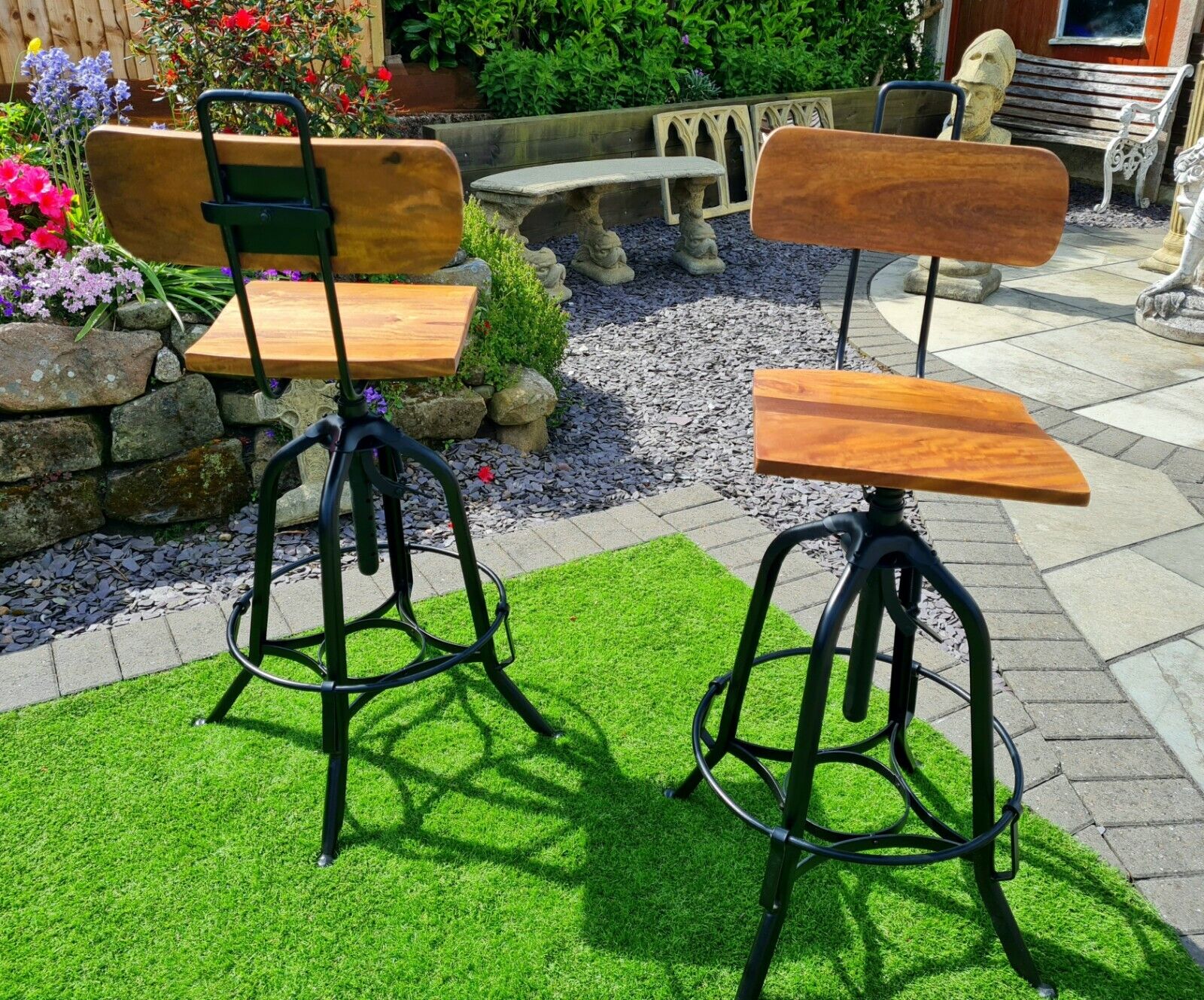VINTAGE MANGO WOOD INDUSTRIAL BAR STOOL.