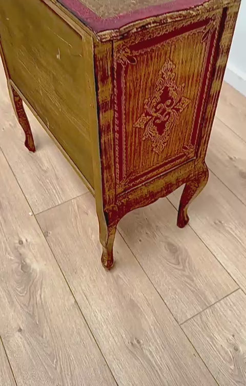 EARLY 20TH CENTURY ITALIAN FLORENTINE CABINET. THREE SOLID DRAWERS TO LEFT WITH A CUPBOARD ON RIGHT. This timeless piece is crafted from high-grade materials and built for lasting durability. Enjoy the convenience of three drawers and a cupboard, perfect for home storage needs.