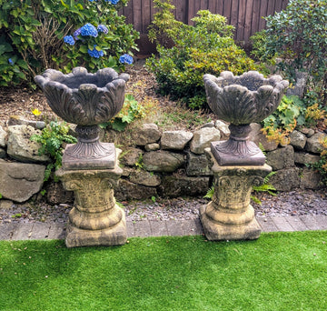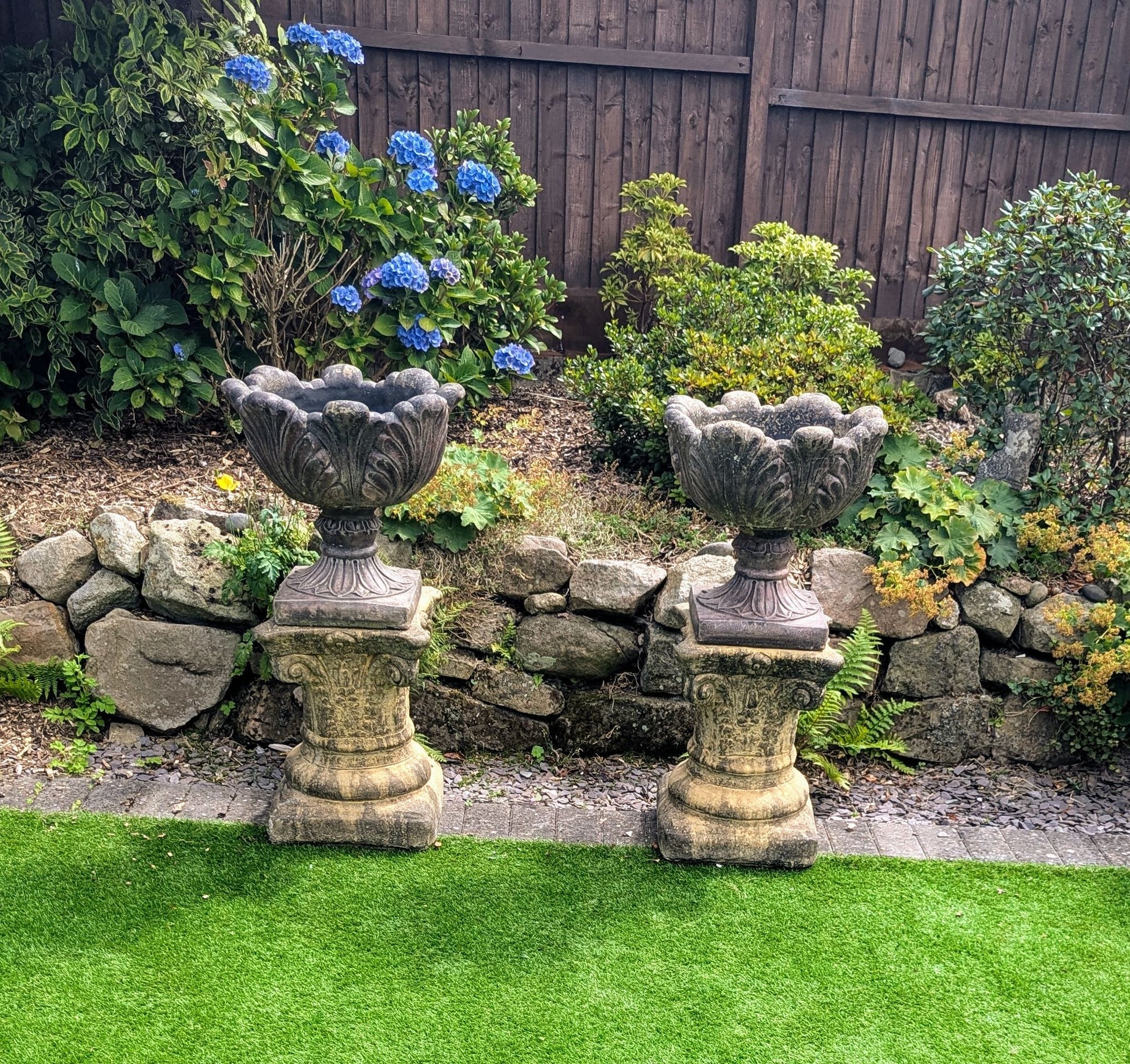 Vintage reconstituted Stone Acanthus Tulip Urns - Delivery Available